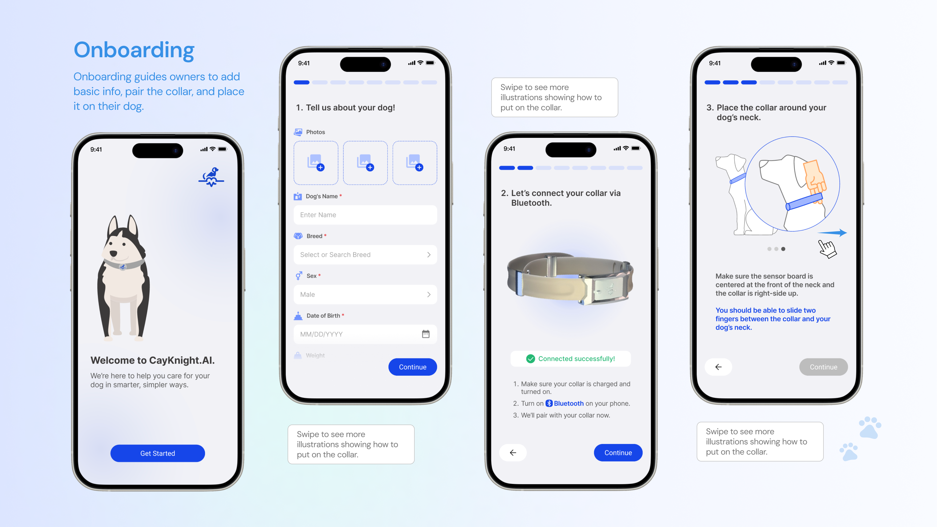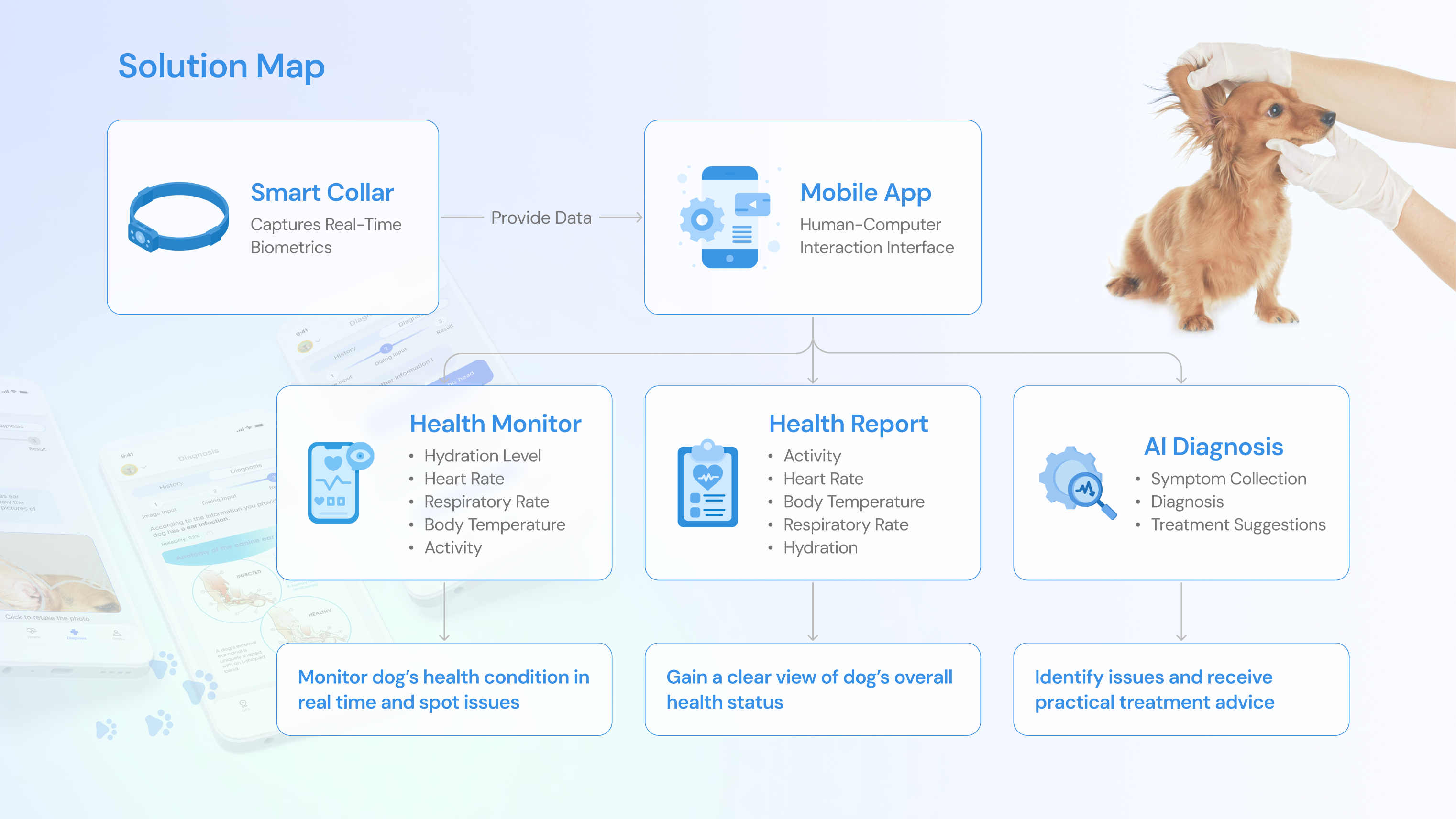Together, the collar and app form an intelligent ecosystem that empowers owners to care for their dogs with confidence—transforming instinct-based observation into proactive, AI-assisted health management.
