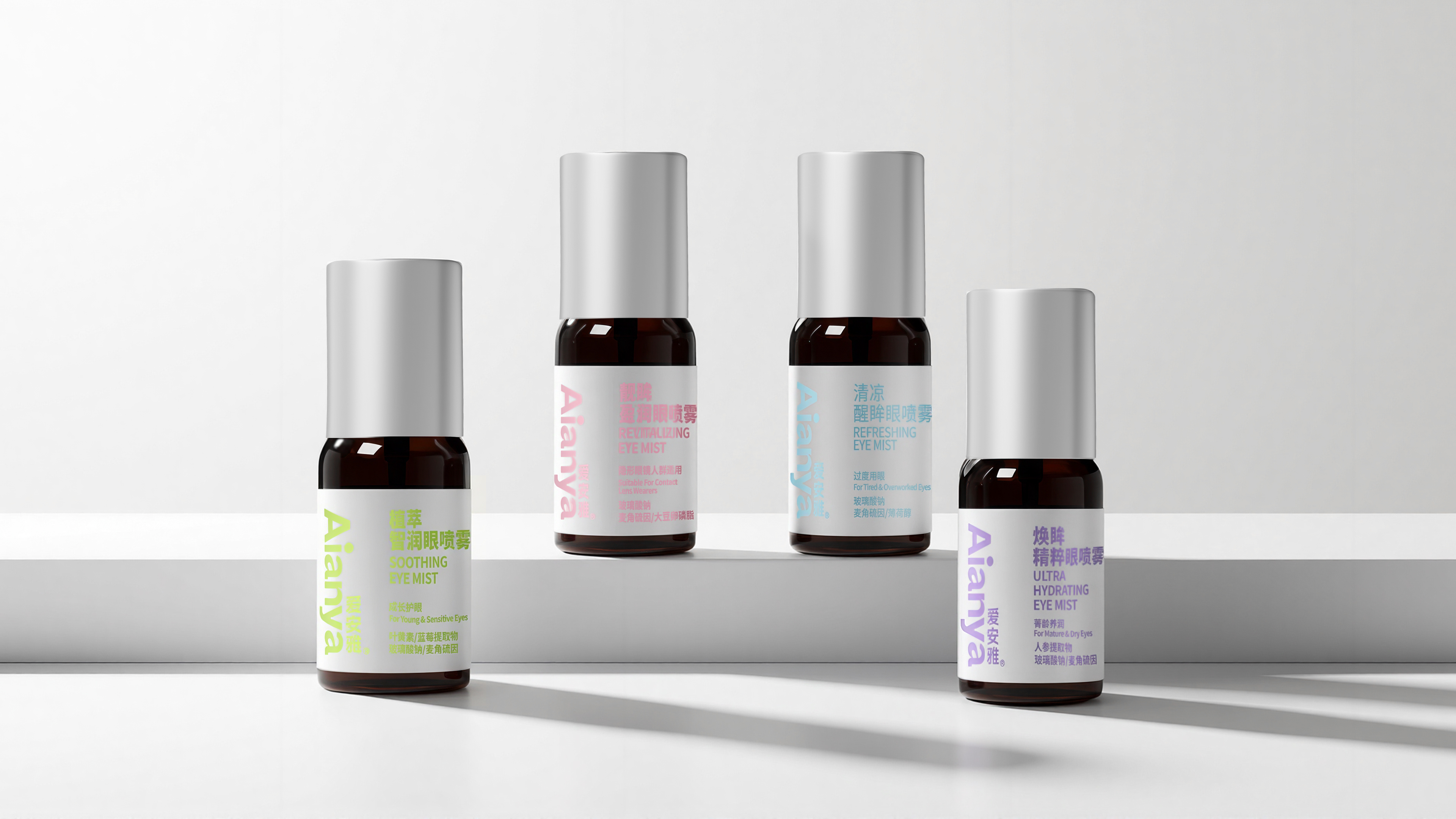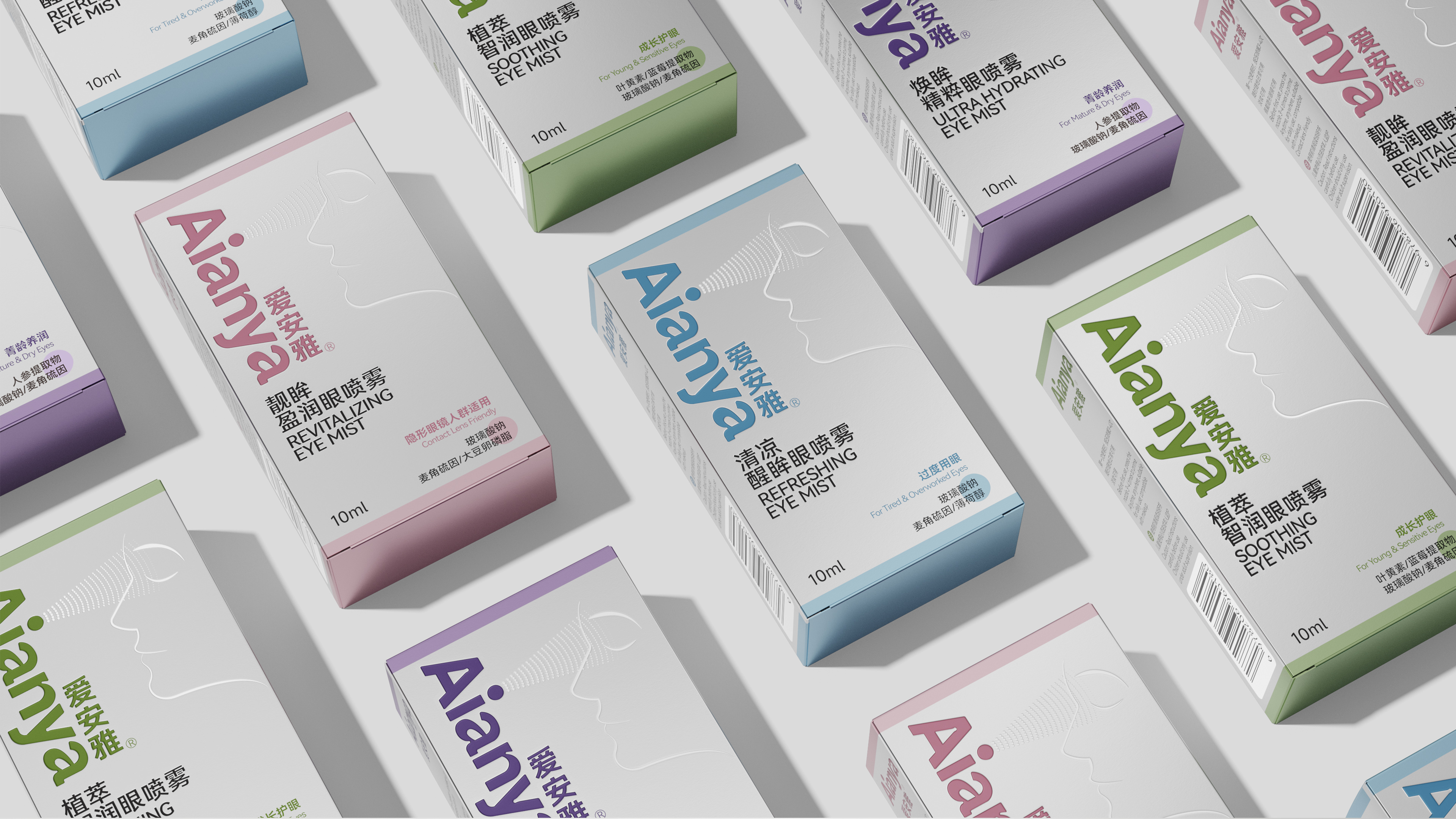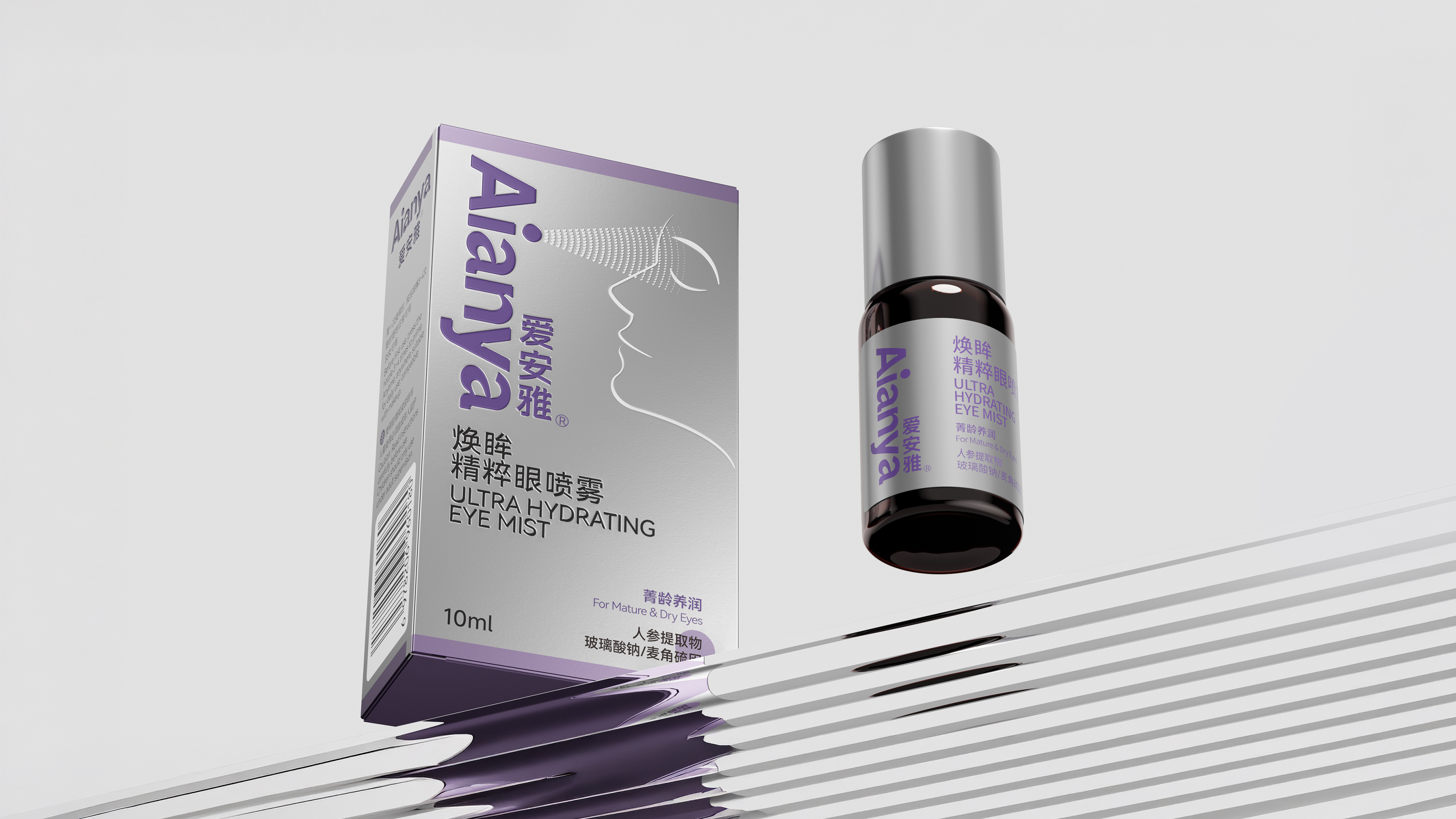 Aianya® redefines the traditional perception of eye care by seamlessly merging pharmaceutical-grade precision with modern minimalist aesthetics. Utilizing a premium 325g silver cardstock base with matte lamination and localized UV embossing, the design is inspired by the abstract rhythm of atomized airflow. It integrates eye contours into the layout through sophisticated white ink layering to create tactile depth. Breaking industry conventions, the front panel replaces traditional eye-drop icons with a pioneering "micro-nozzle pictogram," using semiotic guidance to intuitively signal the "no-contact atomization" attribute. Coupled with a color-coded functional system based on Pantone standards, the design empowers users to select their needs with zero cognitive cost, transitioning eye care from a "medical intervention" into a premium wellness ritual. The product introduces an industry-first "unfolding full-information box," fundamentally breaking the limitation of packaging as a mere container by integrating instructions directly into the unboxing experience. In manufacturing, digital die-cutting technology restricts structural tolerances within 0.1mm, delivering a crisp tactile damping response. Tailored for atomized interaction, the 10ml container's proportions ensure peak ergonomic stability for single-handed use. The innovative concave, anti-slip actuator is precision-contoured to fit the finger pulp, facilitating fluid operation, while an integrated "5cm Spray Guide Line" provides an intuitive physical coordinate. Internally, micro-nano atomized particles reduce diameter by 30% for a delicate ocular application. This mitigates the profound social pain point of cross-contamination inherent in traditional drops. A holistic safety architecture features rounded die-cut corners and a child-proof safety lock. Moving away from generic PET plastics, the container utilizes high-stability frosted glass paired with an anodized aluminum nozzle to eliminate chemical migration. The design embodies a deep commitment to the circular economy: the borosilicate glass bottle is designed for refilling, significantly reducing plastic waste when paired with recyclable silver card and bio-based films that decompose within six months. By implementing water-based eco-inks to reduce VOC emissions by 80%, and fostering an "Empty Bottle Recycling Program," the product achieves holistic closed-loop management.