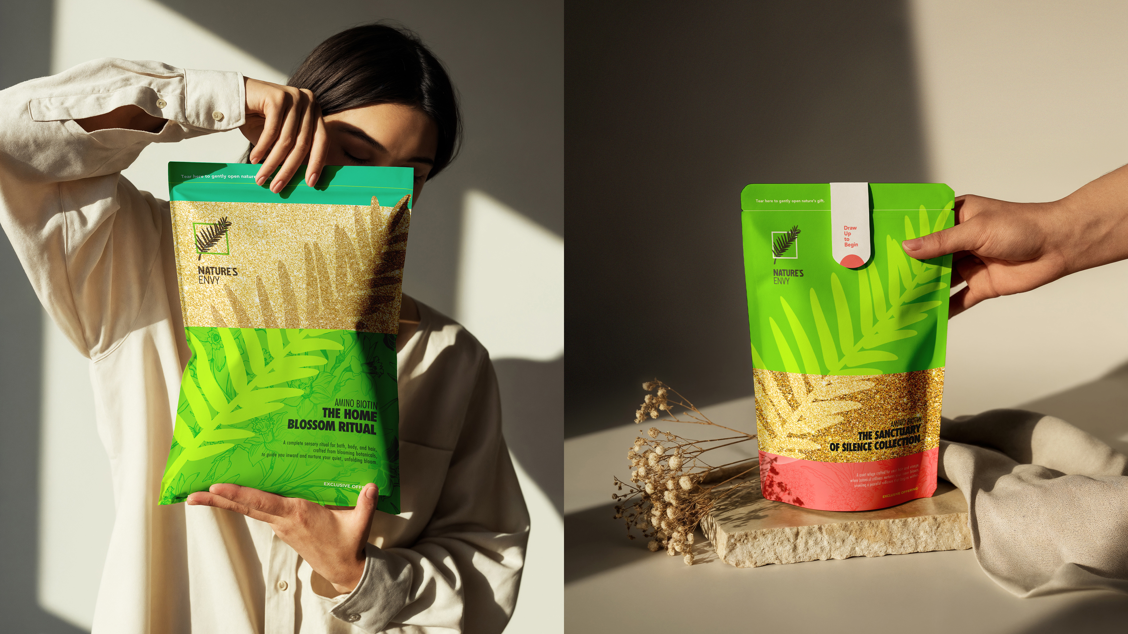 Since its inception, Nature’s Envy has remained dedicated to specialization in botanical efficacy, championing the dual philosophies of "Plant Power" and "Environmental Sustainability." However, as the product line expanded from hair care to full face and body care, the visual identity faced the challenge of fragmentation, gradually diluting these core values. For this rebranding project, the design team conducted in-depth research into the extracts of flowers, grasses, stems, and fruits from over forty plant species used in the formulations. Integrating these diverse elements, the project aims to construct a visual system that is both logically coherent and deeply emotionally resonant.