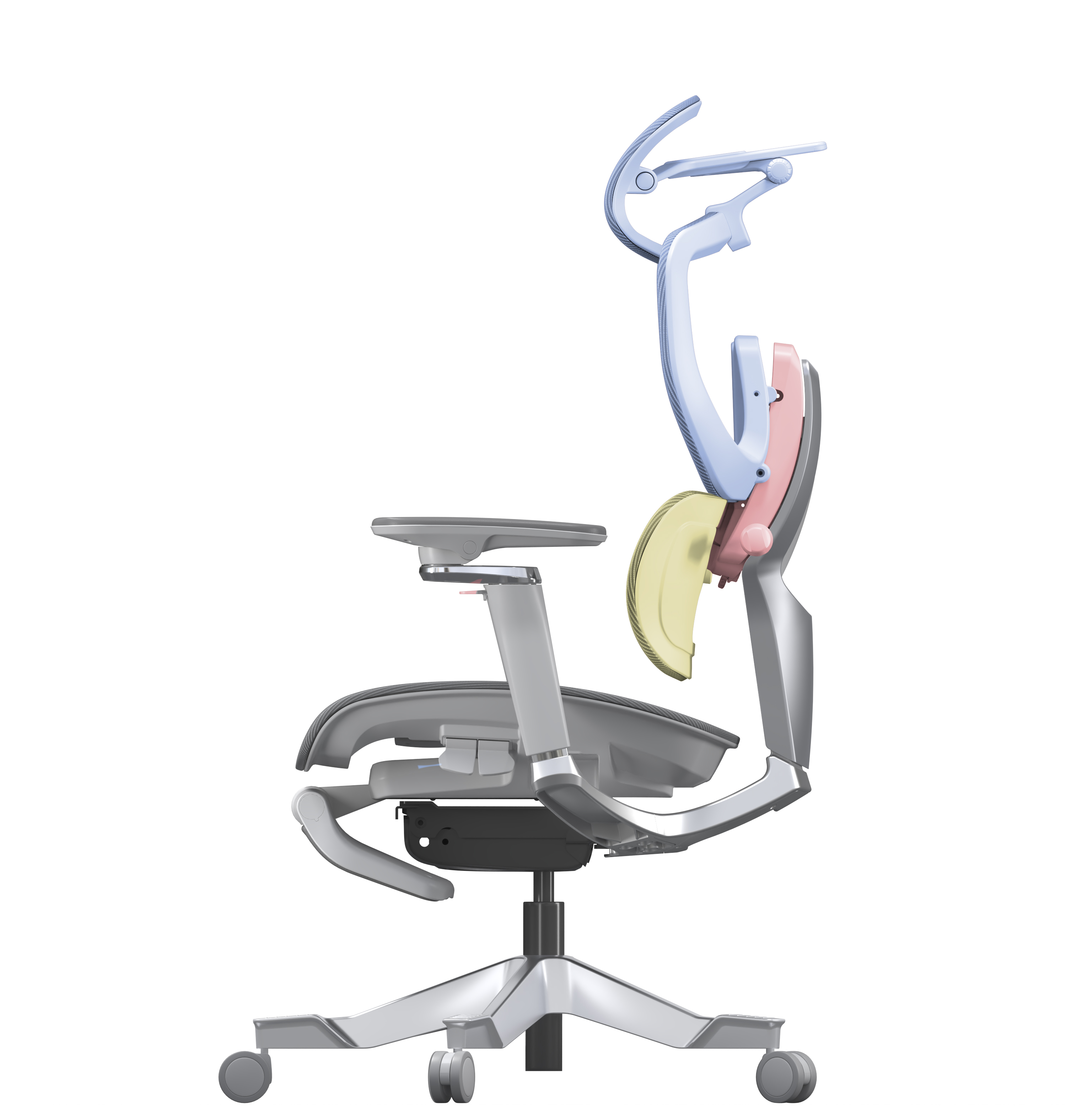 Meticulous details run throughout. The triple-zone AeroTriFit Lumbar Support provides precise millimeter-level support for the lower back without spinal pressure. The dual-axis multi-directional armrest enables upward-tilt adjustment, seamlessly adapting to mobile work scenarios. Furthermore, committed to sustainable design, the T1 Captain utilizes recycled nylon, aluminium alloy, and fabric made from ocean-recycled plastics, embodying its commitment to environmental protection.