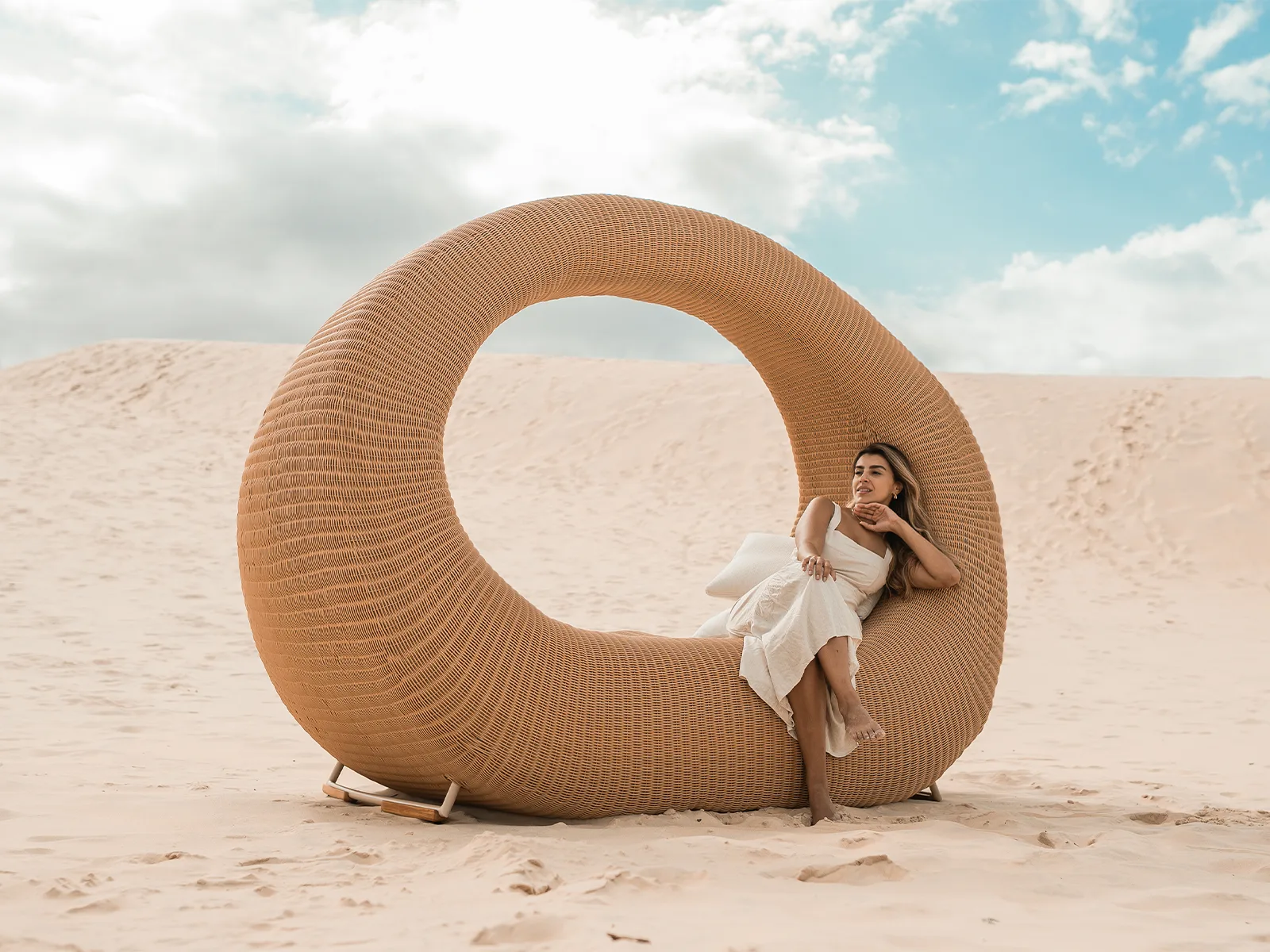 In the middle of the arid expanse, where the sand shapes the horizon and the wind draws invisible stories, an oasis emerges. A pause. A breath of fresh air. An invitation to contemplation. It's not just a piece of furniture, but a refuge sculpted by nature, a tangible translation of the serenity and shelter that the desert landscape offers. Inspired by the silent beauty and strength of the elements, its organic form envelops and welcomes like an embrace sculpted by time. Its fluid curves evoke the discovery of the dunes, while its robust structure carries the resilience of the desert itself. It's an encounter between design and nature, between art and essence. A piece that is not merely decorative, but moving. That not only occupies a space, but creates a moment. An invitation to slow down, breathe, and get lost or find yourself in the oasis that lies within each of us.