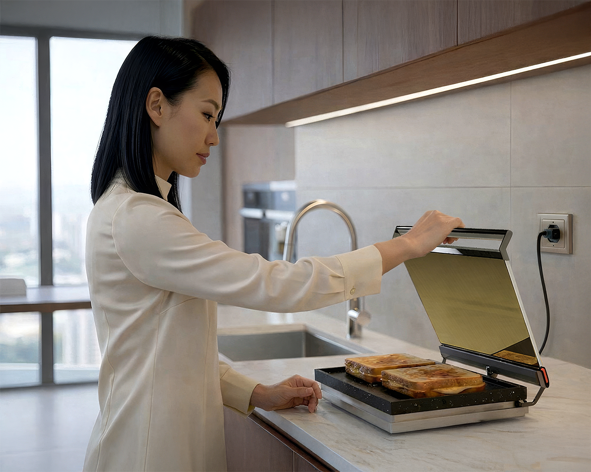 The concept is based on the observation that many domestic appliances are designed for single-purpose use. Sandwich toasters, in particular, operate for short cooking periods and remain unused for most of the day. MULTIHEAT enhances the functionality of this common appliance by introducing a secondary mode that enables continuous, low-temperature food processing.