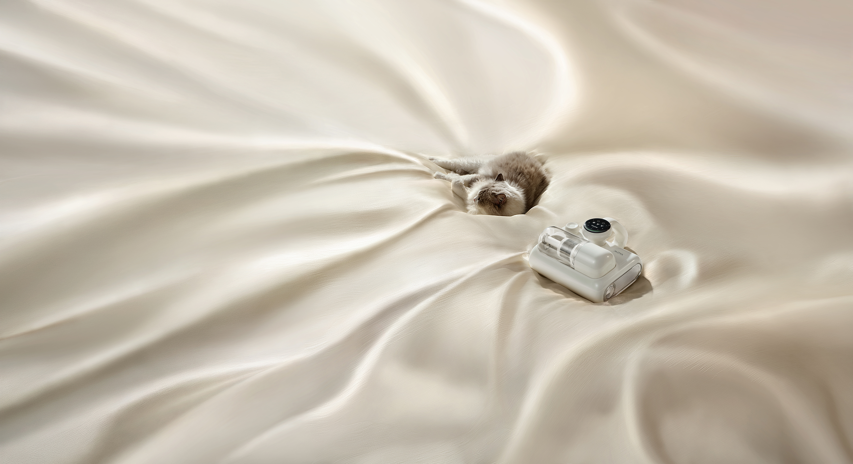 MOVA Q30 is a dust mite remover designed around the concept of a "Life Artist", elevating mite removal from a tedious chore to a serene, elegant, and daily ritual for healthy living. Moving beyond the traditional notion that mite removal is merely cleaning, the Q30 integrates innovative technology with biomimetic design to establish a complete health cycle—from removal and inhibition to purification—fostering a harmonious coexistence between people, pets, living spaces, and well-being.