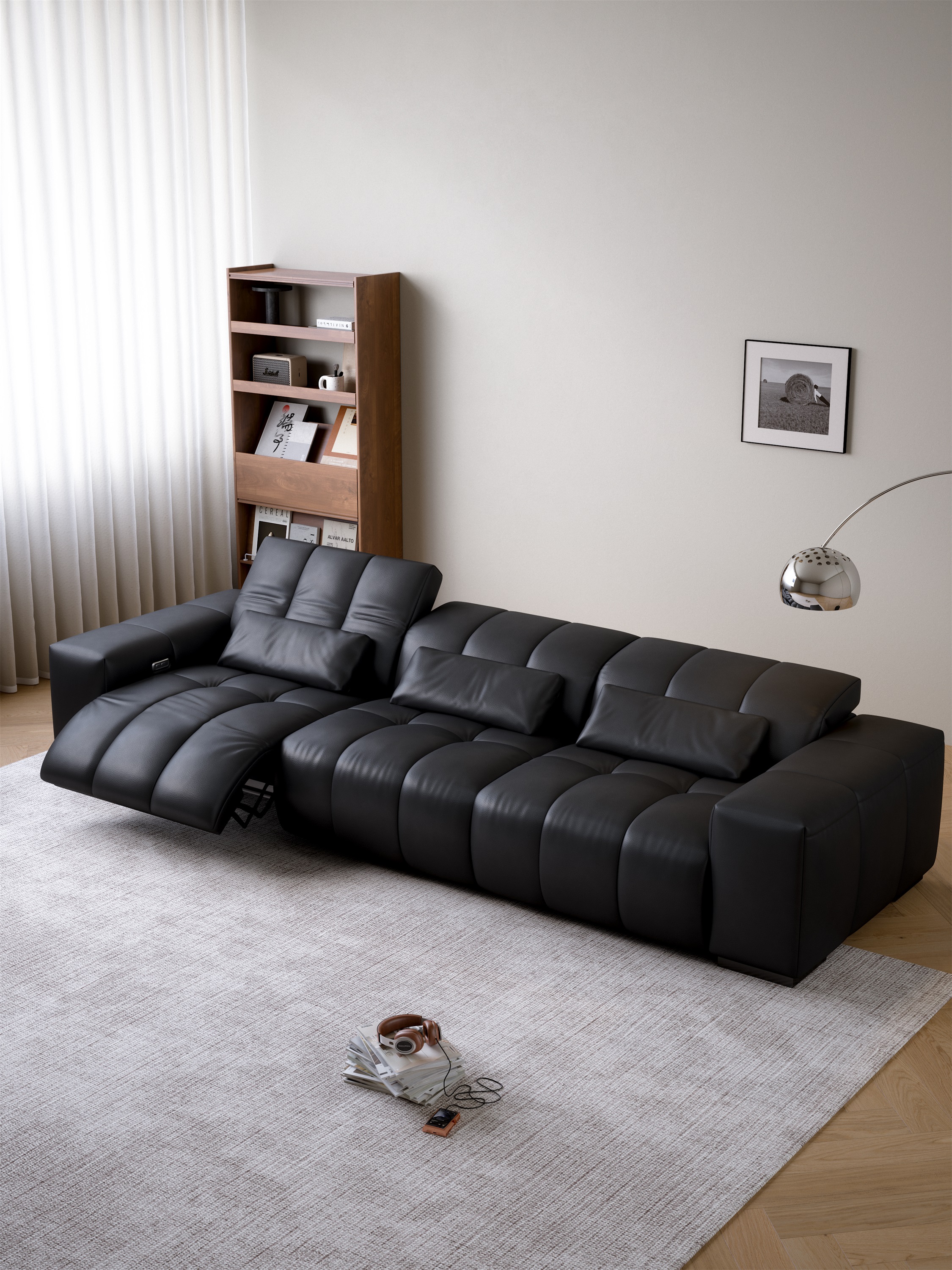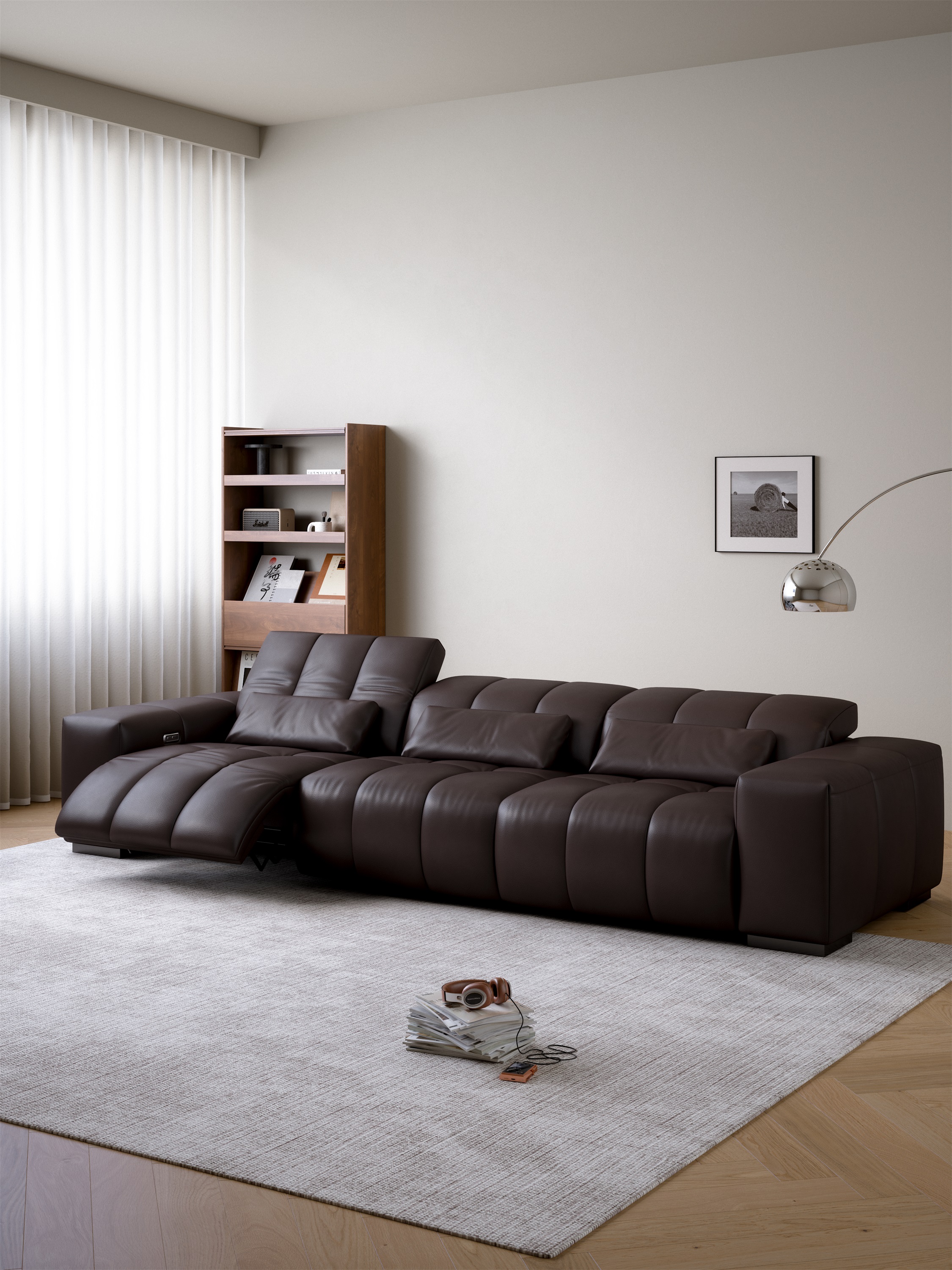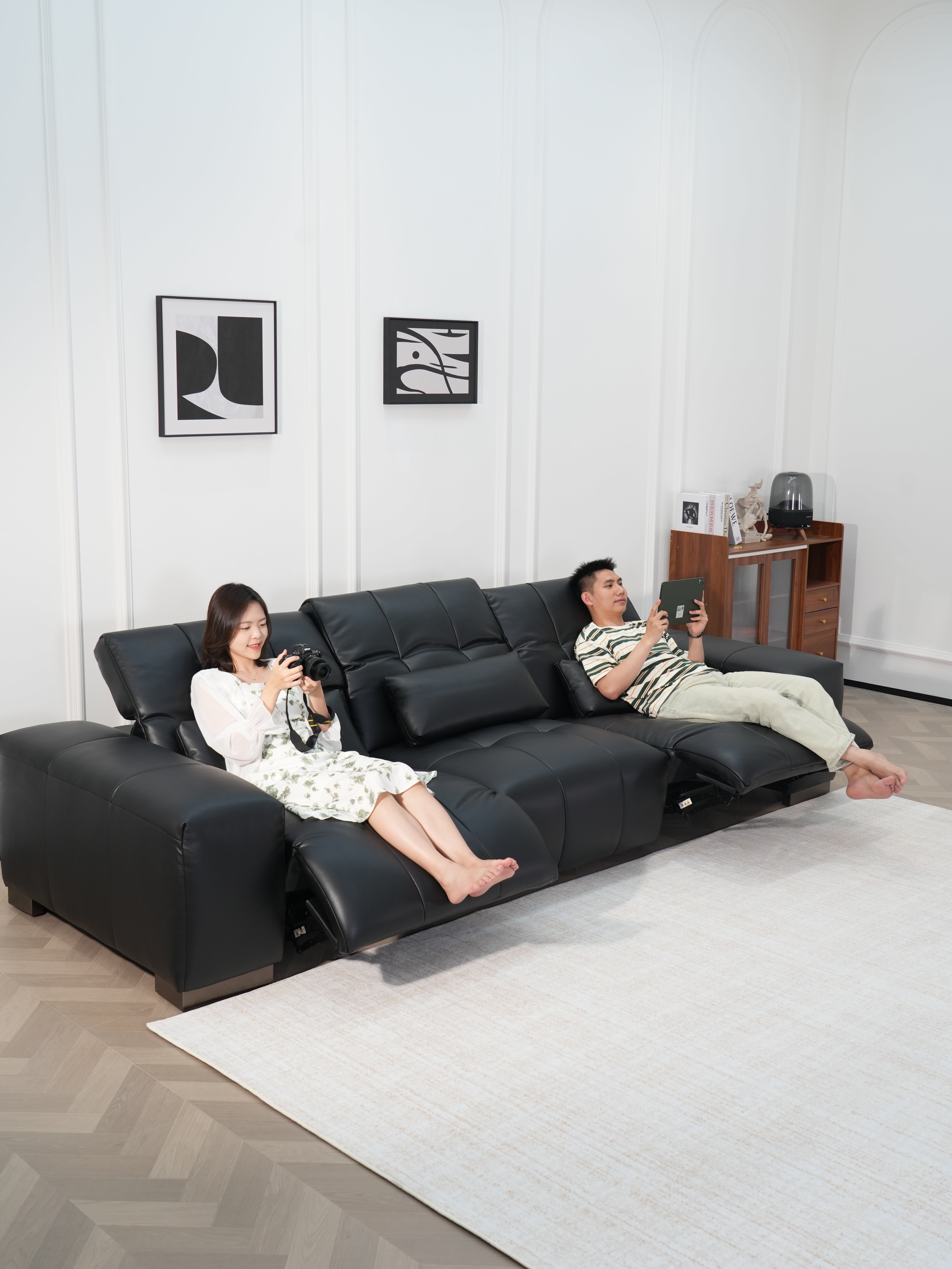 This led to the implementation of an asymmetric motorization strategy: only the two ends feature adjustment capabilities, while the central section remains a static natural zone, creating what functions as a "buffer area." This configuration allows users on either side personalized adjustment space, while the fixed central section provides a stable psychological anchor point. Even when sitting close together, users experience no sense of intrusion, making this design particularly suitable for scenarios where one person reads while another watches content, or for quiet late-night conversations.