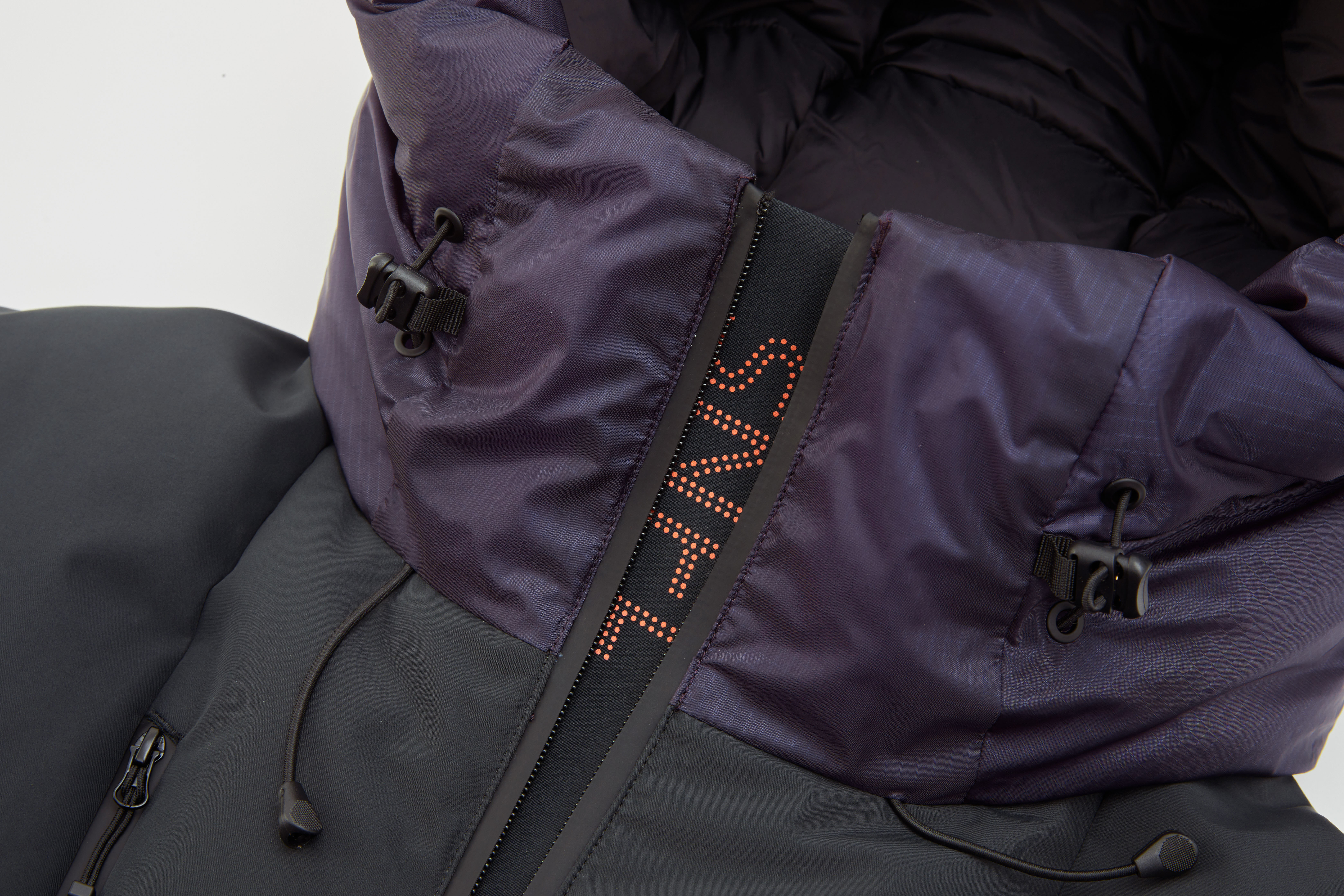 The Float Arctic-Goose Down Shell draws inspiration from the natural hues of glaciers, snow-capped mountains, and cloud seas. It features four distinct colorways, Twilight Purple Glow, Snow-Cobalt Blue, Cloud-Peak Black-Gray, and Blazing Rock Orange, each evoking polar landscapes like dawn and dusk snow mountains, volcanic crater lakes, and cloud-shrouded peaks. Breaking away from the traditional monochromatic look of down jackets, it showcases a unique metallic sheen.