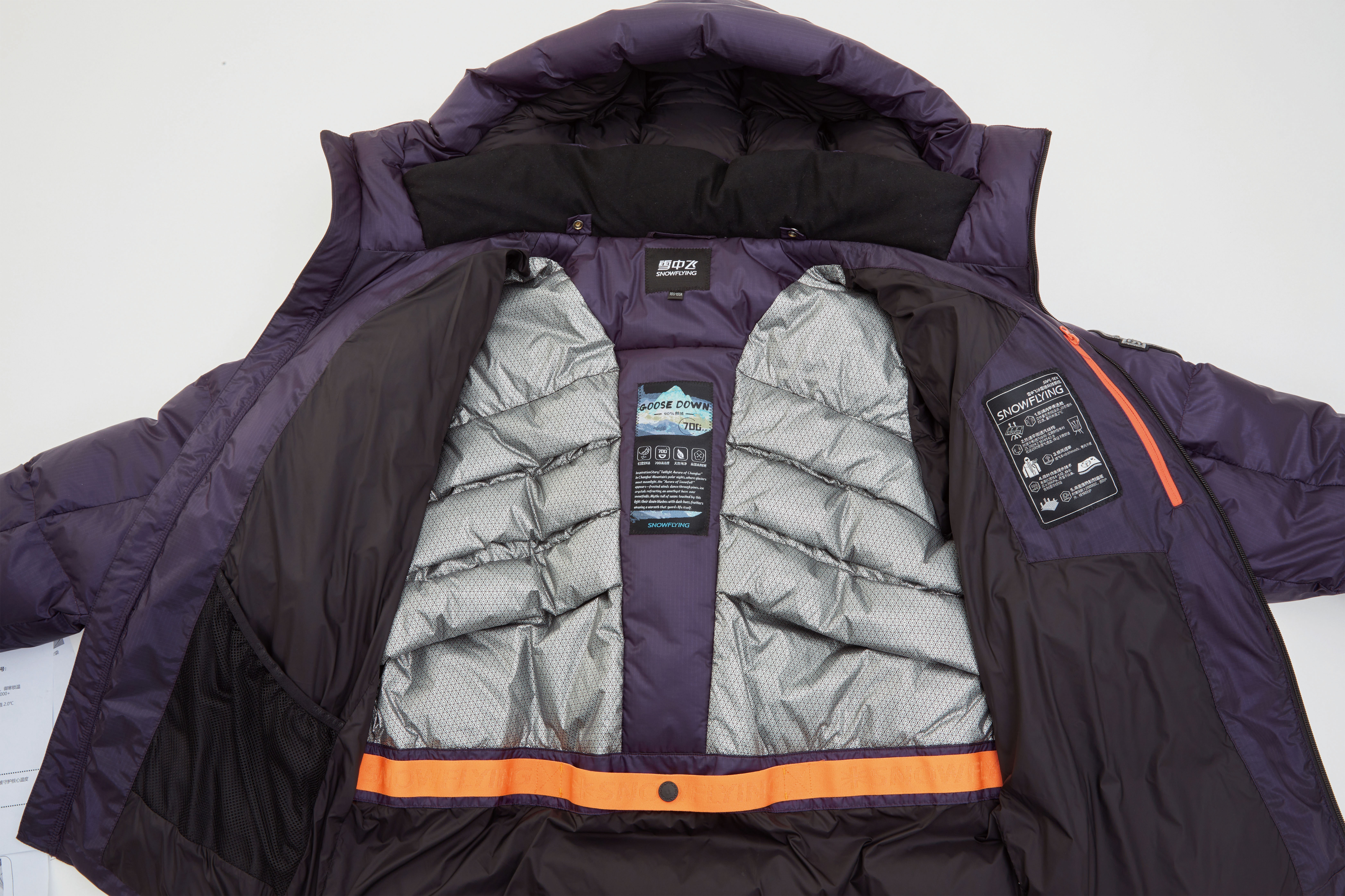 The down jacket is filled with 90% goose down, offering a loft of 700+ and a cleanliness rating of 700+, making it lightweight and fluffy yet able to withstand temperatures as low as -30°C. Combined with a silver-ion snowflake thermal lining featuring a far-infrared emissivity of 0.92, it delivers a temperature rise of 2.0°C, balancing lightweight wear with outstanding warmth and comfort. It performs reliably in both urban outdoor settings and extreme cold environments.