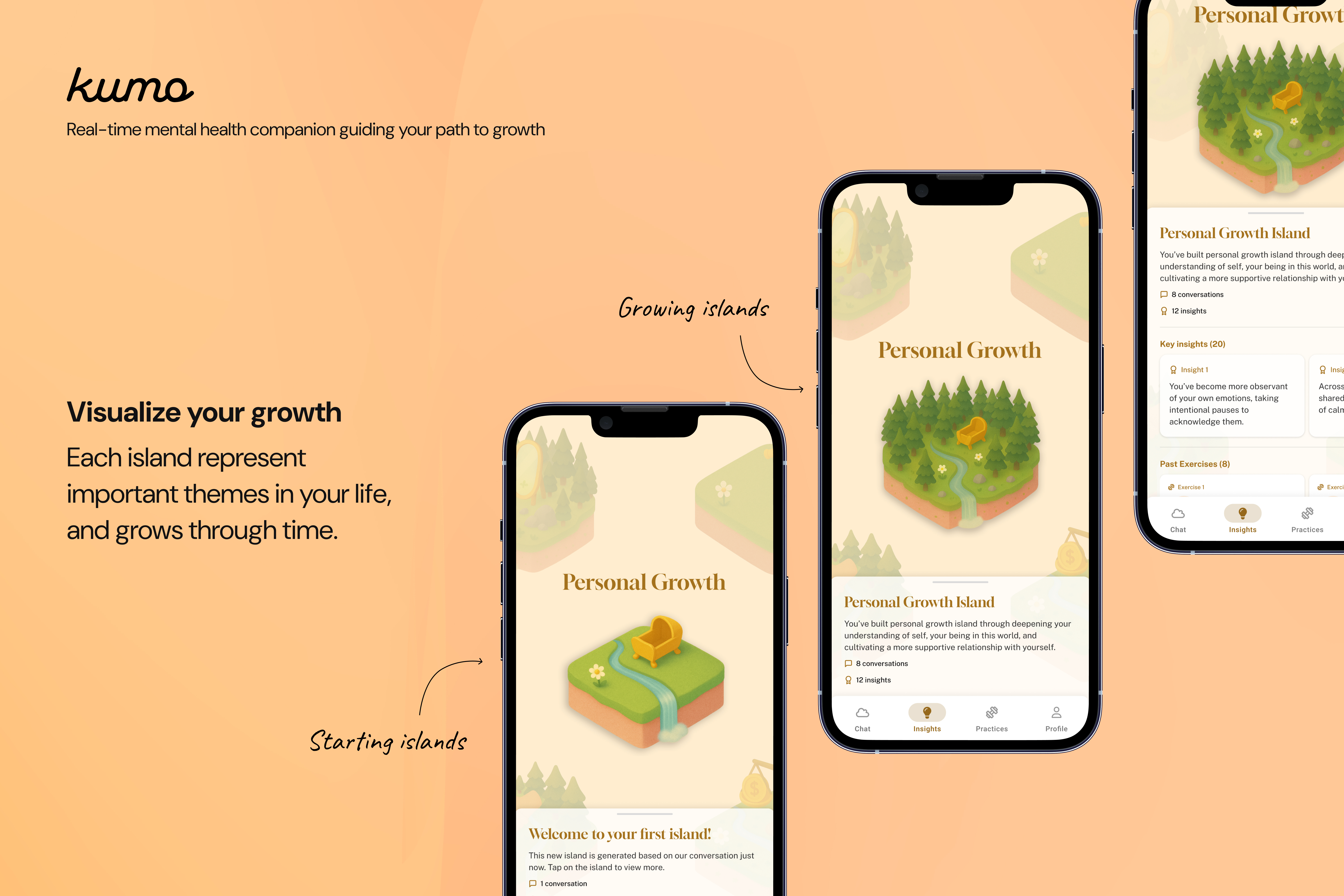 Kumo listens without judgment, helps you make sense of everyday moments, and provides actionable insights and mind-body exercises for users to build their mental health toolkit.