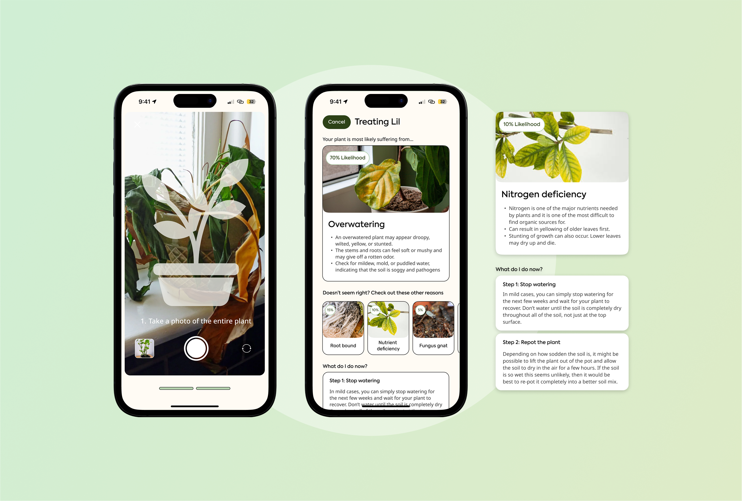 Whether you are a seasoned plant parent or just starting your green journey, sometimes it is hard to keep a plant alive and thriving. Bud diagnoses common plant issues and generates a treatment plan that will be integrated with the plant’s existing care schedule. Treating a plant can be a daunting task. By breaking it down into smaller steps and incorporating it with the regular to-dos, bud empowers plant parents with professional knowledge and confidence on their plant-care journey.