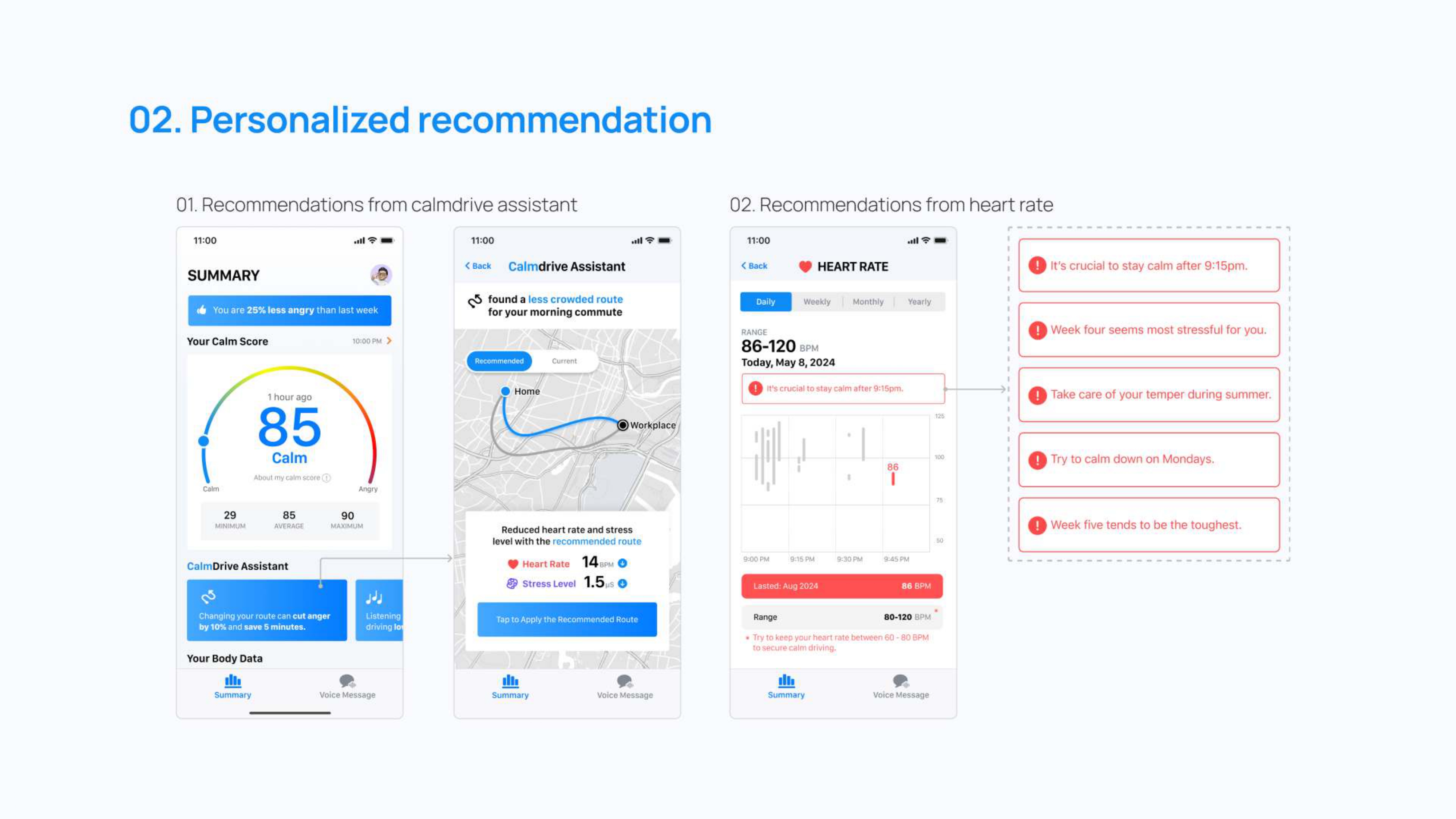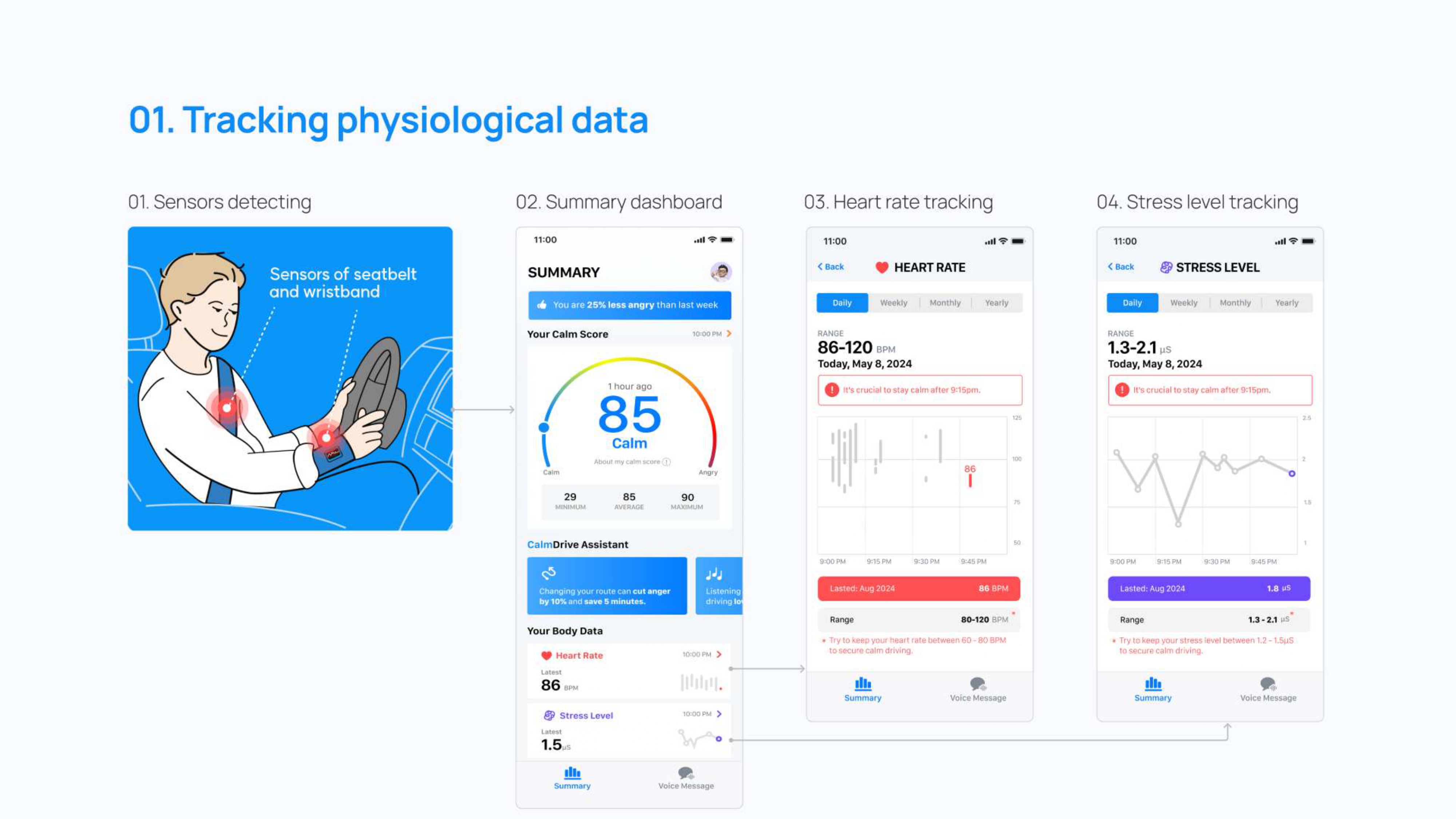 Through the companion app, drivers can track their physiological data, receive personalized AI tips, and customize voice messages. Tested with U.S. drivers, Calmdrive proved to reduce heart rate by an average of 25% and stress levels by 27%.