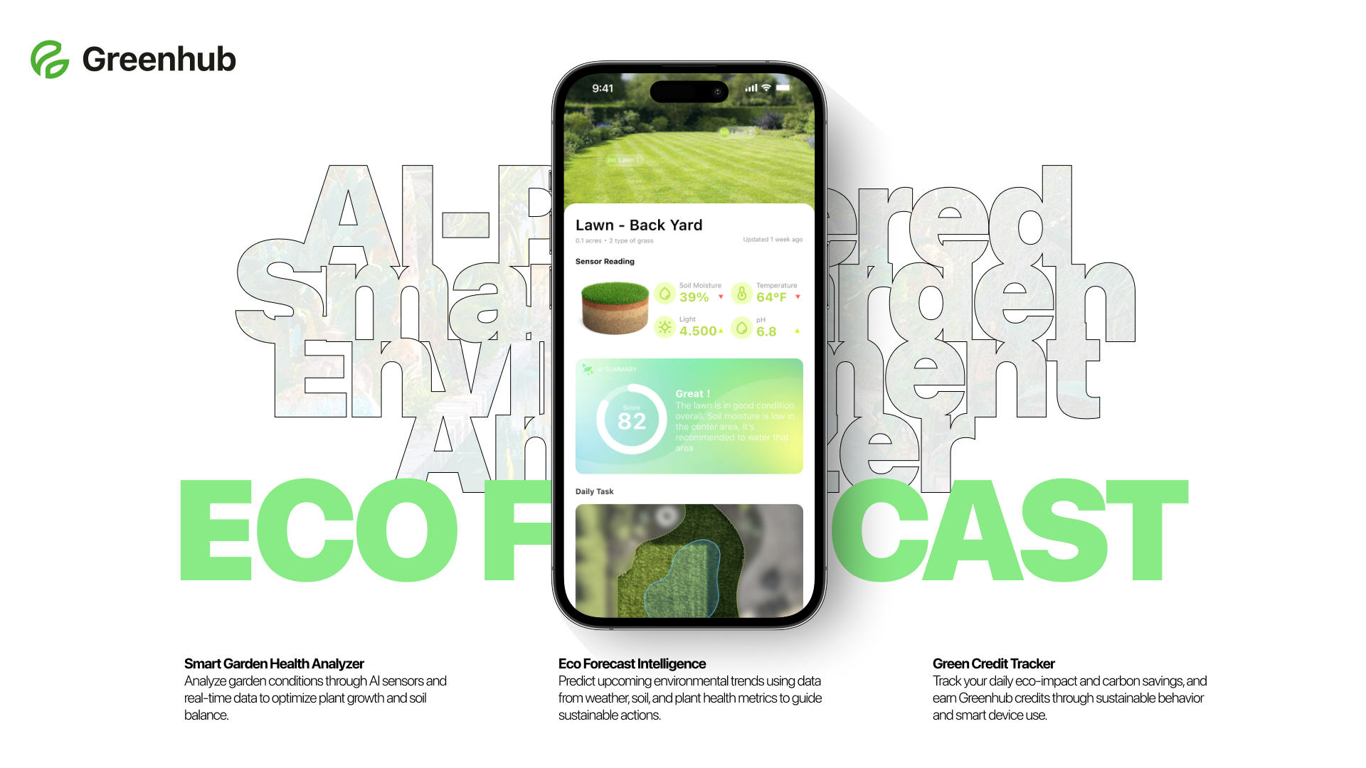 GreenHub is an AI-powered garden management app that helps users build and maintain thriving outdoor spaces effortlessly. From the very beginning, it analyzes local climate, soil conditions, and user preferences to offer personalized planting suggestions tailored to each garden. As the garden grows, GreenHub continues to guide users through everyday maintenance with smart sensors and adaptive AI insights—making sustainable gardening intuitive, mindful, and enjoyable for everyone.