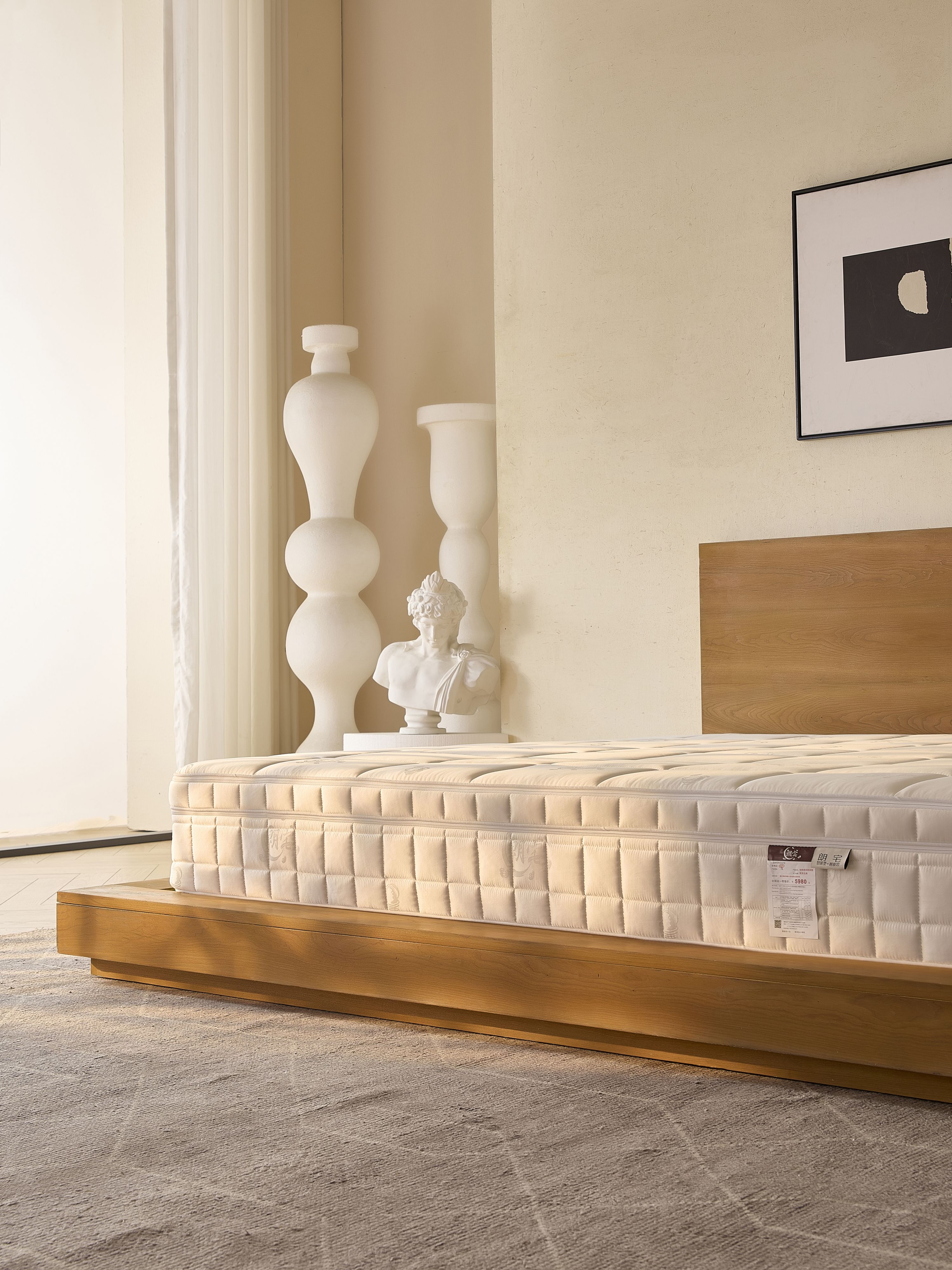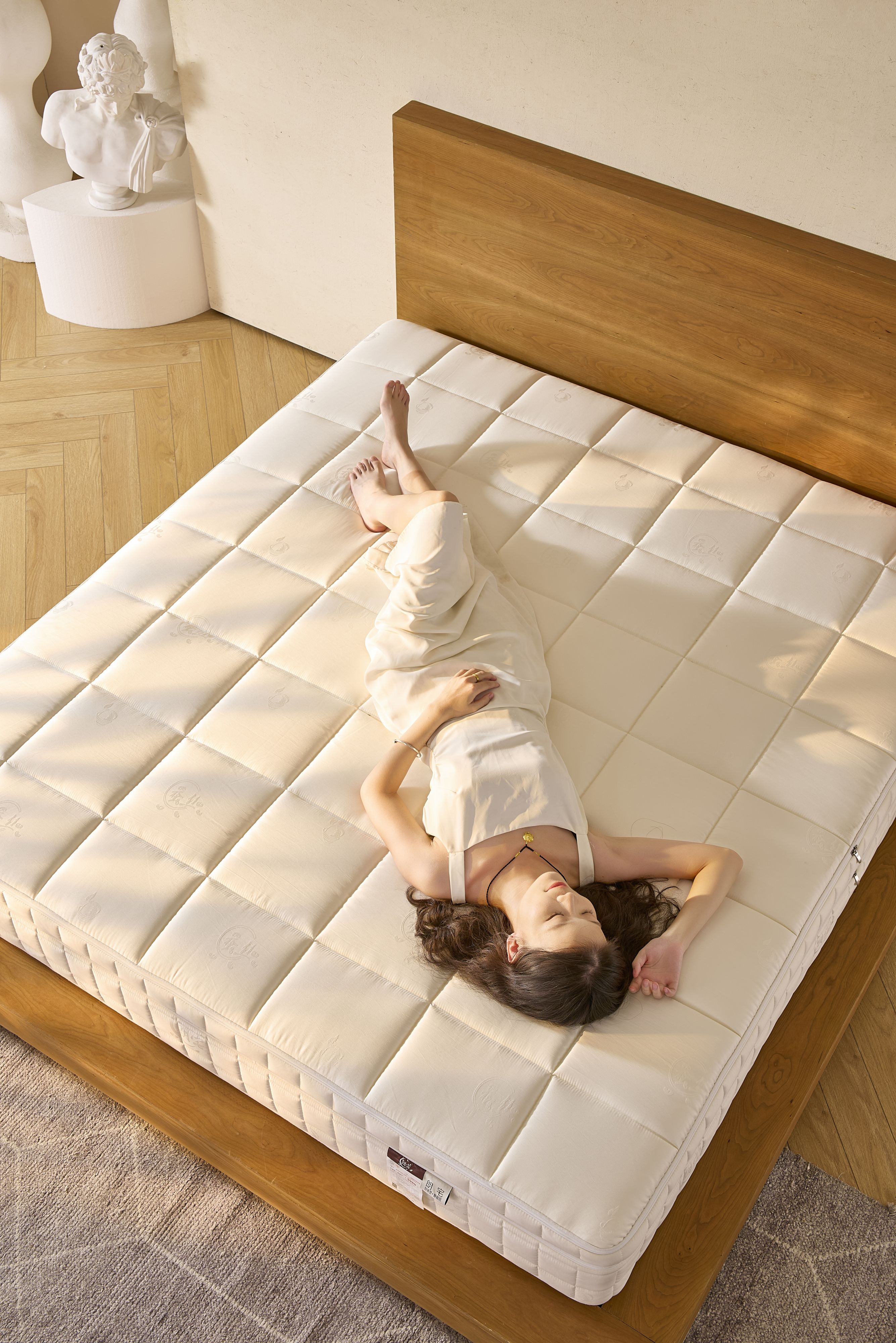 The mattress employs an advanced layered system to create comprehensive sleep support: a cotton-linen-silk cover offers a smooth feel and integrates high-efficiency antibacterial and anti-mite agents, achieving >99% repellent rate and inhibition rate to safeguard sleep health; high-elastic 4D air fiber with a three-dimensional hollow structure markedly enhances breathability, while 1.4 million precise support points cradle body pressure, high resilience disperses load, and responsive conformity adapts to posture changes for full-body care; a bio-based blue pad contains 25% soybean-oil derivatives, delivering natural eco benefits and 2 cm of dynamic support that resists long-term sagging; jute fiber cotton undergoes high-temperature de-sugaring and sterilization, paired with a glue-free hot-press process for zero formaldehyde and zero adhesives, offering breathability, moisture management, and flexibility; in addition, a 3-zone cooling-fabric pocketed-spring unit, engineered to ergonomic principles, precisely protects spinal alignment, while dual edge-support springs combined with eight heavy-gauge coils provide reinforced perimeter strength, robust support, and excellent motion isolation.