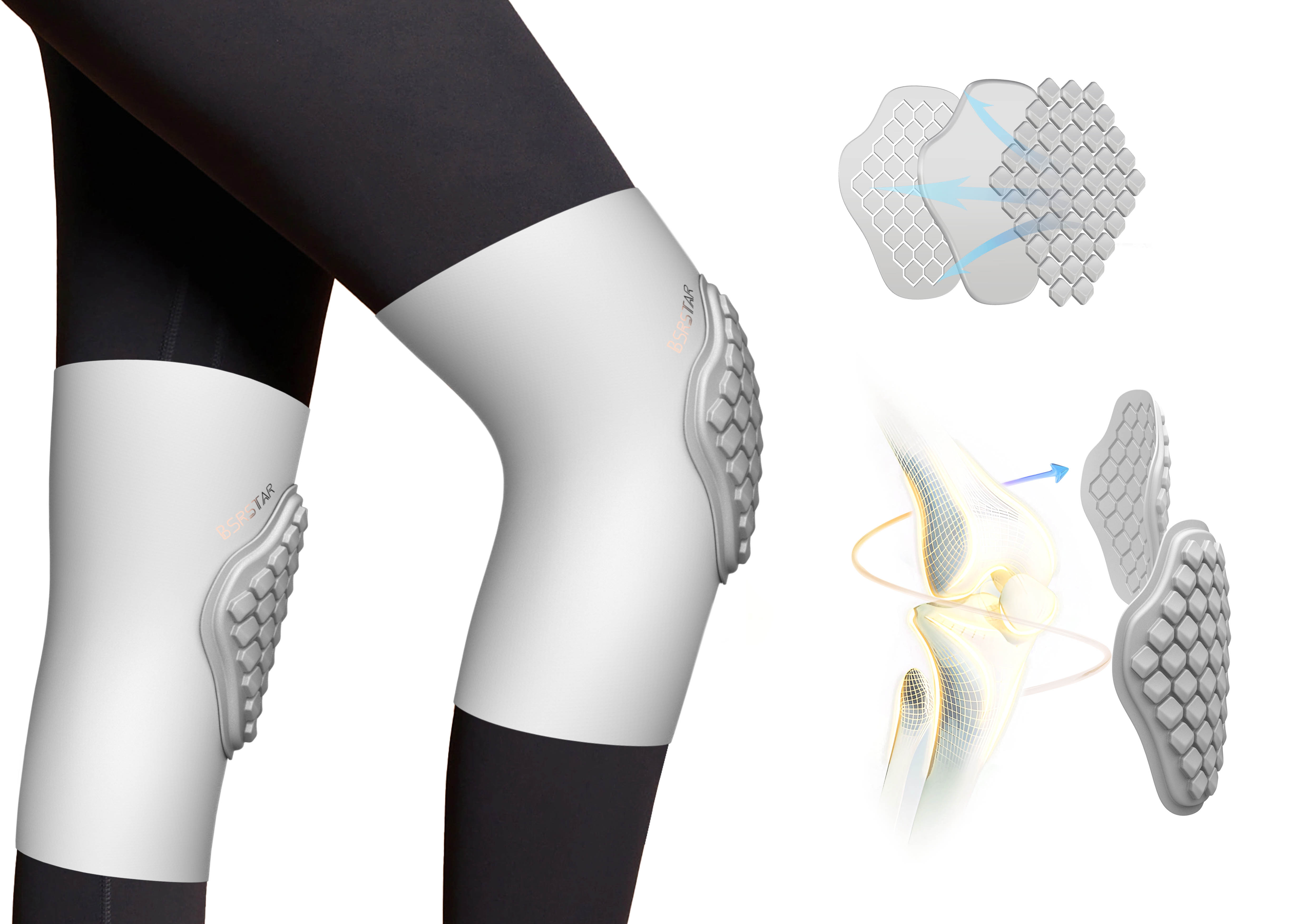 3.When a stronger force occurs, the front grooves allow hexagonal raised nodes to flex, rebound, and disperse impact more effectively, reducing stress on the joint.