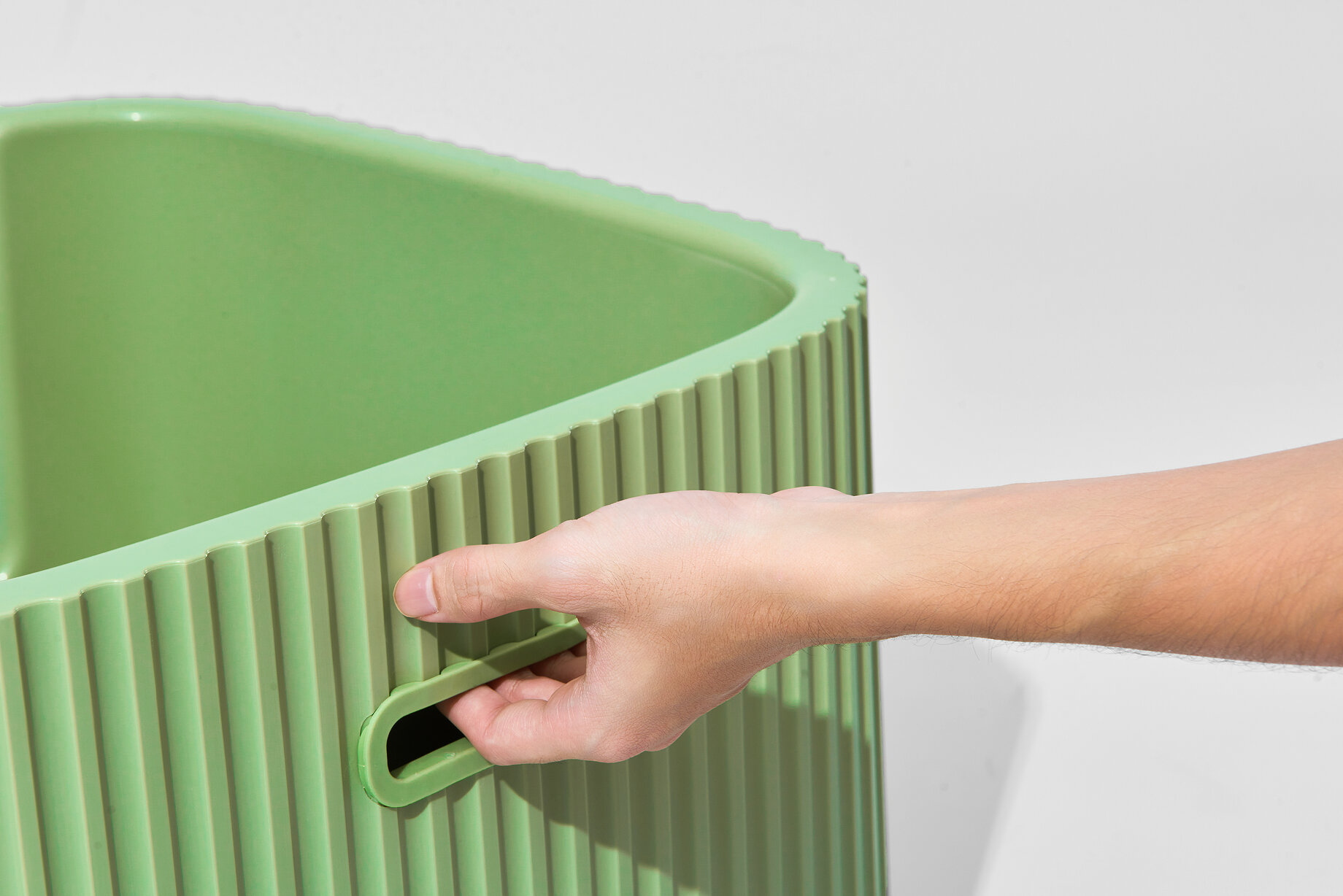 The design adopts a system-based approach, addressing common pain points such as hygiene management, odour containment, and cleaning efficiency. Through refined form, durable materials, and ergonomic detailing, the container supports intuitive daily interaction for both pets and owners. Its understated geometry and neutral palette allow it to integrate seamlessly into modern living spaces rather than being concealed or separated from the home.