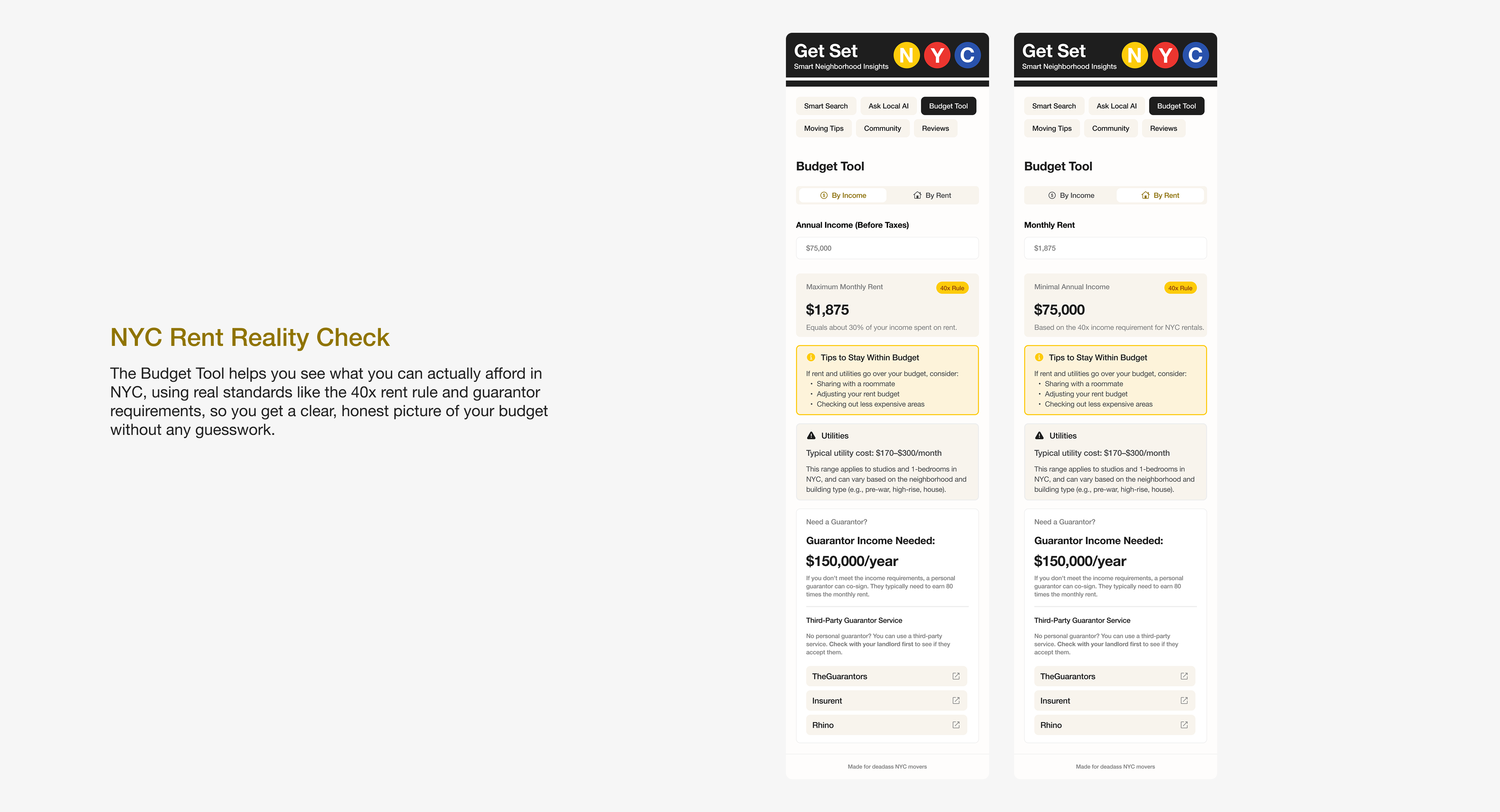 Get Set NYC covers more than 300 New York City neighborhoods and supports thousands of searches each month. At its core, the product helps newcomers feel oriented, informed, and confident, turning a stressful process into one that feels grounded, human, and empowering.