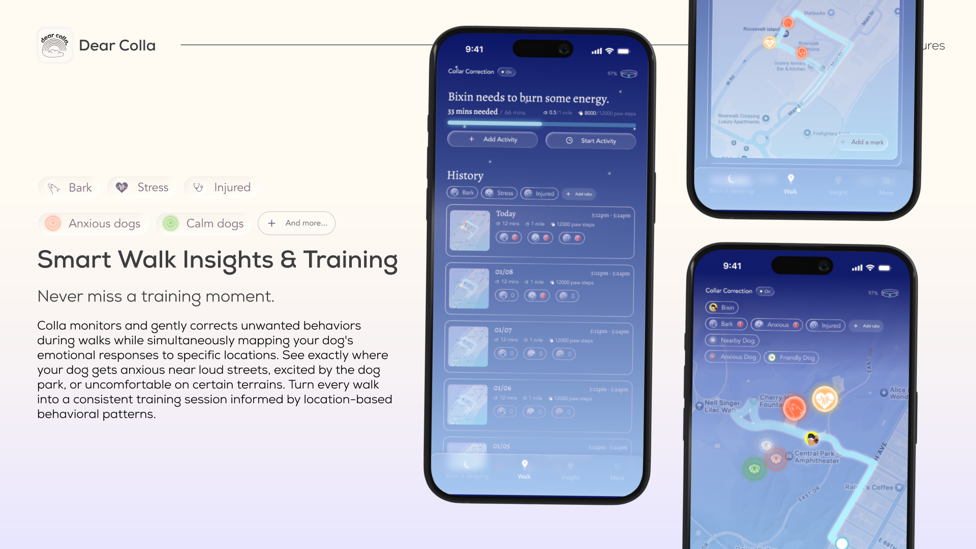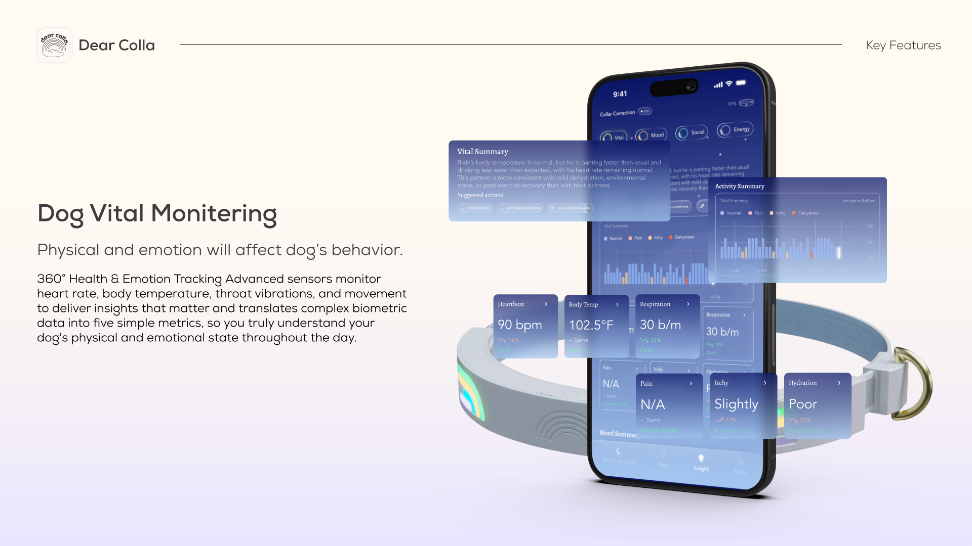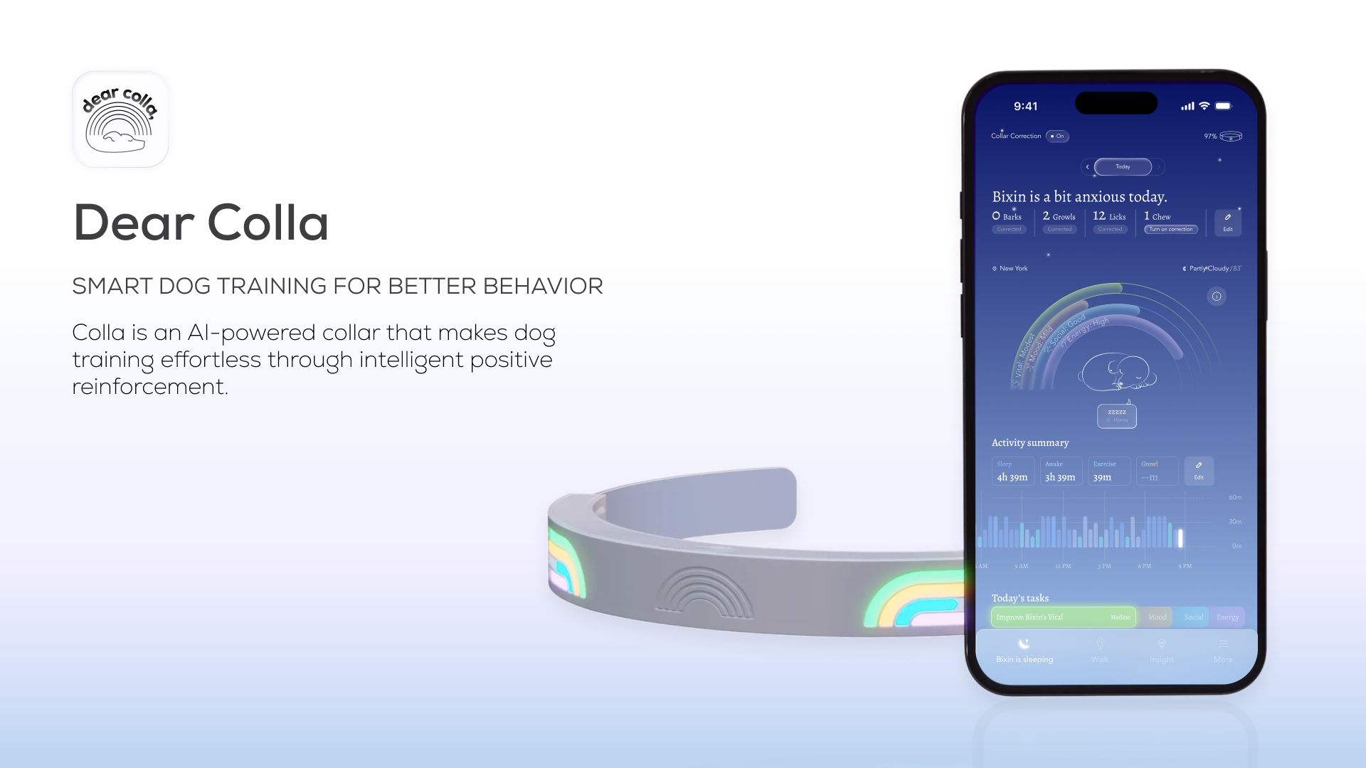 Our product philosophy is simple: animals cannot talk, so the real problem is human misunderstanding. Dear Colla uses data and AI to make dogs legible. When owners understand cause and effect, training shifts from punishment to cooperation. We believe the future of pet technology is not about controlling animals, but helping humans read them. With Dear Colla, unwanted behaviors become teachable moments, relationships improve, and dogs are guided without fear.