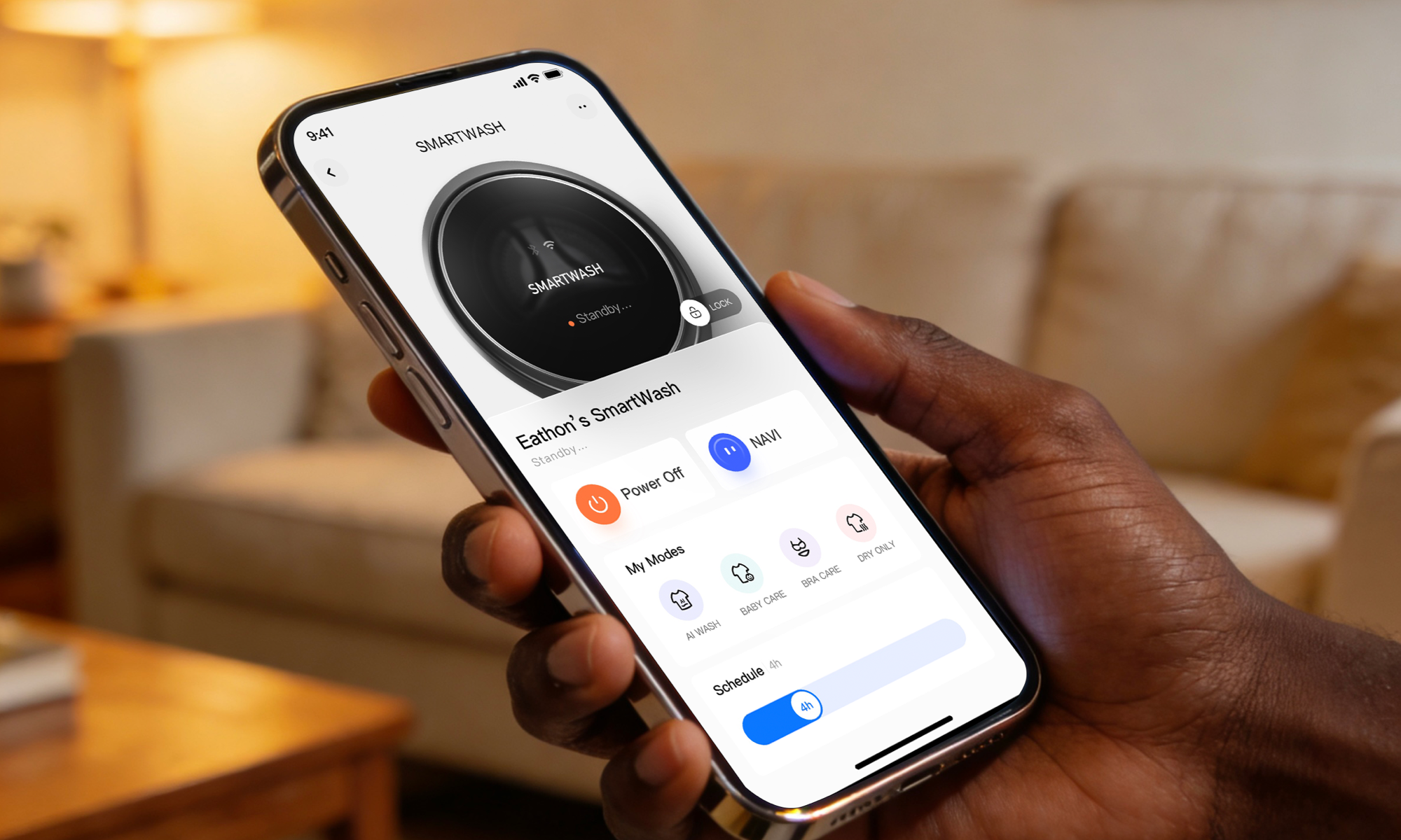 Furthermore, the built-in AI voice assistant allows hands-free control for a natural and convenient interaction experience. SmartWash AI also supports seamless mobile app integration, enabling remote control, status monitoring, and scheduled washing, meeting users’ needs in various scenarios.