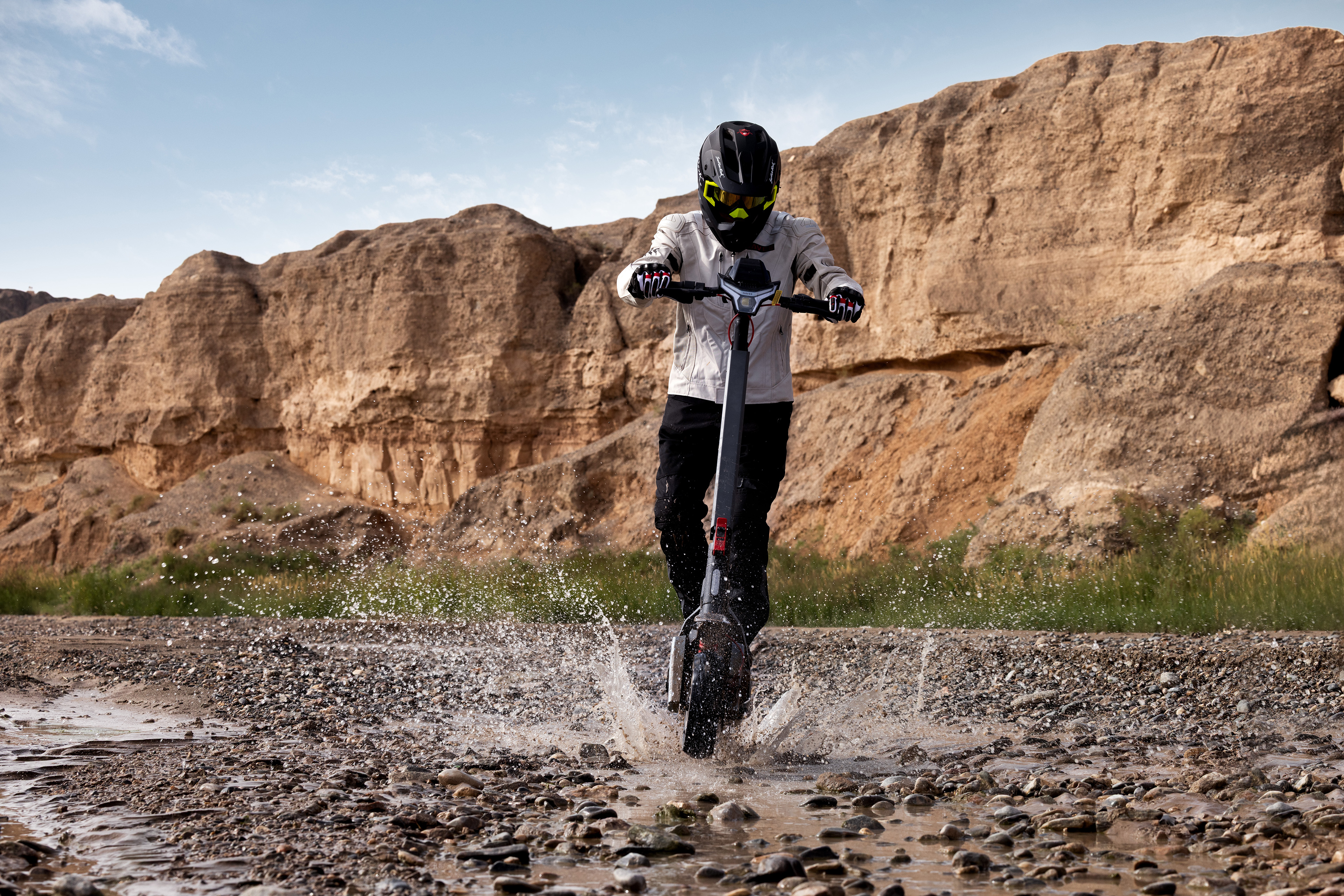 The XT5 adopts high-strength SPCC T1.5 automotive-grade carbon steel for its body, with tough, powerful lines flowing across the entire scooter. It expands the footrest area and length to enhance standing comfort. It also incorporates the pioneering one-piece functional brake lever and a 5-inch full-color LED screen, enabling smooth function switching and delivering intuitive, highly efficient operation for both urban commutes and off-road adventures.