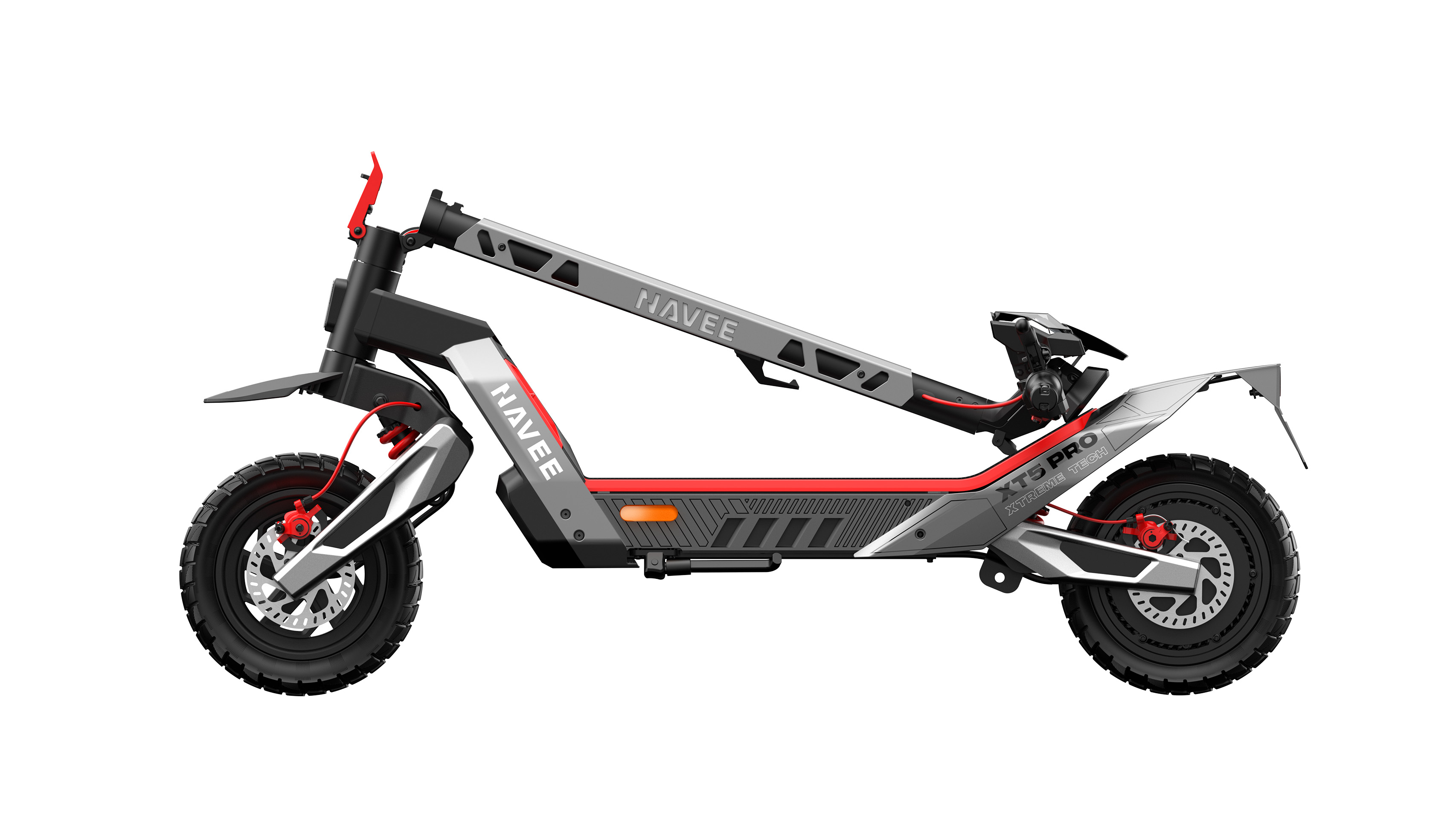 The XT5 is an electric scooter that fuses mecha aesthetics with all-terrain capability. It centers on a mech aesthetic in design, featuring sharp, dynamic lines and a bold red-and-black color scheme accented by silver trim. This design exudes futuristic flair while fully showcasing its robust off-road capabilities.
