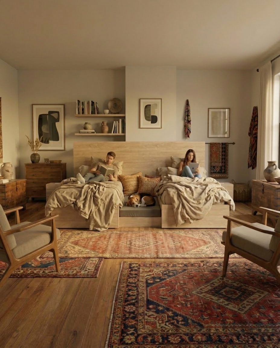 Designed to move beyond traditional split-king and adjustable systems, Castaway Bed allows two individuals to maintain distinct sleep zones while preserving the presence of a unified king bed when desired.