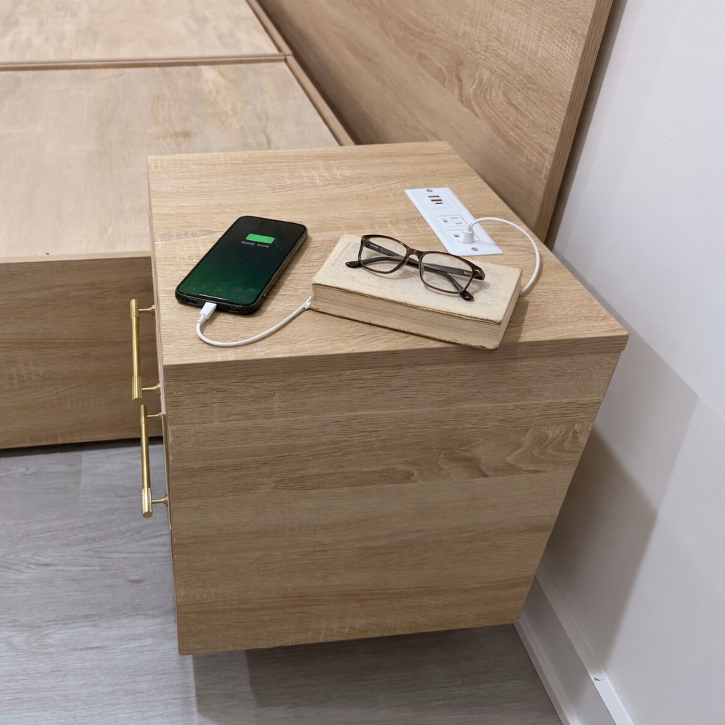 At the core of the system are two motorized Twin XL bases paired with a concealed, patent-pending center platform anchored beneath the frame. When closed, the bed presents as a cohesive king. When opened, the bases separate to reveal defined individual spaces—offering true physical separation within the same footprint.