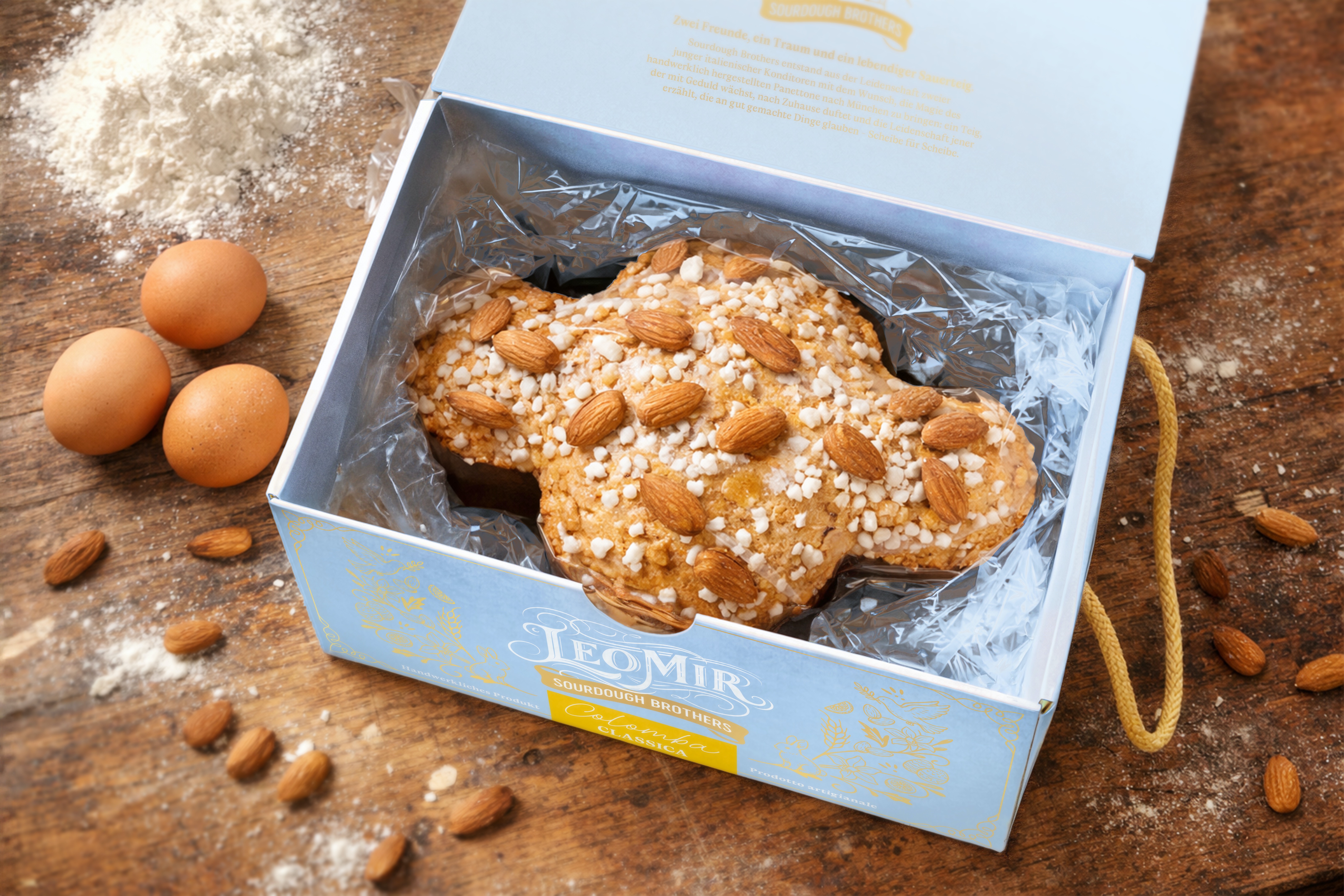 The project focused on developing packaging for the brand’s artisanal panettone and colomba, capable of expressing its Italian-German identity and standing out in the European premium market.