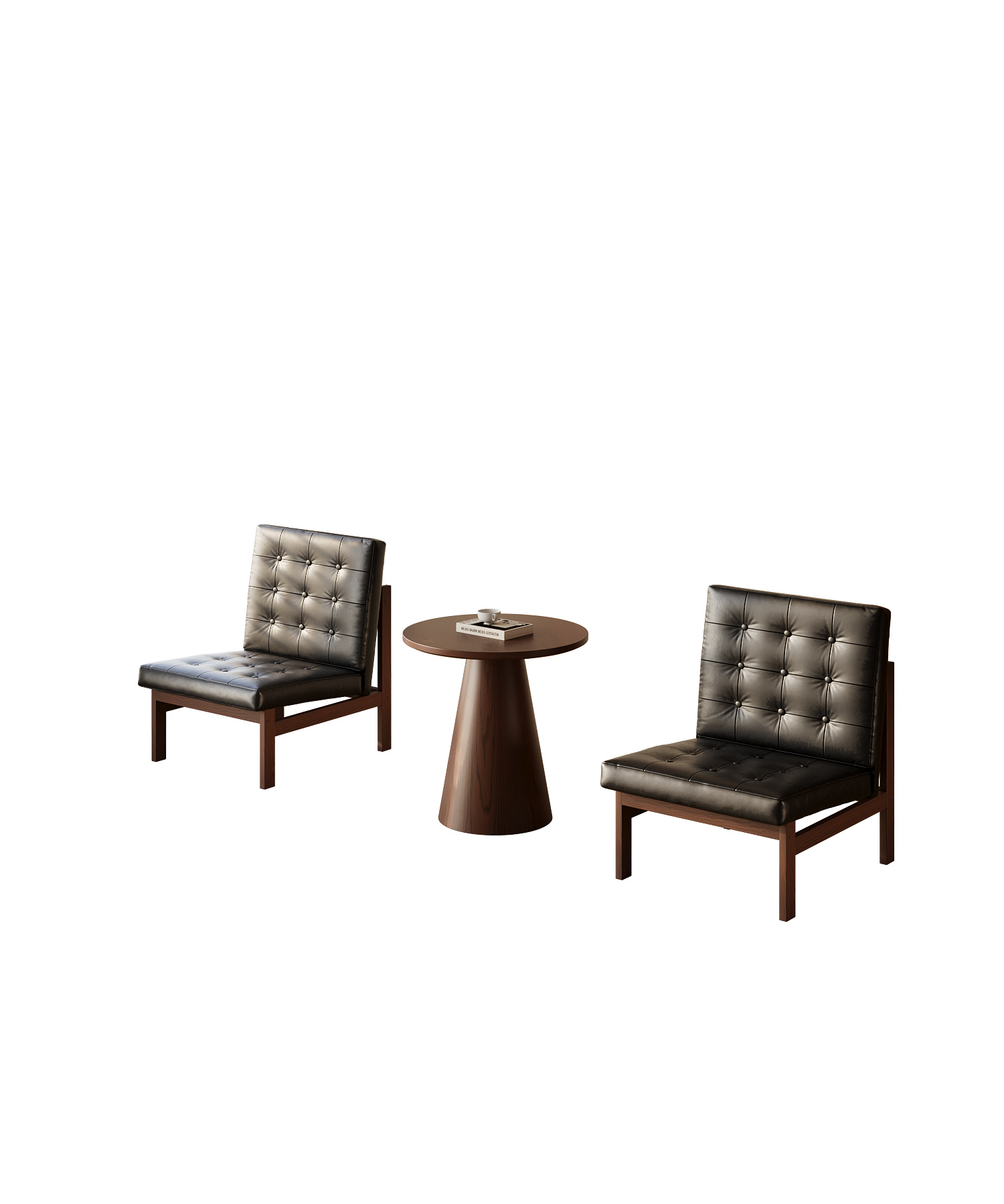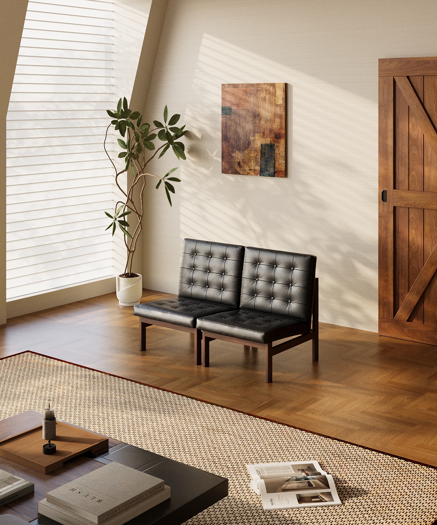 Visually, the Olly Chair revolves around three key qualities: order, relaxation, and warmth. Its square geometric form reflects the modernist principle of “form follows function,” creating a calm and stable visual presence that helps bring a sense of balance to contemporary living spaces. The grid-tufted upholstery softens the rigidity of leather through subtle curved surfaces created by the pull points, giving the chair a gentle retro elegance. Meanwhile, the combination of leather and solid wood establishes a dialogue between soft and rigid, smooth and textured, preventing visual monotony while achieving a balanced material harmony.