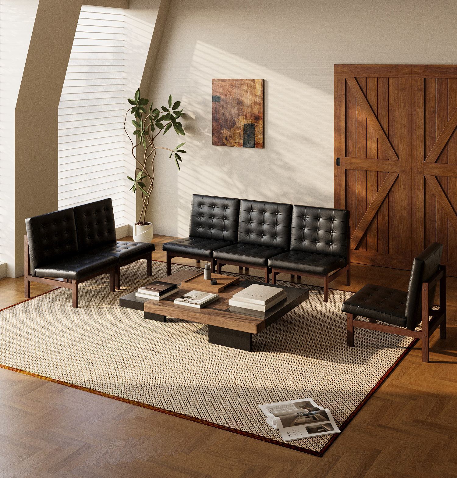 The chair adopts a fully open armless design, breaking away from the physical boundaries of traditional armchairs. This openness allows greater freedom of movement and accommodates a variety of sitting positions—from upright seating to casual side-sitting or cross-legged relaxation. Multiple chairs can also be arranged together to form modular seating combinations, transforming the chair into a flexible sofa-like configuration.