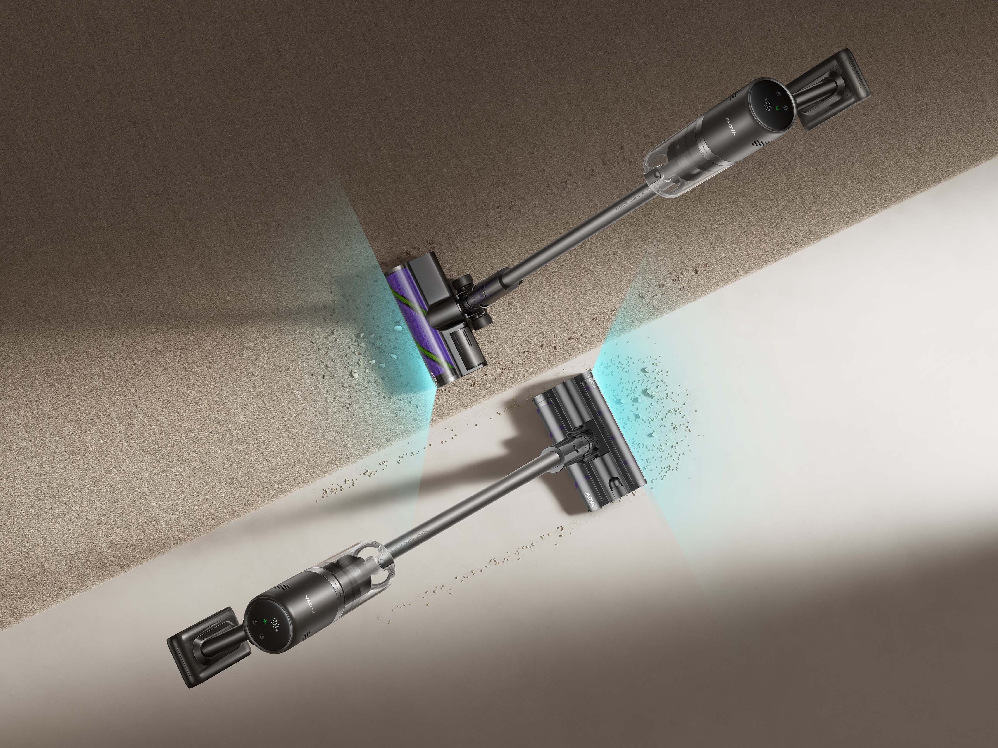 The MOVA I10 targets core household issues, including complex home layouts, limited storage in small apartments, high physical effort for cleaning, and hidden areas trapped with fine dust. It introduces an innovative counter-rotating dual soft velvet roller brush system that simultaneously lifts dirt and collects fine particles for a second time. Paired with an anti-tangle comb structure, it boosts cleaning efficiency and cuts down unnecessary back-and-forth movement. Equipped with a 360° swivel structure and 180° flat‑lay design, it reaches deep into narrow spaces as low as 20.7 cm and delivers flexible three‑way cleaning. Additionally, it employs 140° ultra-wide green laser dust detection technology to visualize fine dust and uses a 99.99% high-efficiency filtration system to continuously safeguard healthy indoor breathing.