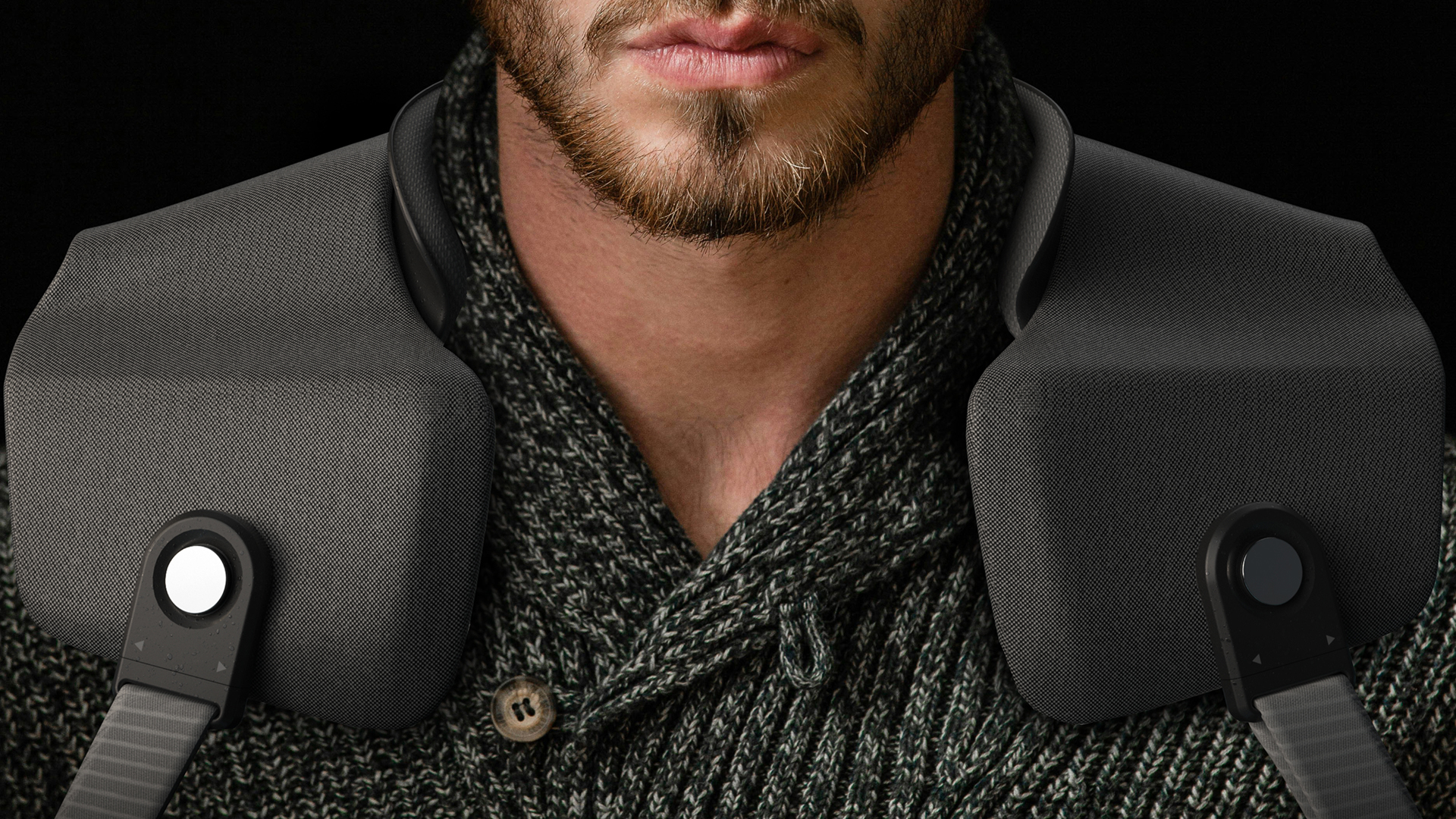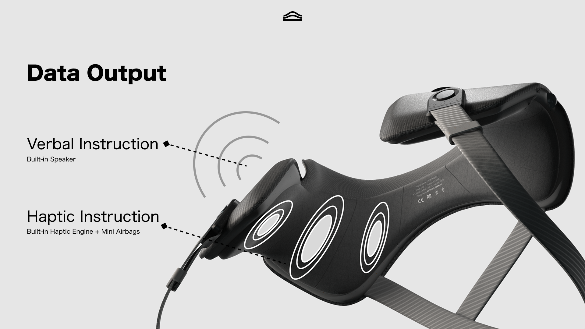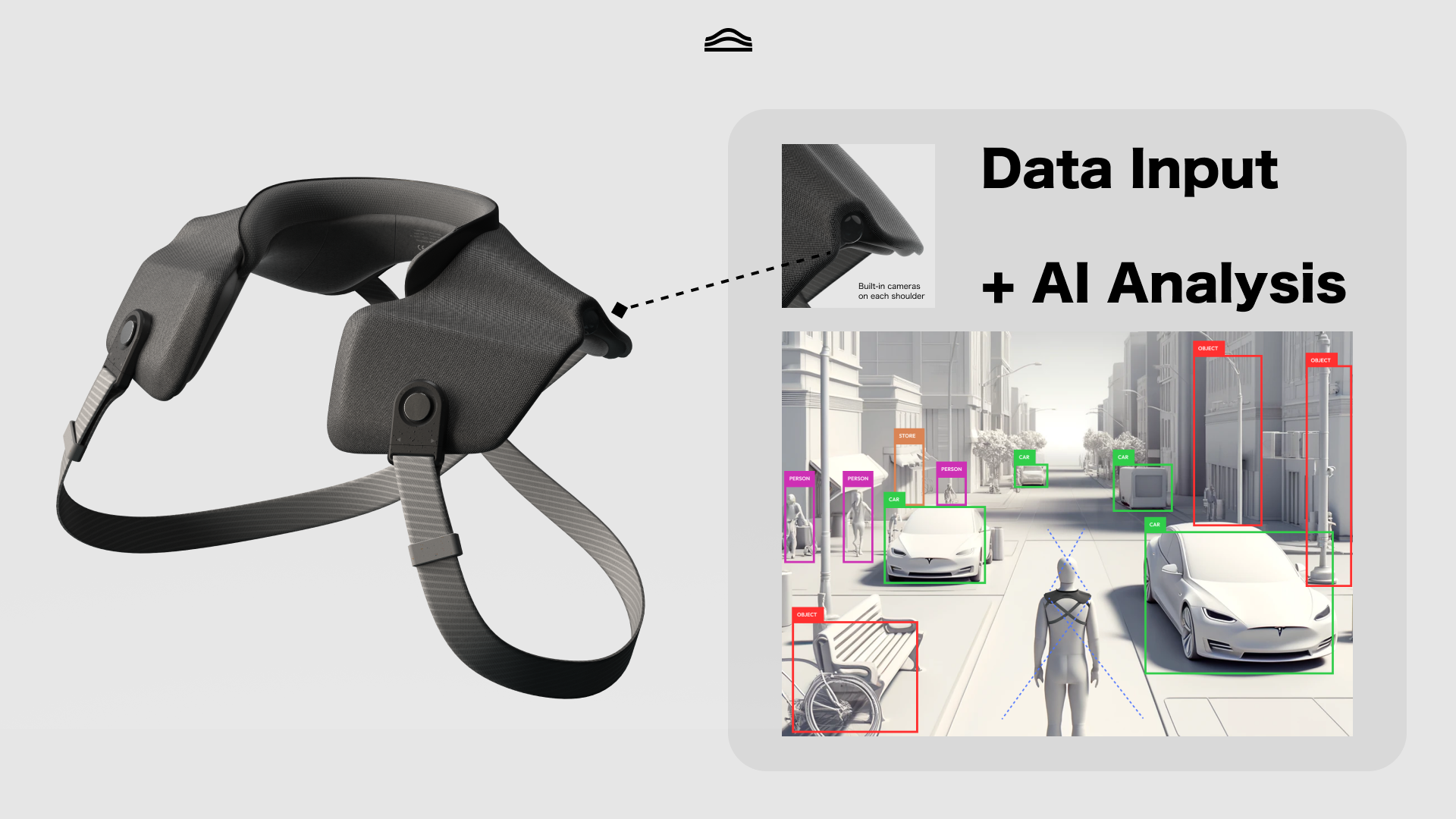 THEIA communicates through an internal speaker, vividly describing the surroundings and delivering sharp, instinctive directions. In addition, its built-in mini airbags simulate the sensation of a guiding pair of hands on the user's shoulders, providing intuitive, human-like steering with minimal learning required. Over time, THEIA also learns user habits and frequently visited locations, enabling personalized support that integrates naturally into daily life.