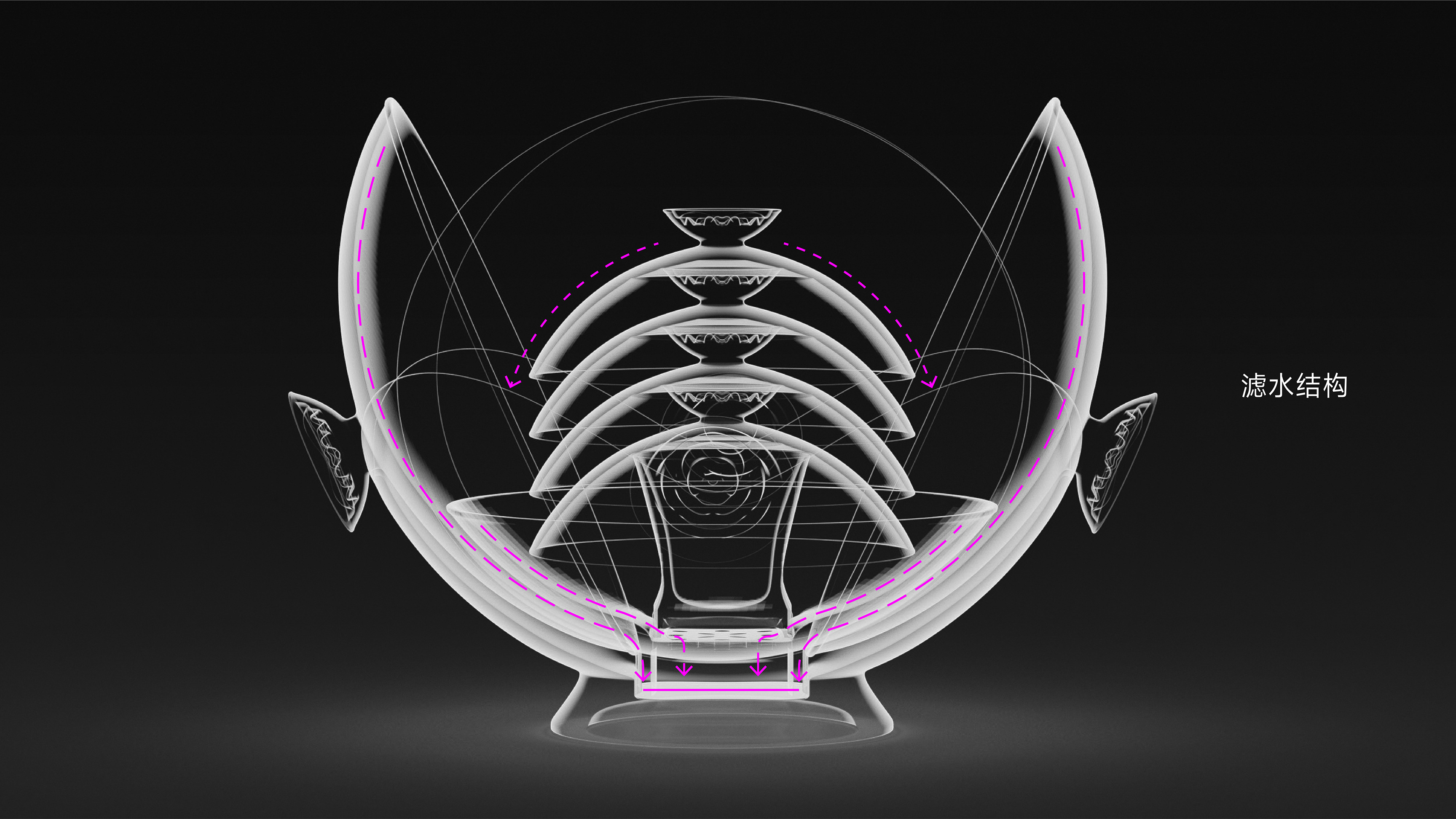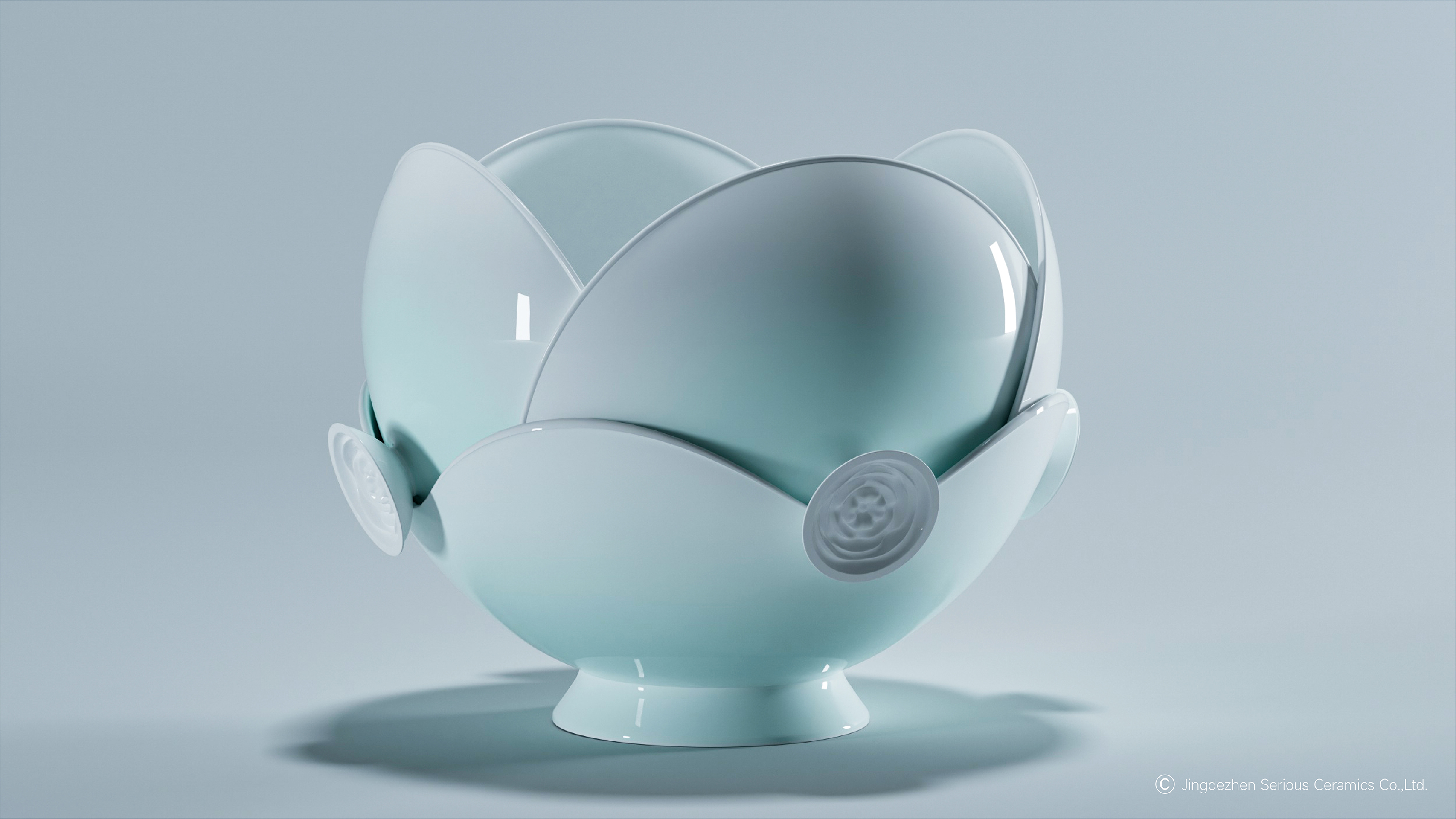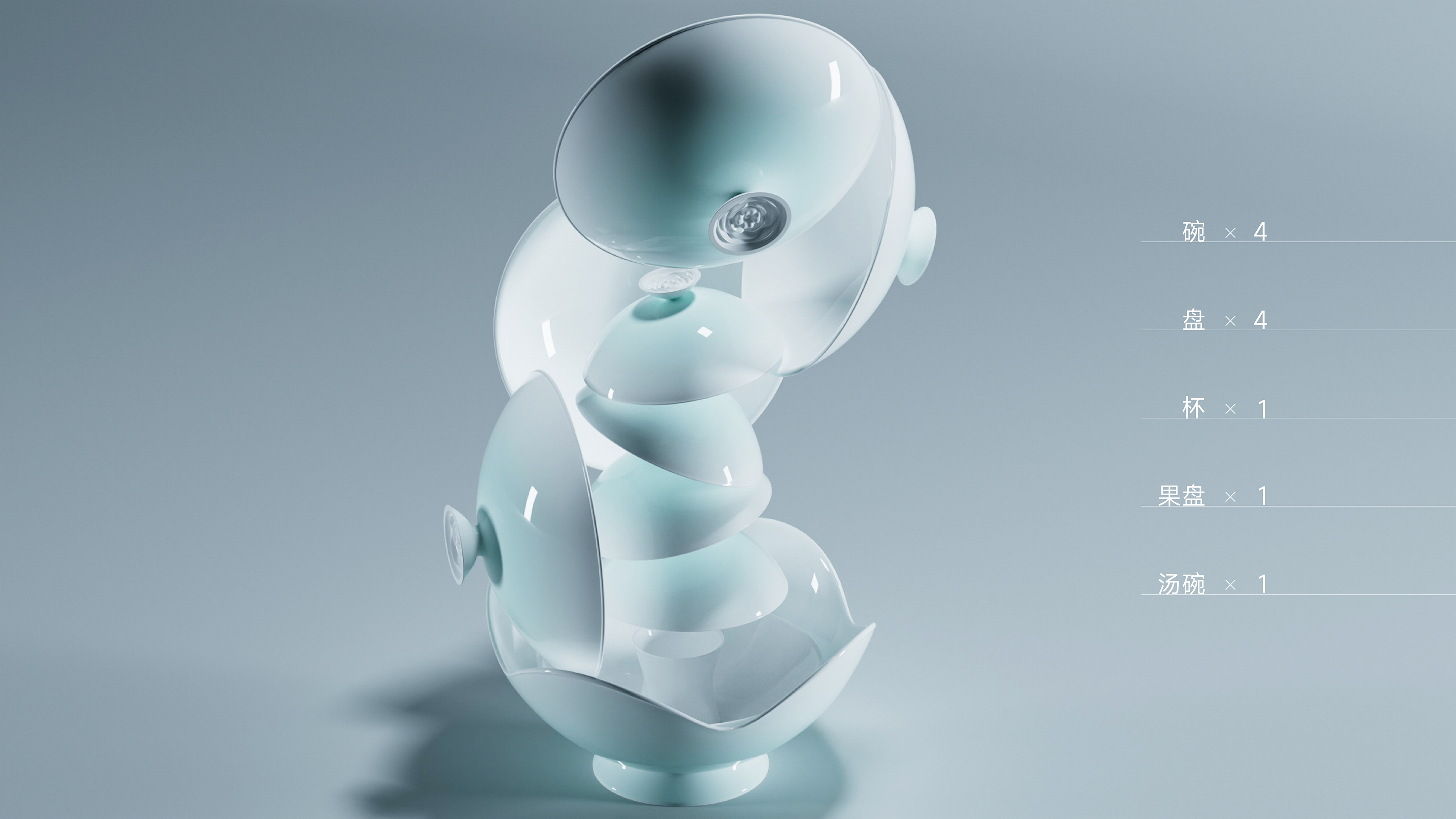 Drawing inspiration from the organic form of flower buds, this set revolutionizes storage with a self-locking water-draining stacking system. Dinner plates invert and interlock seamlessly with soup bowls, forming an eight-petaled 3D blossom. At the heart, a central cup cradles four rice bowls like a bud cluster, while the fruit tray's 6° drip-proof rim completes the seamless assembly. Powered solely by geometric tension and gravity, the entire set collapses into a single sculptural unit measuring just 24.2cm in diameter, saving 60% storage space. The 0.5-1mm drainage gaps guide water down the high-density glaze into the collection layer, while airflow-optimized cavities accelerate drying to inhibit bacterial growth.