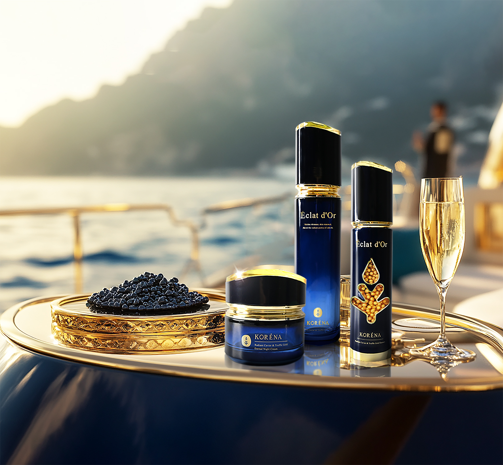 Experience the luxurious KORENA Radiant Caviar & Truffle Gold Essence, elegantly presented in a stunning deep blue and gold minimalist design. This exquisite essence combines carefully curated extracts of sturgeon caviar and salmon roe, working in harmony with innovative ingredients such as Acetyl Hexapeptide-8, Arginine/Lysine peptides, Niacinamide, Vitamin C, Centella, Sea Grapes, β-glucan, and Hyaluronic Acid.