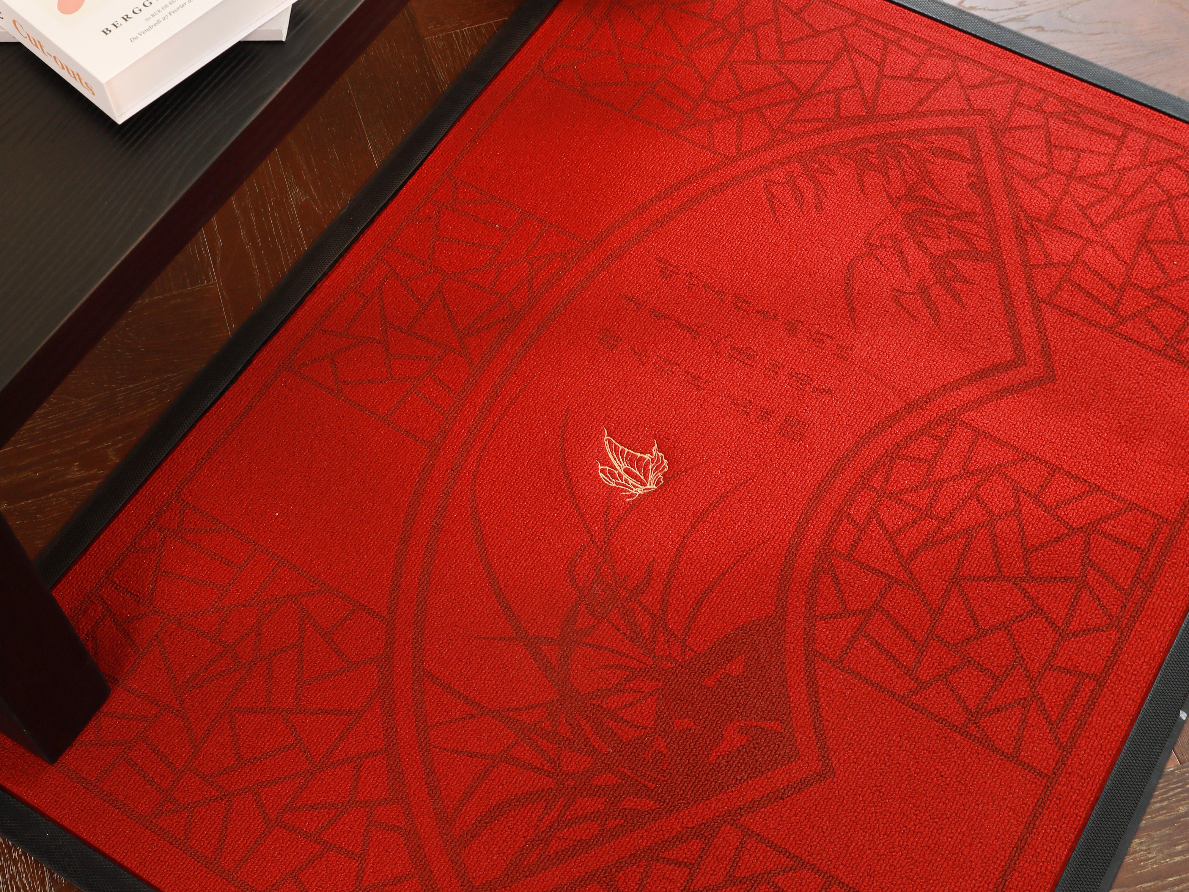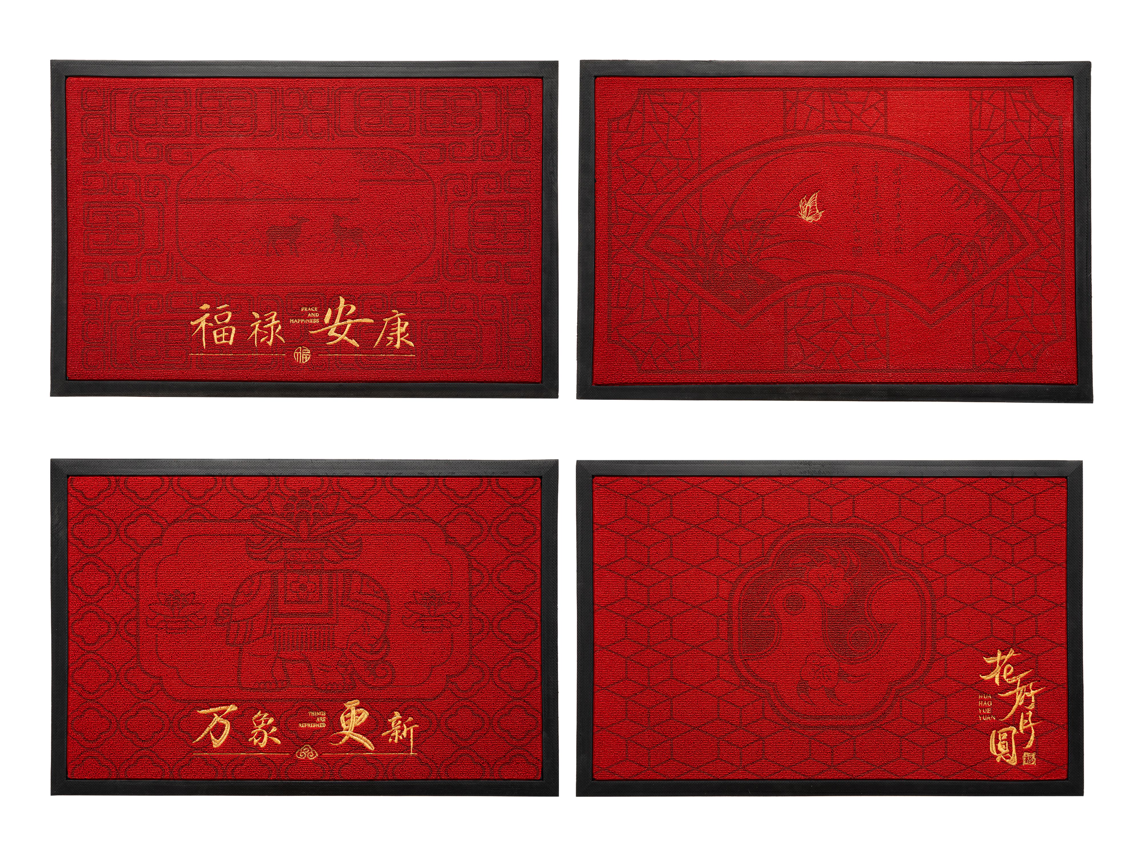 Created in collaboration with the Suzhou Museum, the doormat is visually inspired by classic patterns and designs found in the museum’s treasured artifacts, which are reinterpreted through modern design language and transformed into decorative patterns rich in cultural meaning, celebrating unique Eastern aesthetics while conveying auspicious symbolism. Notably, the surface employs computer embroidery and laser engraving techniques to create natural gradients in shading, enhancing its visual depth. The classic red-and-black color scheme, combined with gold-thread embroidered calligraphy, not only maintains the solemn and elegant style of traditional Chinese aesthetics, but also introduces the understated luxury of contemporary design.