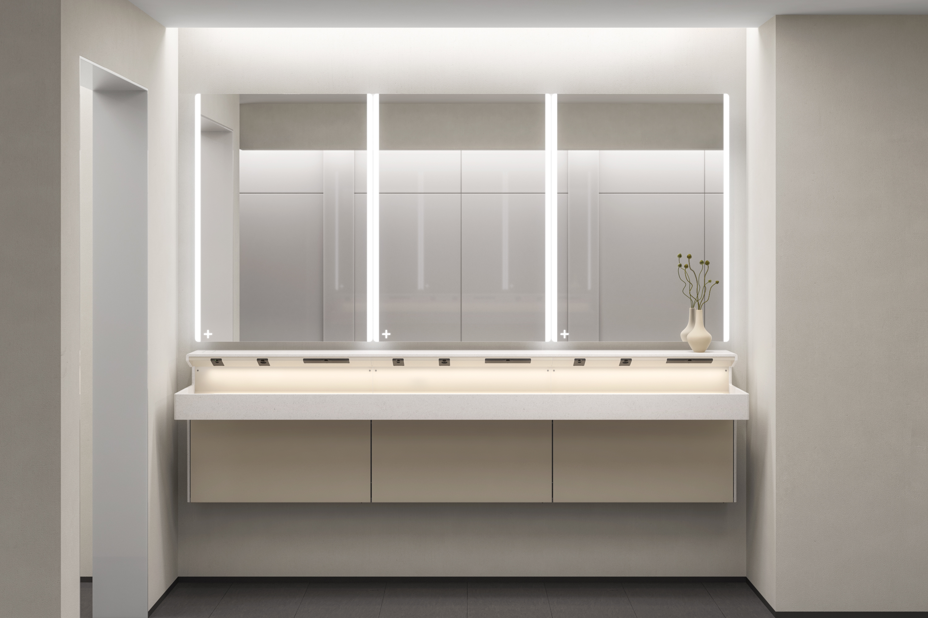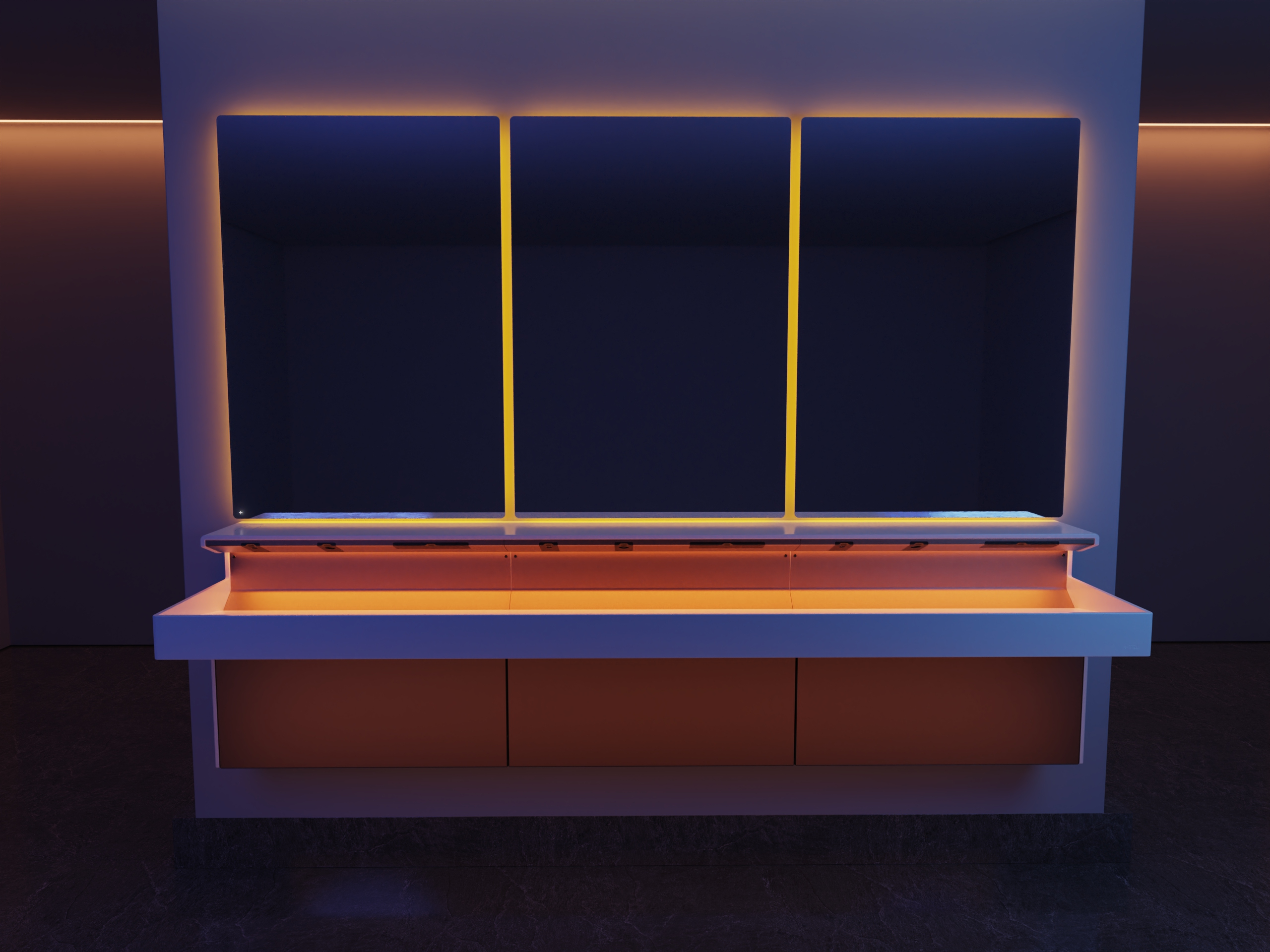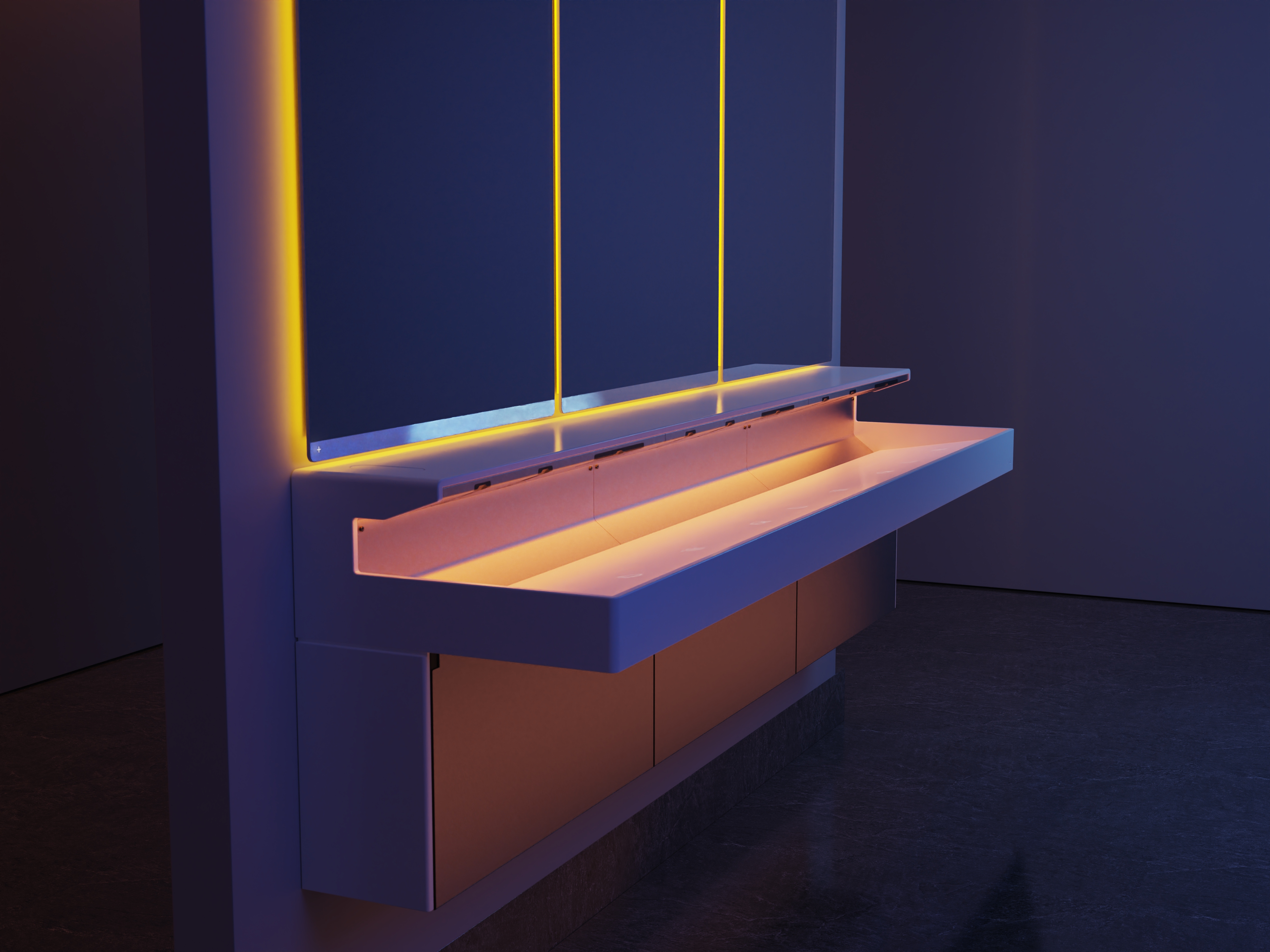 Lumashelf is The Splash Lab’s solution to the challenges of high-traffic restrooms. Engineered for intelligent simplicity, it minimizes visual clutter by integrating soap, water, and air into a single, seamless shelf. Its modular design, available in 30” increments, scales effortlessly for 1–3 users. Illuminated icons guide intuitive hand placement, while a top-fill soap system with smart alerts streamlines maintenance. Each unit ships fully assembled with all plumbing and electrical components pre-tested, ensuring a fast and seamless installation.