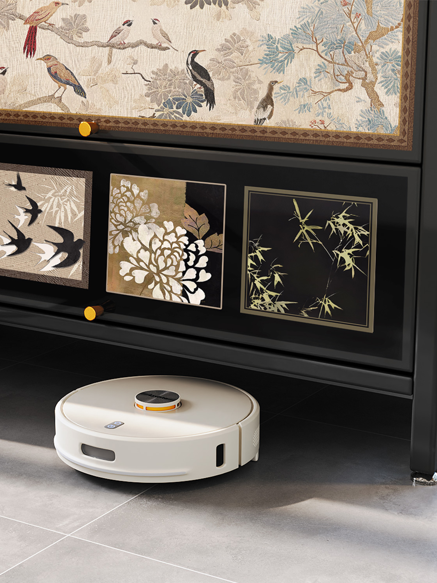 This shoe cabinet merges practical storage with artistic decoration in a creative way. By integrating patterns rich in Eastern cultural symbolism, it transcends its role as mere shoe storage, transforming into a meaningful home art piece.