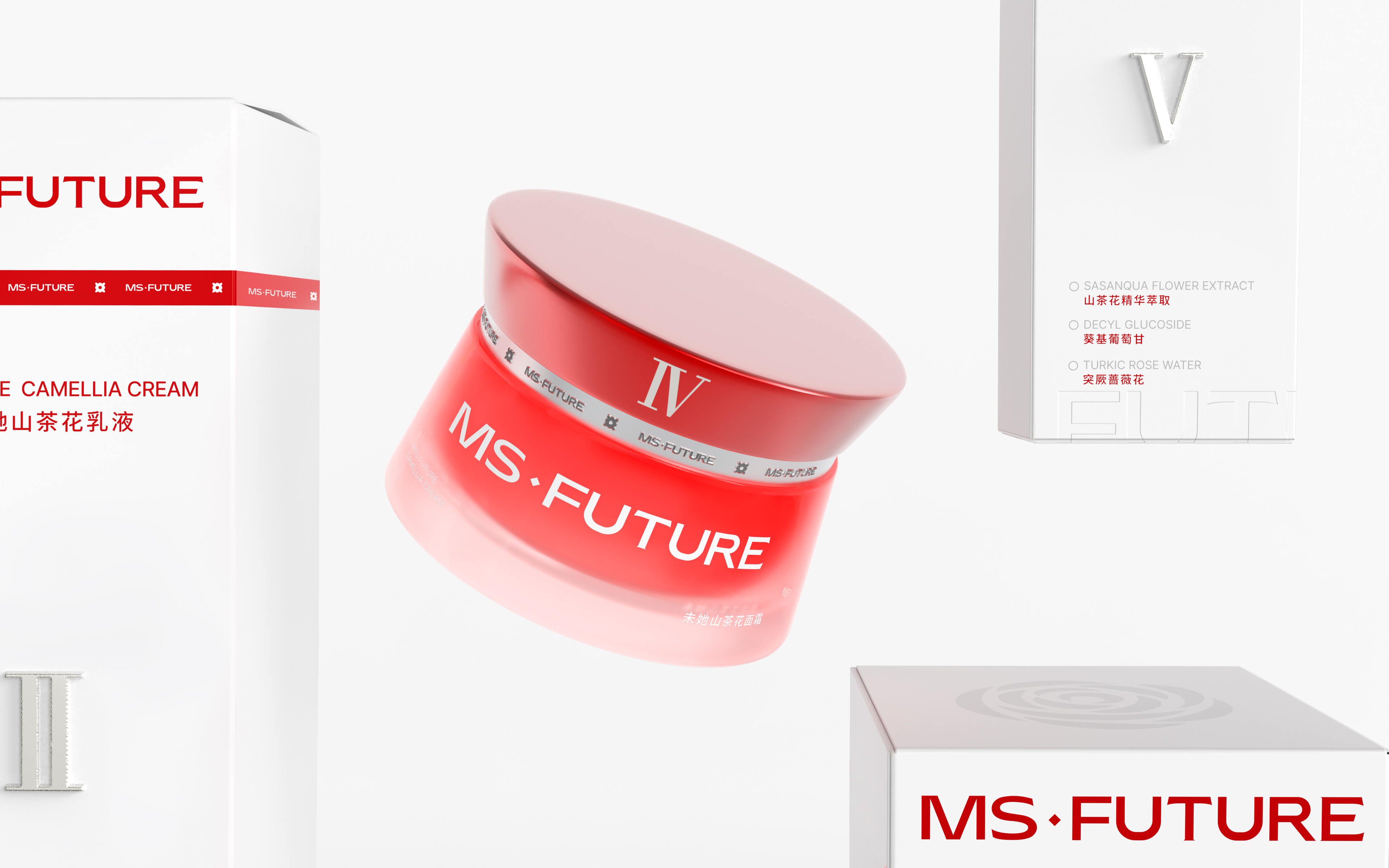 Thoughtful details enhance the user experience: The packaging features Roman numerals I-V to clearly indicate the recommended order of use. The outer box incorporates a specially designed modular feature—three boxes can be arranged together to form the full concave “MS Future” logo, adding interactive fun while boosting brand recognition.