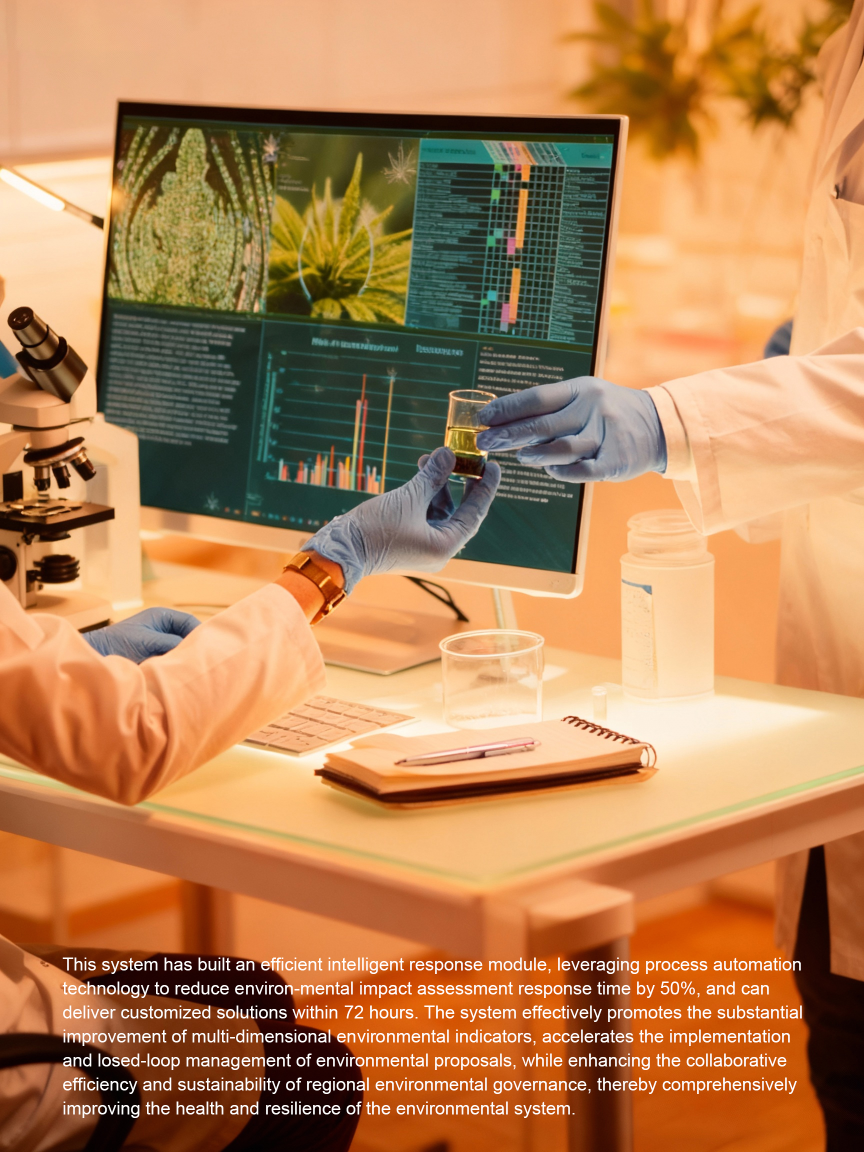 Operational testing confirms the system maintains over 99.9% accuracy in detecting data accuracy and completes preliminary assessments with countermeasure recommendations within 72 hours. Compared to conventional methods, this represents an approximate 50% reduction in response time, substantially improving environmental decision-making efficiency and governance cycle management. The system provides reliable technical support and collaborative mechanisms for regional ecological environment management.