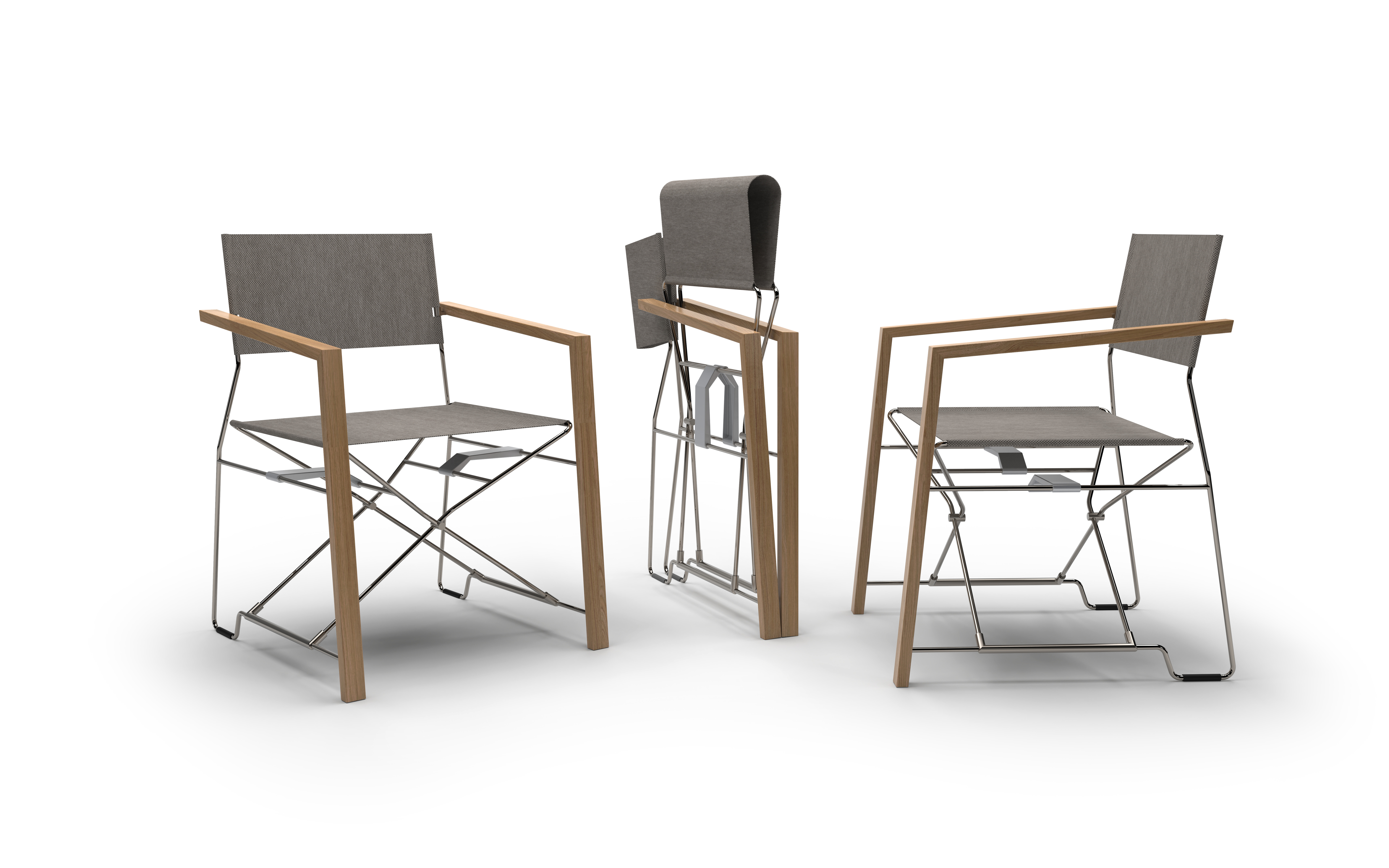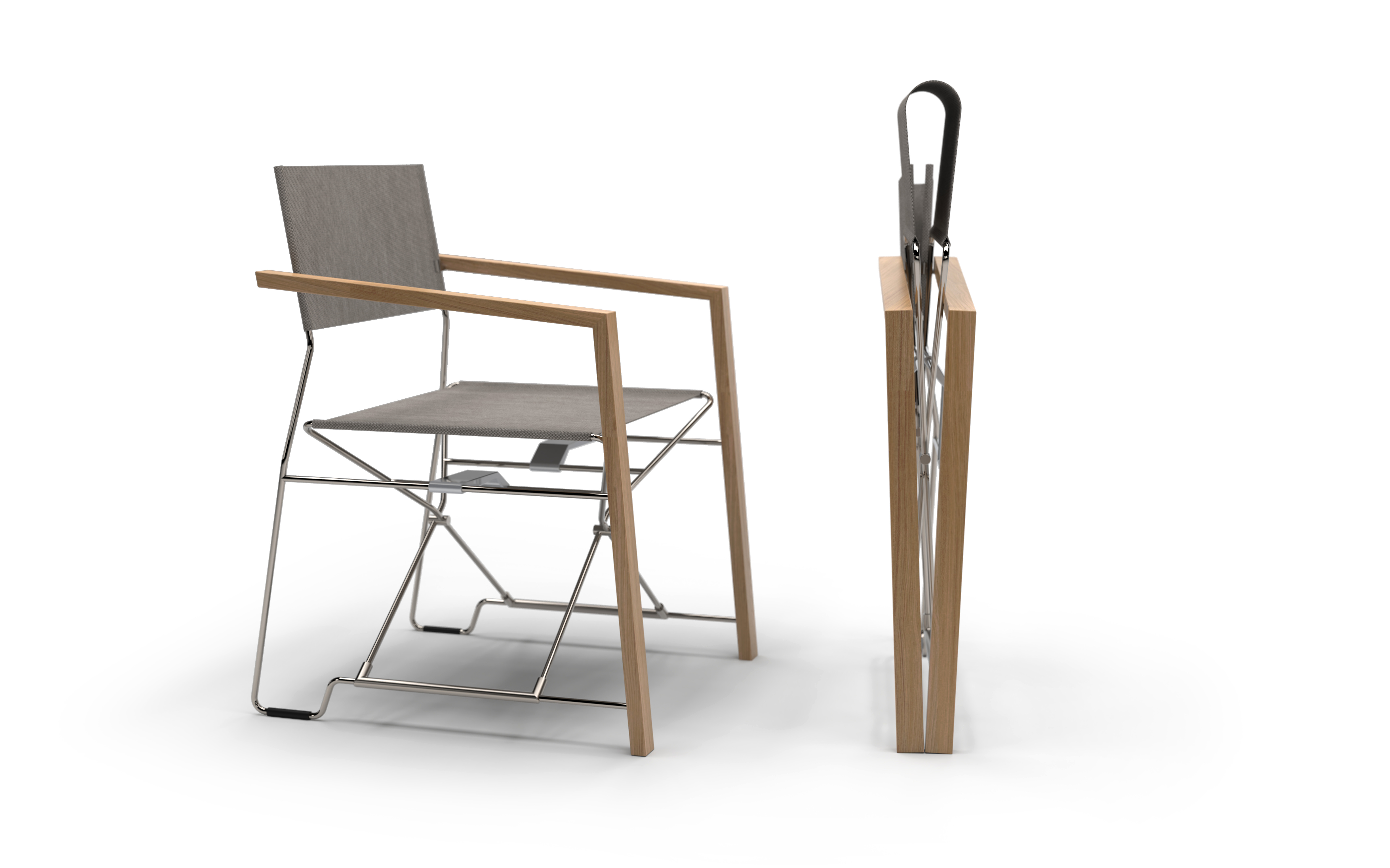 For over a millennium, the classic director's chair has remained steadfast in design and purpose. The DirecTi Chair reinvents the classic...for today. Warm teak provides a structural foundation and tactile comfort, while aerospace-grade titanium rods create an impossibly light yet strong folding mechanism. Titanium's natural corrosion resistance ensures the chair adapts seamlessly to any environment, from poolside to studio. This thoughtful pairing results in a chair that feels both grounded and weightless.