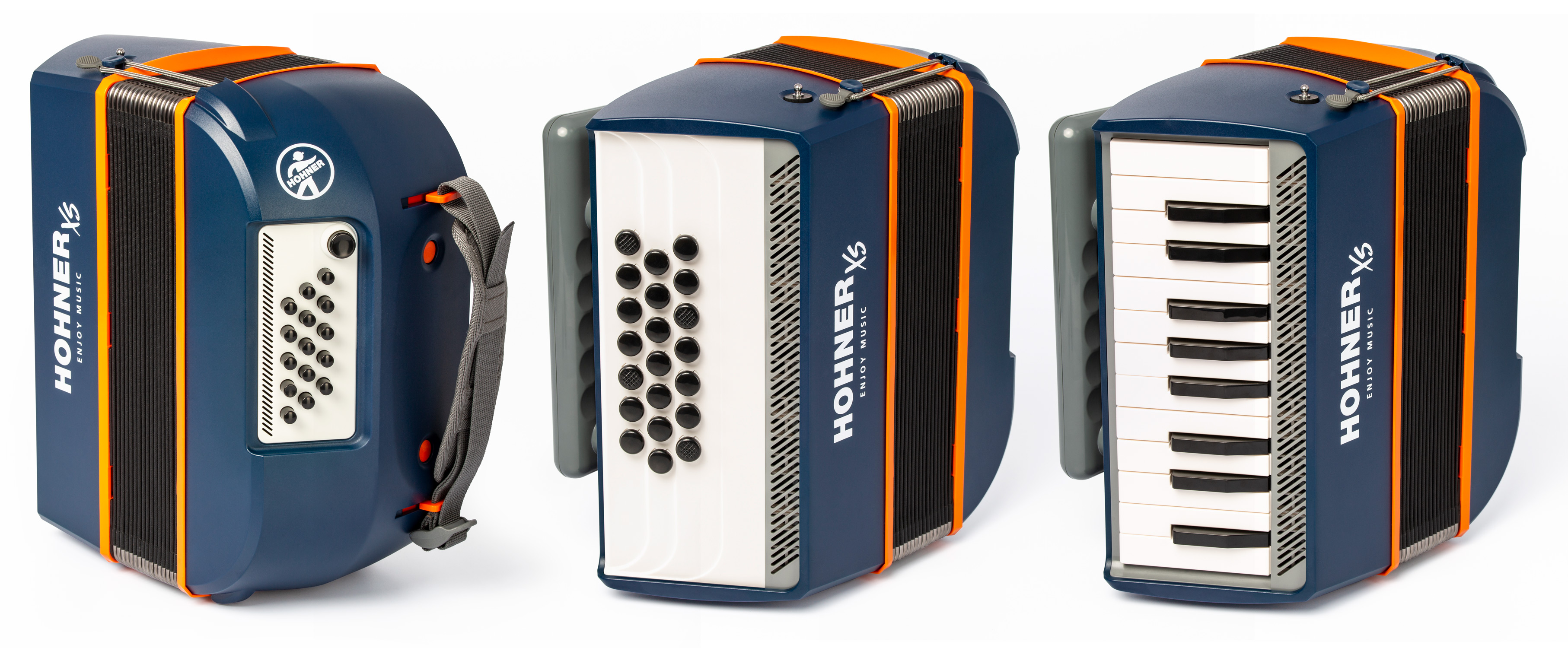 The HOHNER XS is a revolutionary and innovative accordion designed specifically for children aged 4 to 7. With its radically new design, it combines intuitive operation, ergonomic adjustment and technical innovation in a compact, lightweight format at a family-friendly price. And it is available as both a piano and button instrument.