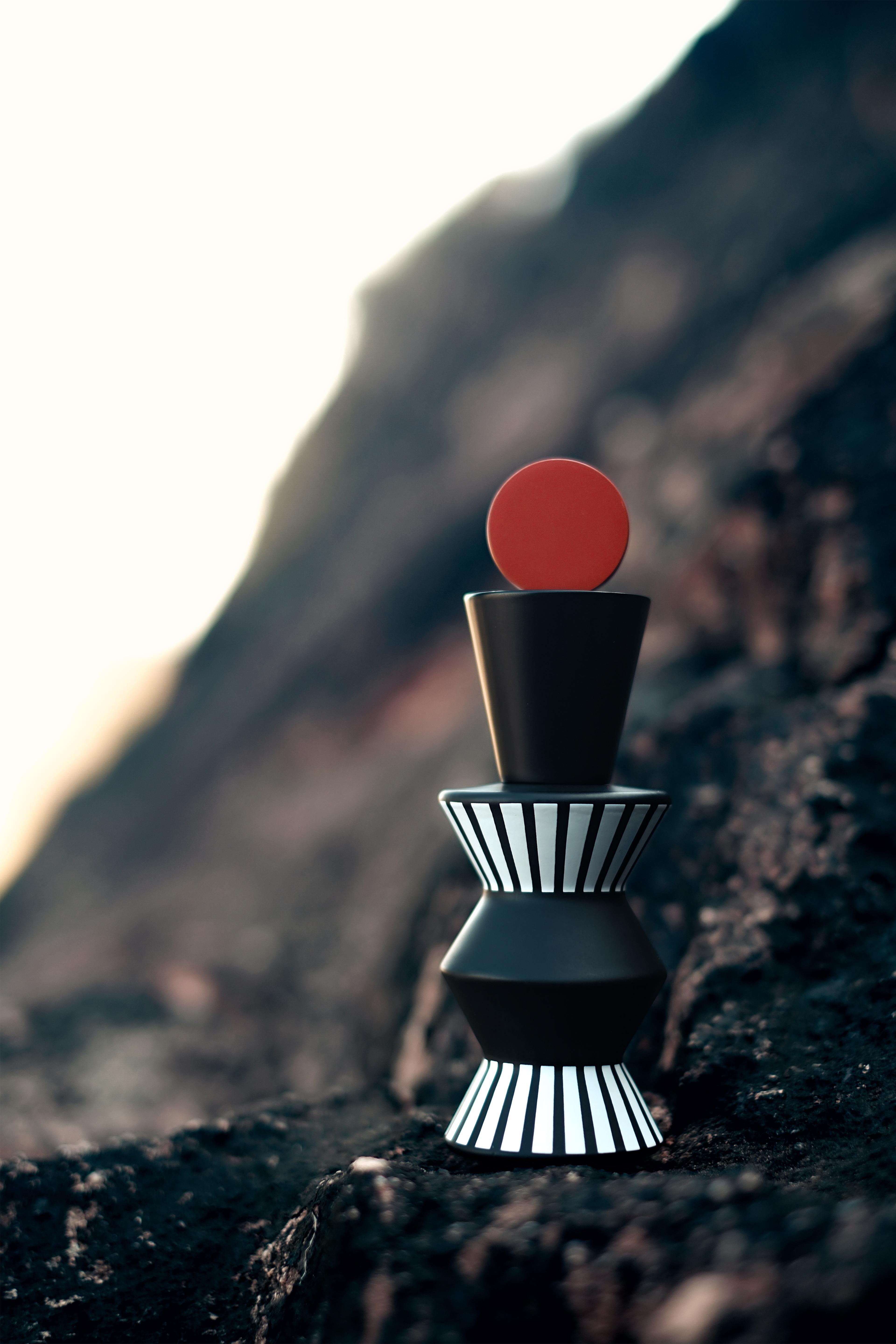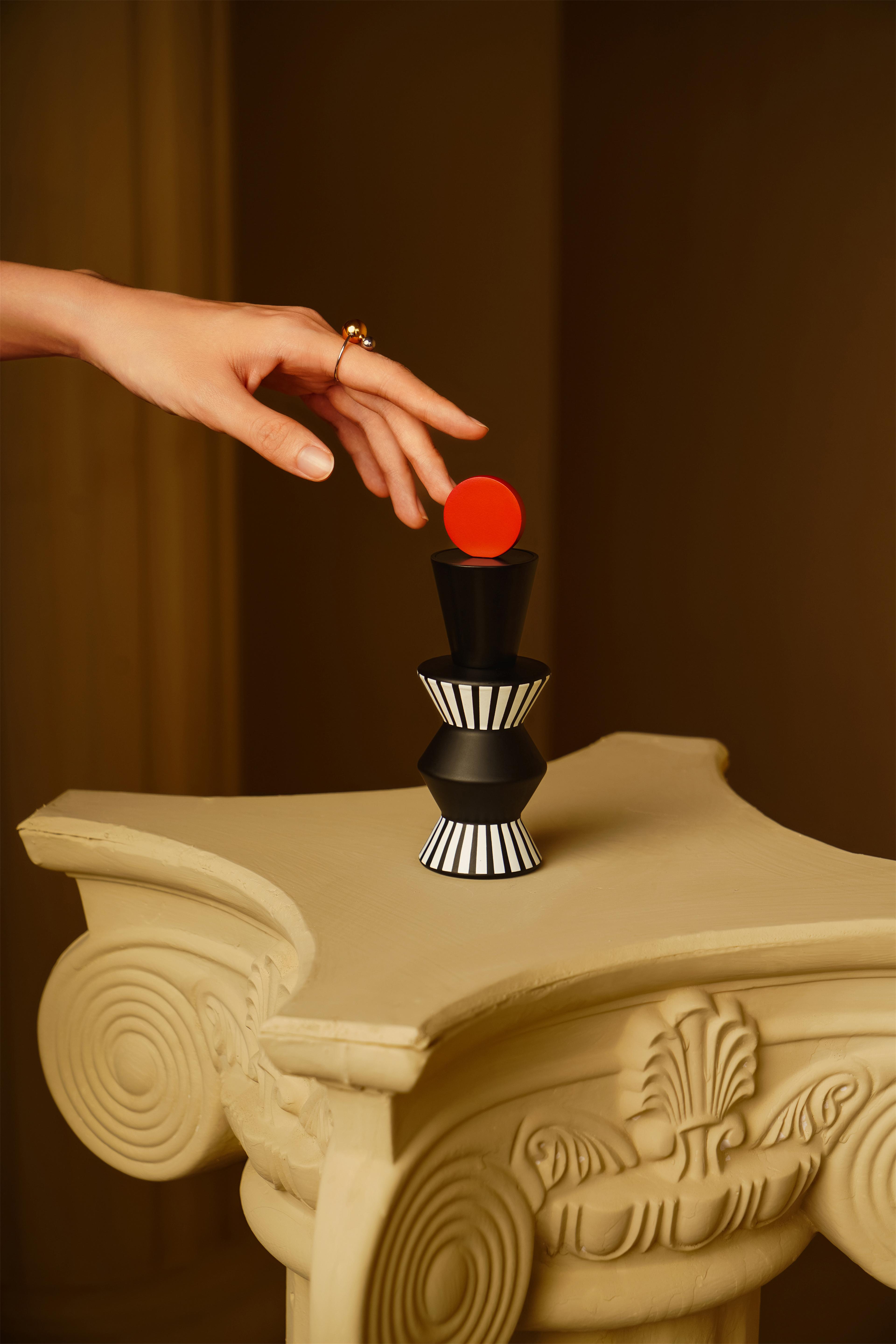 Opening the cap becomes a ritual in itself, like a player’s moment of contemplation before a decisive move. The act of rotation turns into a meditation on choice and release. More than a perfume container, it is an artistic sculpture that provokes reflection and allows the user to experience the wisdom of balance between curves and lines in daily rituals.
