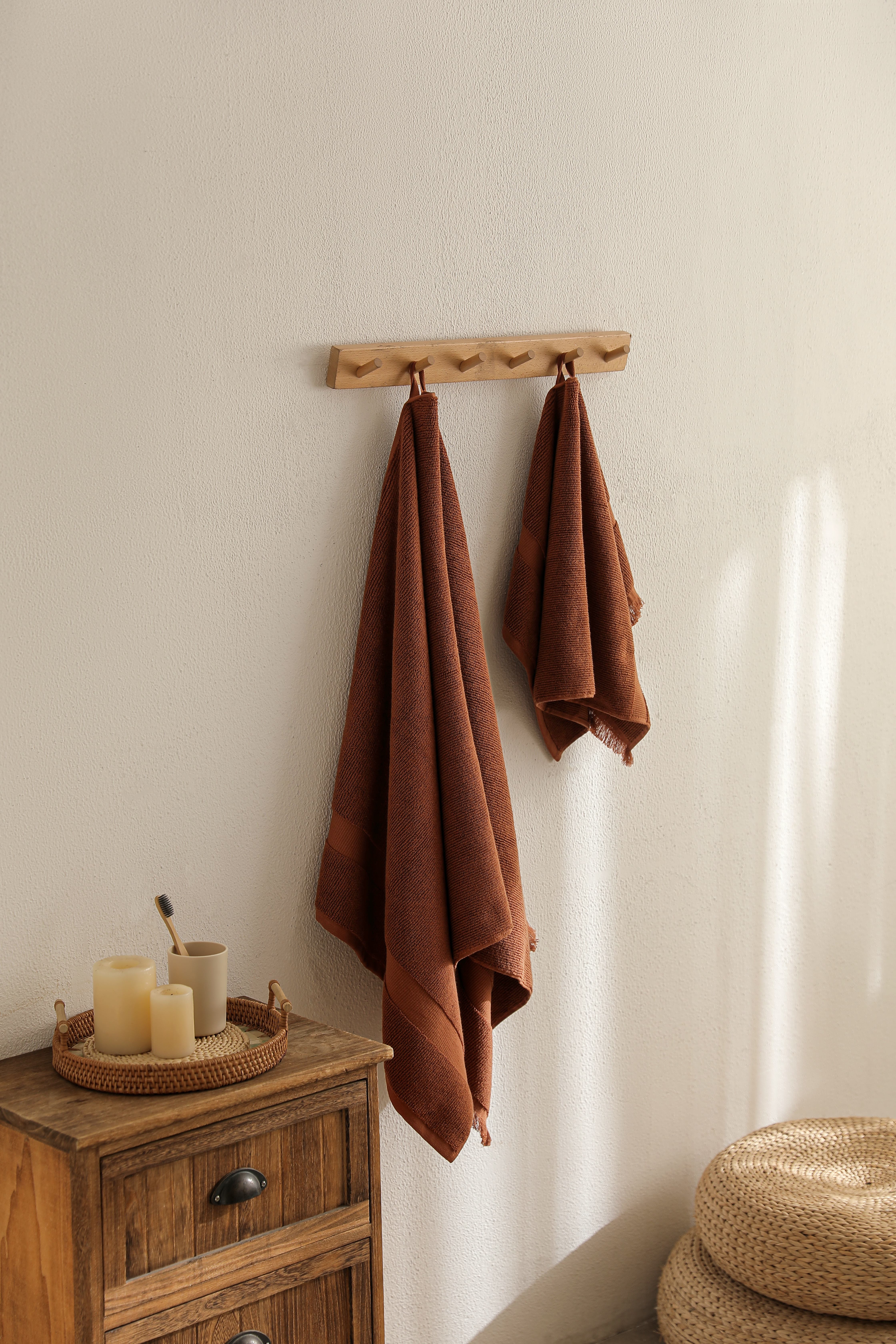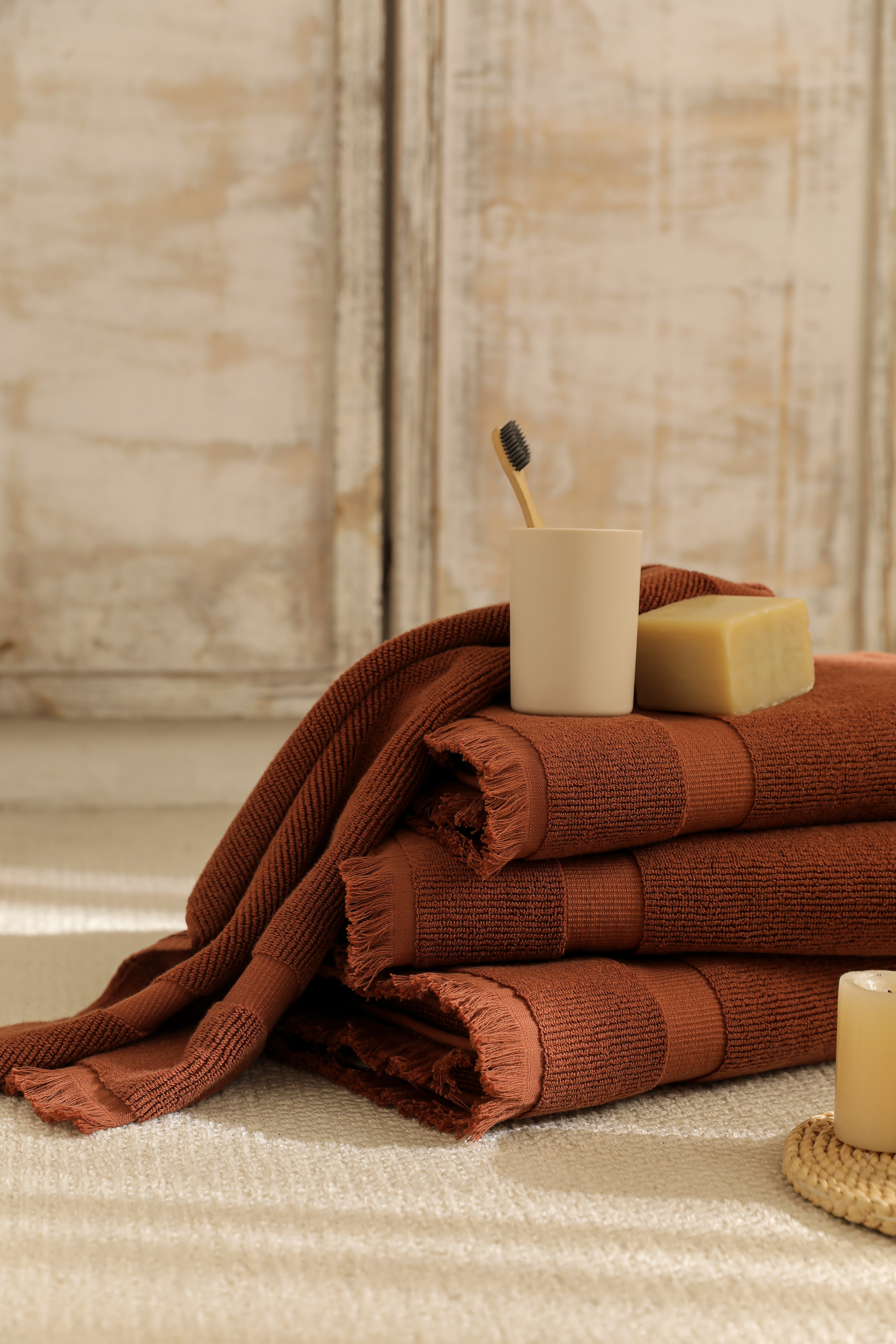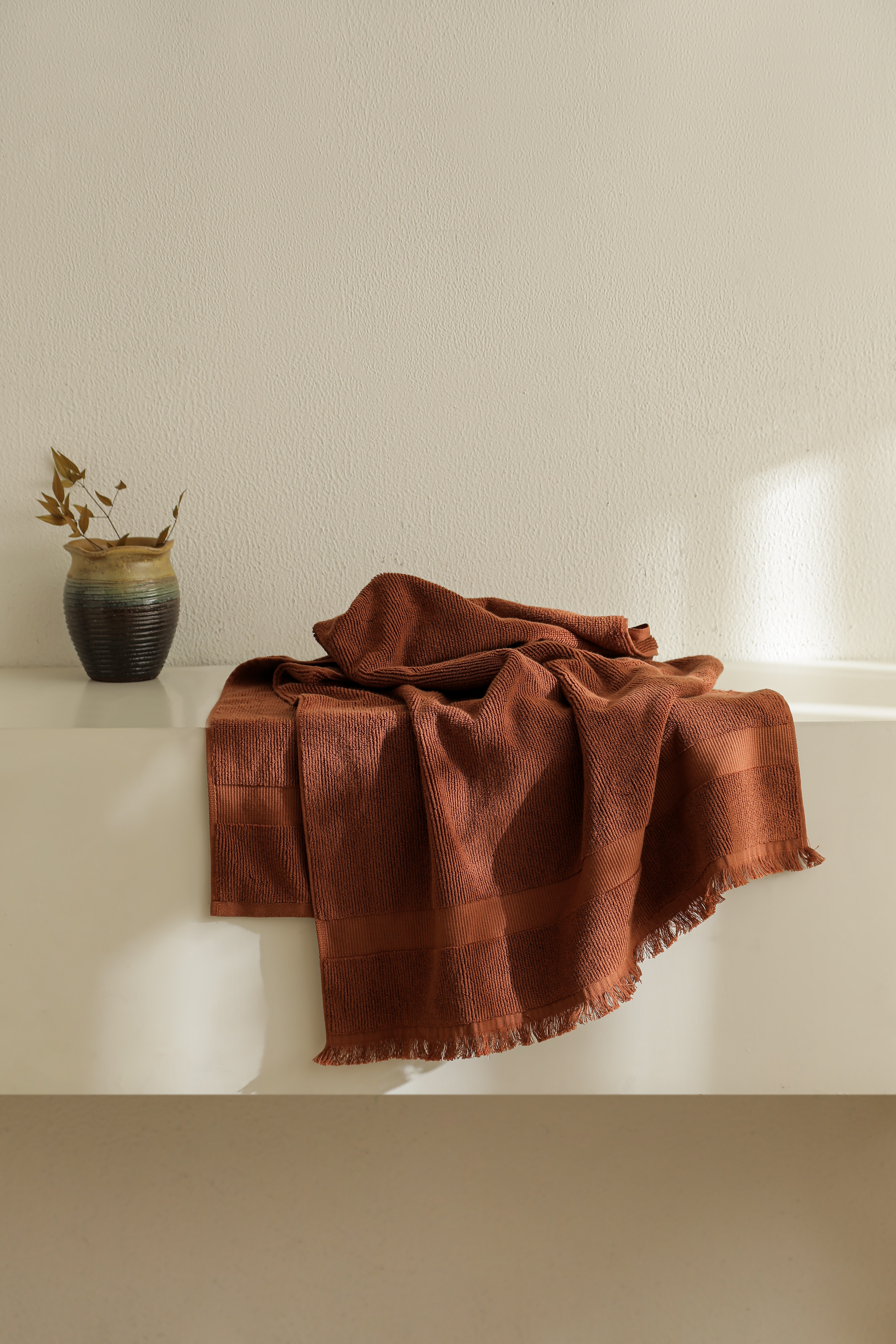 This Maillard-style bath towel draws its design inspiration from the rich and layered hues of the Maillard reaction, blending the calming stability of earthy tones with the fresh simplicity of pastoral aesthetics. The result is a unique beauty that is both vintage and modern. In terms of details, the distinctive hand-woven fringe design echoes the casual and poetic essence of country living, allowing it to seamlessly integrate into daily life. This transforms the bath towel beyond mere absorbency into a decorative accent for your space. Crafted from 100% pure cotton, it undergoes a meticulous weaving process that combines long-staple cotton yarn into a dense, plush pile structure. This ensures every fiber is fine and soft, offering strong absorbency and quick-drying properties. Treated with a special bio-polishing process, the surface is smoother and less prone to pilling, maintaining its delicate, skin-friendly texture even after prolonged use. Beyond the bathroom, this versatile towel is also perfect for outdoor camping, beach vacations, or everyday home use. Its generous size and comfortable texture cater to the needs of the whole family, suitable for both adults and children. Furthermore, we are committed to promoting a green lifestyle by strictly controlling energy consumption and wastewater discharge during production and utilizing renewable resources as raw materials, striving to minimize our environmental impact.