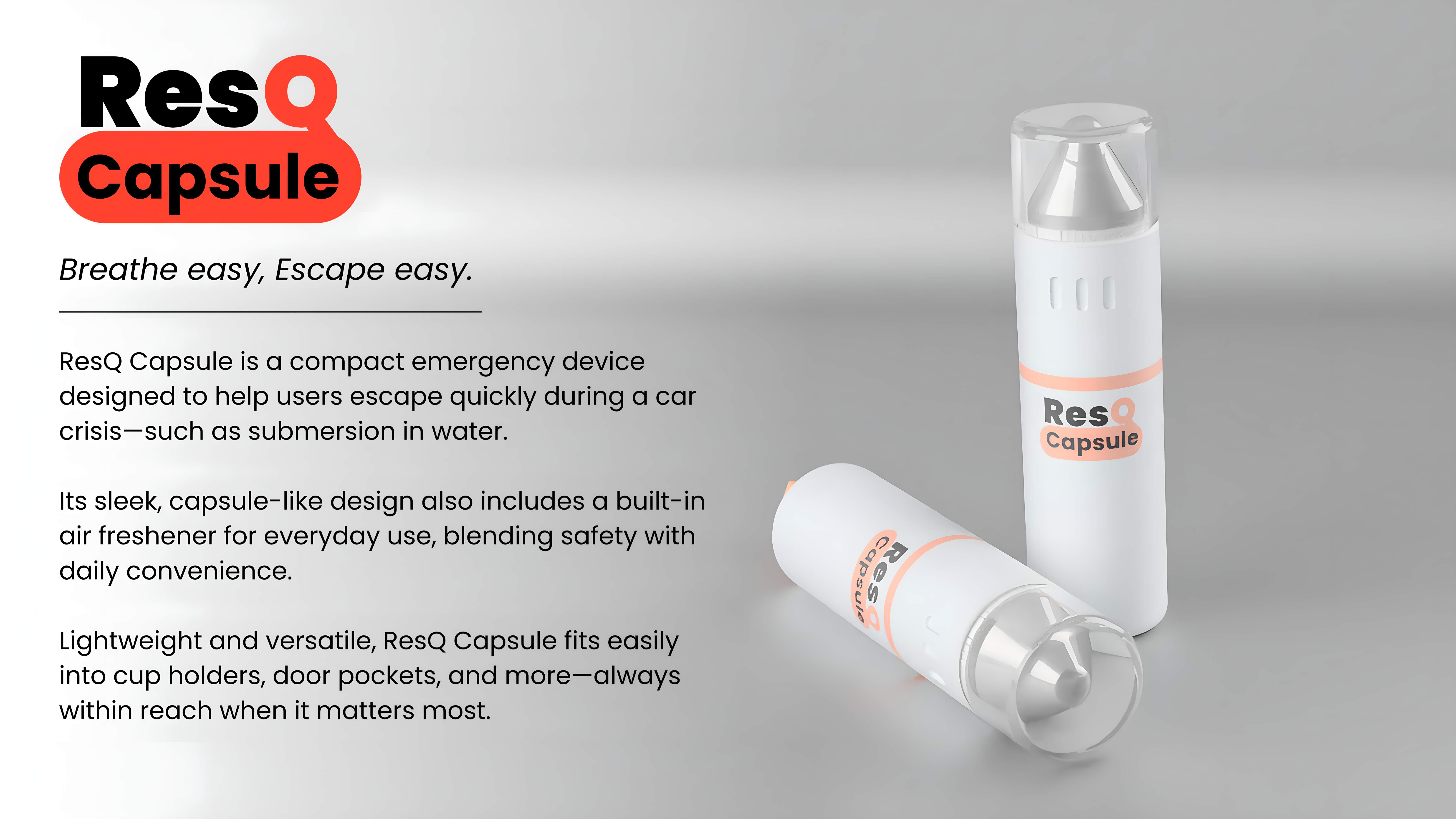 ResQ Capsule is a compact, all-in-one emergency escape tool designed to save lives while integrating seamlessly into your daily driving routine. With its sleek capsule shape, it fits neatly into cup holders, door pockets, or even center consoles. It’s always accessible, never intrusive.