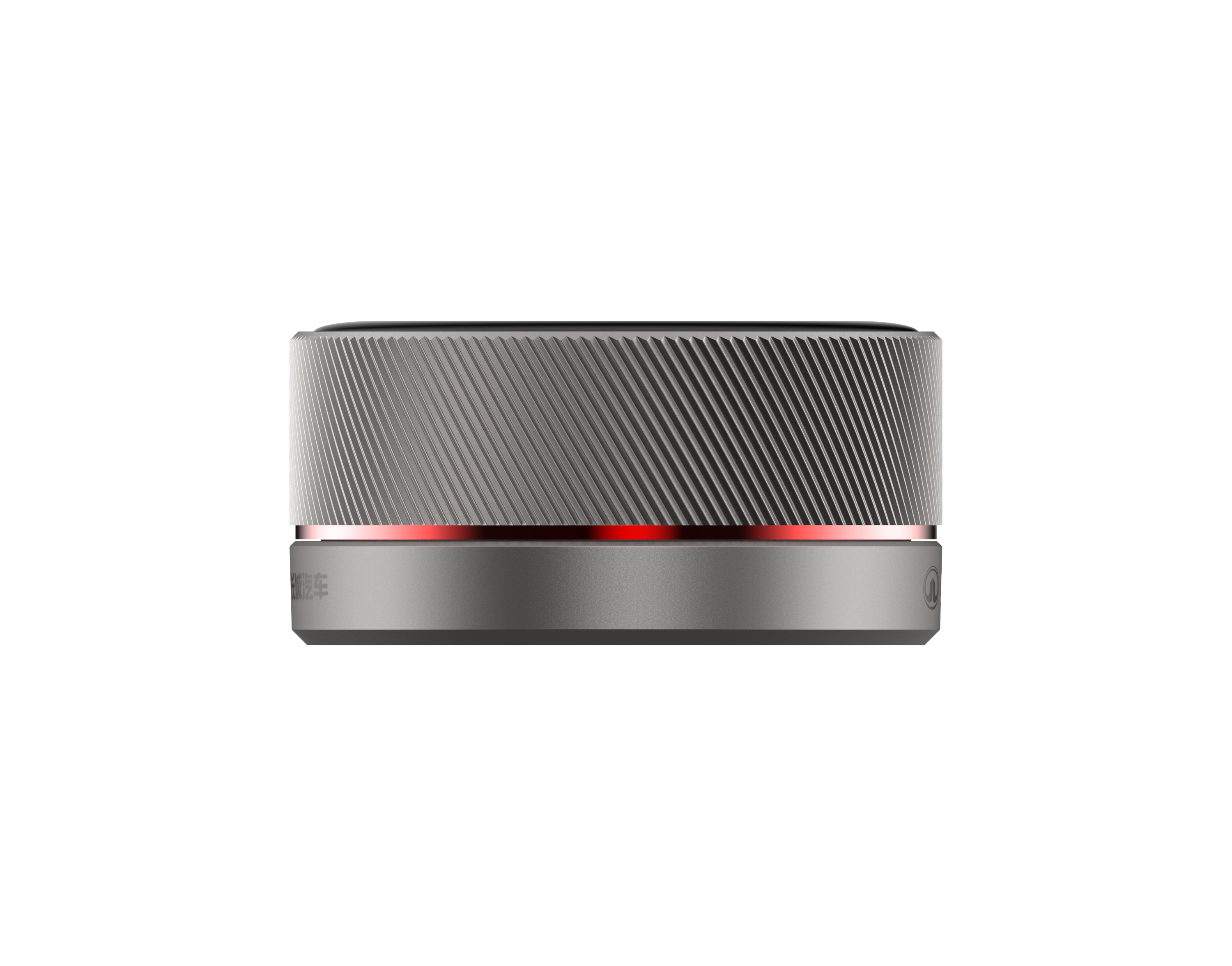 The design of the magic knob draws inspiration from mechanical watch crowns and camera shutters, featuring a rounded proportion and intricate texture that emphasize precise and controlled operation. Its top surface is covered with tempered glass, and an illuminated annular light strip creates a deep, immersive glow. The combination of aluminum alloy, tempered glass, and PC material balances durability, lightness, and scratch resistance, while ensuring a comfortable grip and a soft, non-glaring appearance at night.