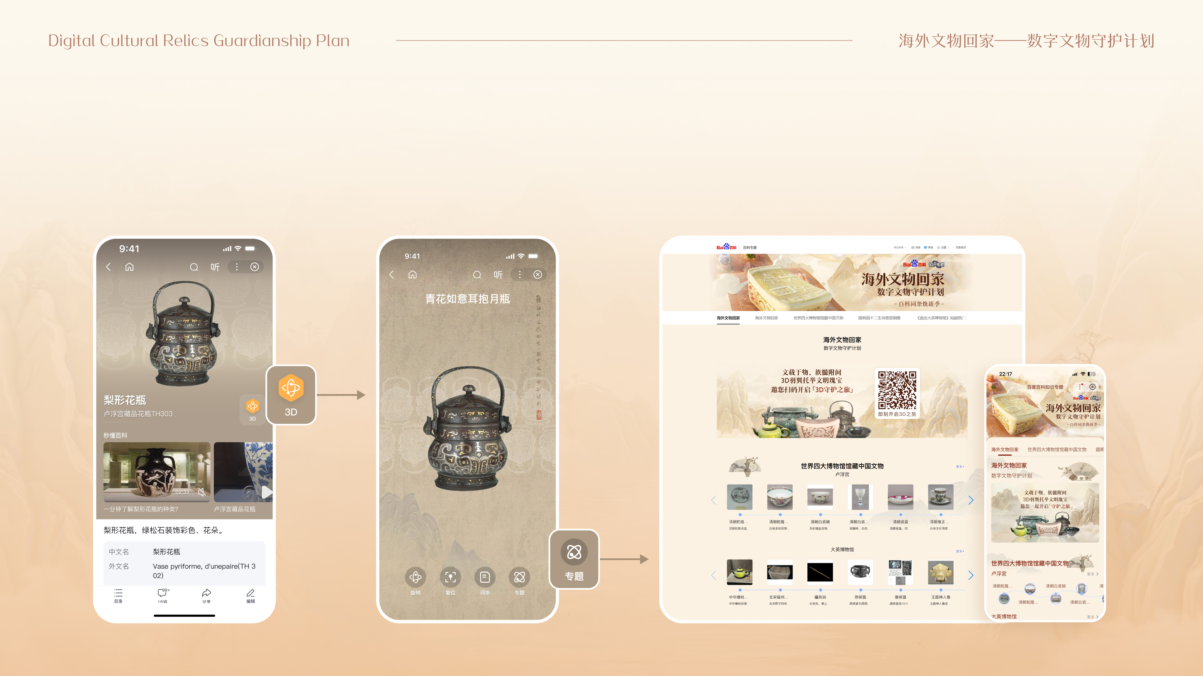 This project focuses on the world's four major museums: the Louvre, the Metropolitan Museum of Art, the British Museum, and the State Hermitage Museum. Leveraging technology, it undertakes high-precision digital restoration of 475 Chinese cultural relics currently held overseas. The 3D upgrade of these cultural relic entries establishes a more comprehensive knowledge ecosystem. Interactive zoom, drag, and rotate functions break through the physical limitations of distance and display cases, revealing details inaccessible in traditional exhibitions.