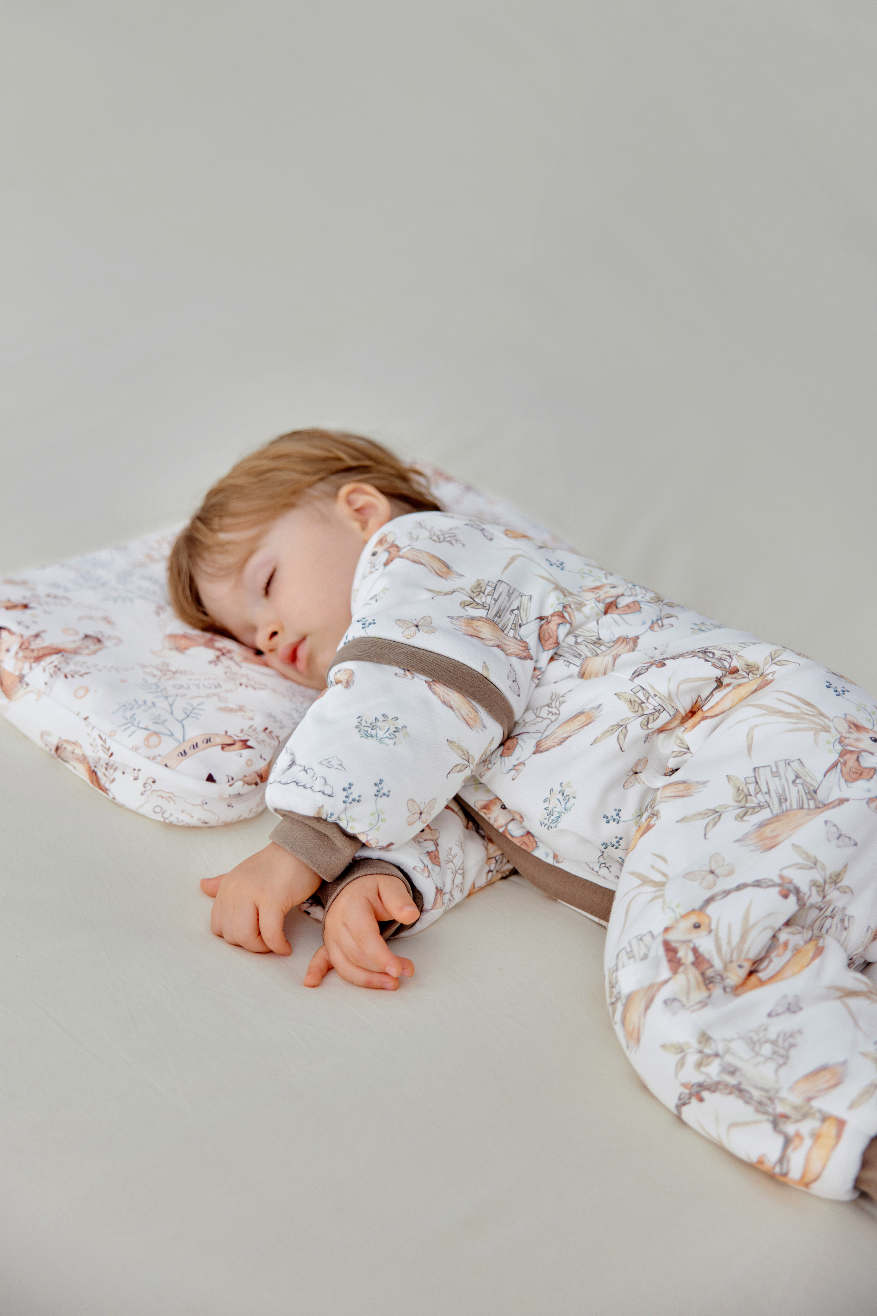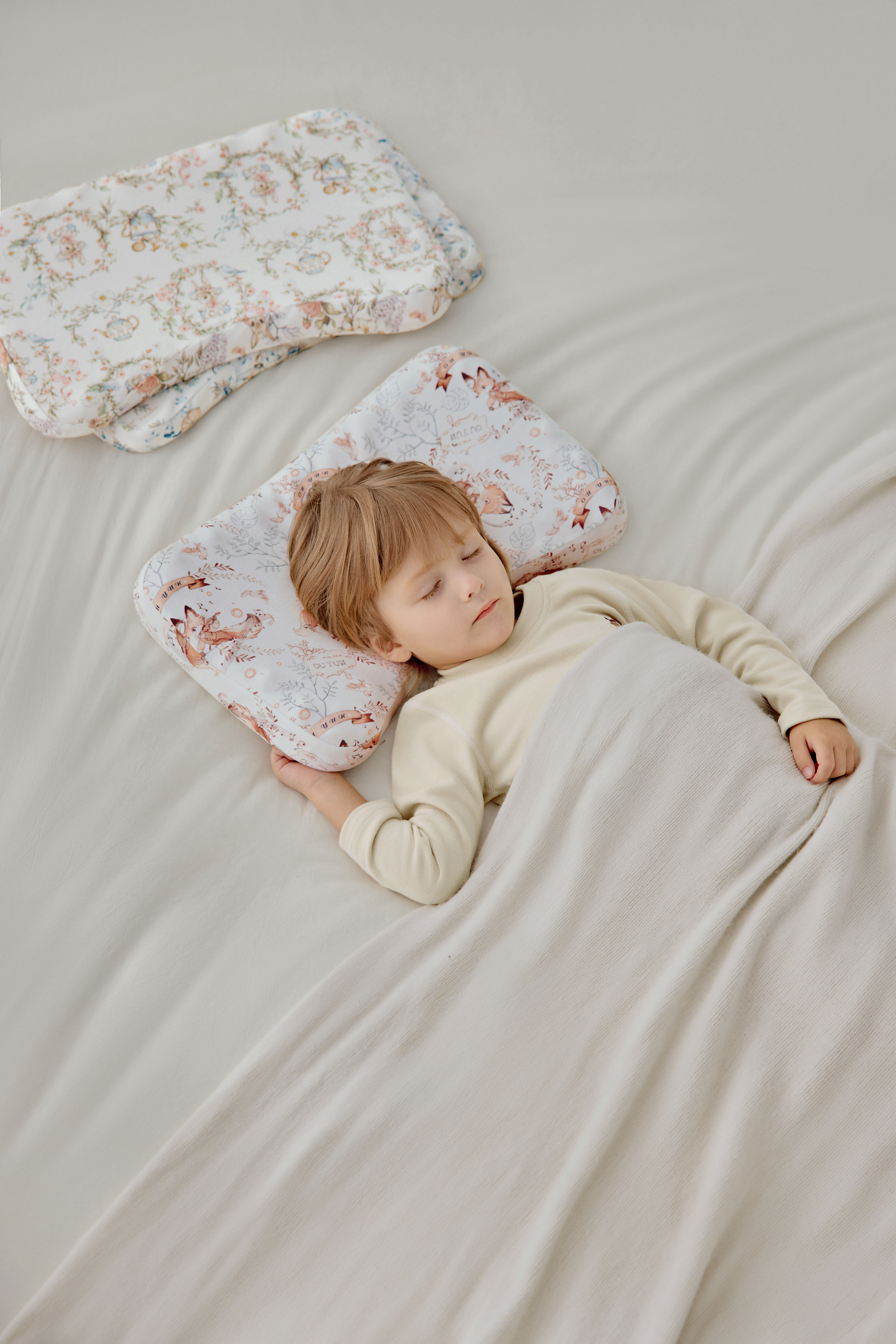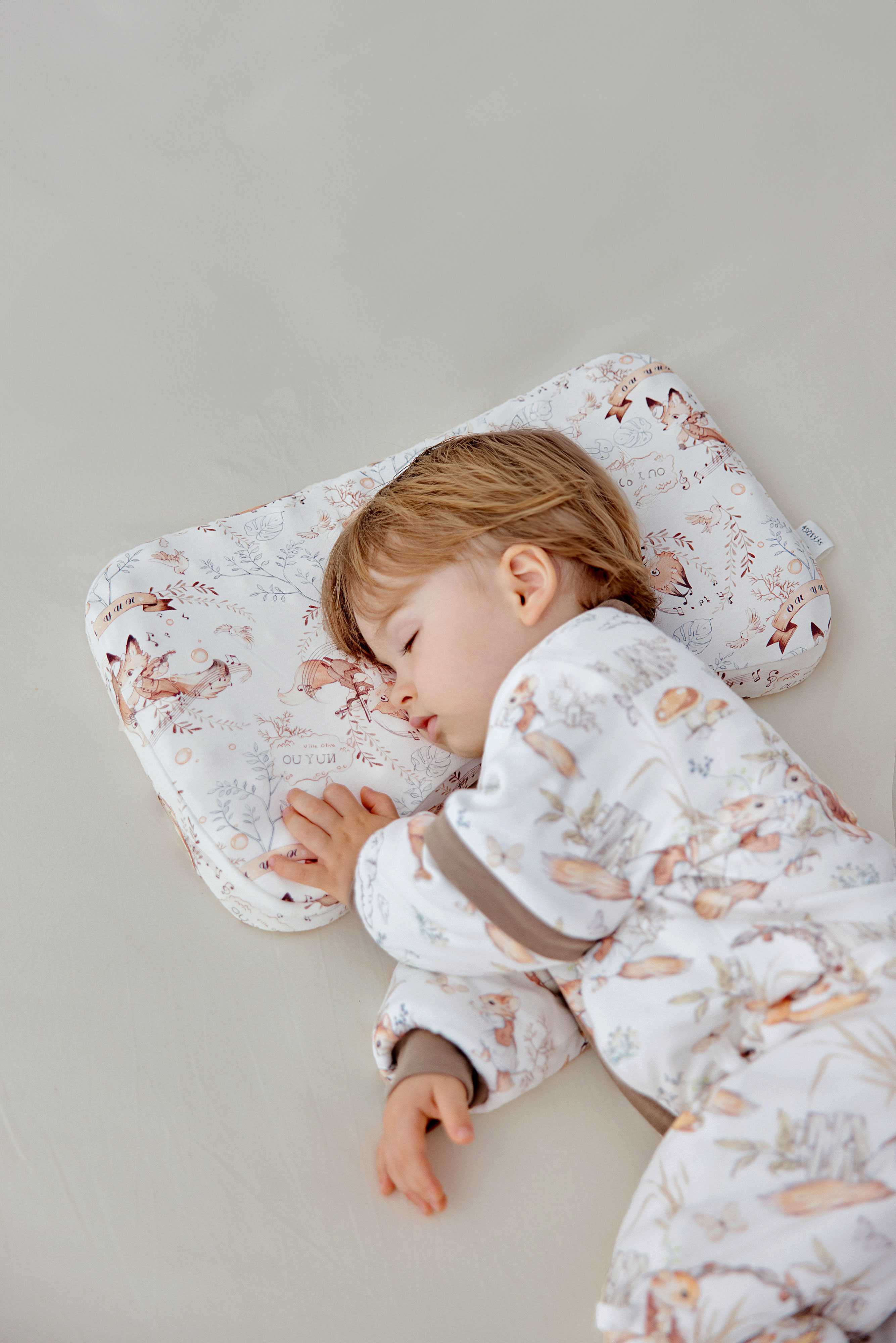 As for appearance design, the pillow incorporates the elements from fairy tales, utilizing personified animal characters like a fox playing the violin, a rabbit enjoying afternoon tea, and a polar bear riding a bicycle. Such a design effectively captivates infants and young children, and evokes strong emotional resonance. Moreover, patterns of natural plants, combined with low-saturation healing colors including blue, green, and pink, create a warm and tranquil sleeping atmosphere with a sense of security.