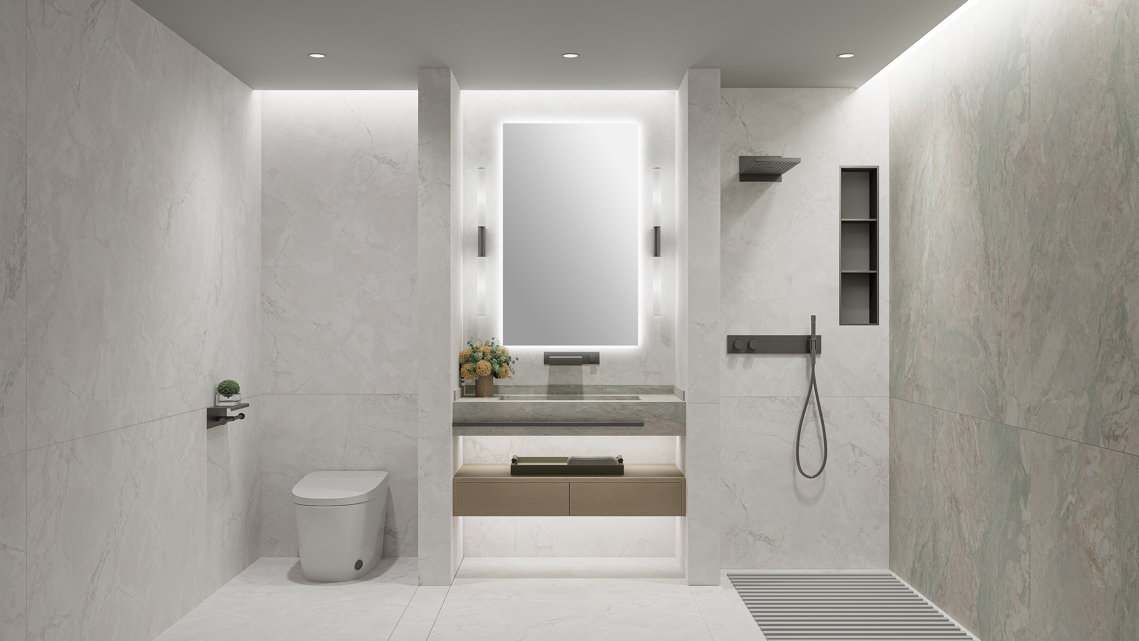 Concealed Water Fixture System: Adhering to the modern design principle of "less is more," all water fixtures, including faucets, showerheads, and floor drains, are concealed. This is not only for aesthetic appeal but to create an extremely clean and seamless visual interface, eliminating all unnecessary distractions. This allows the user's attention to focus entirely on the experience of water and the tranquil ambiance of the space, achieving complete visual relaxation.