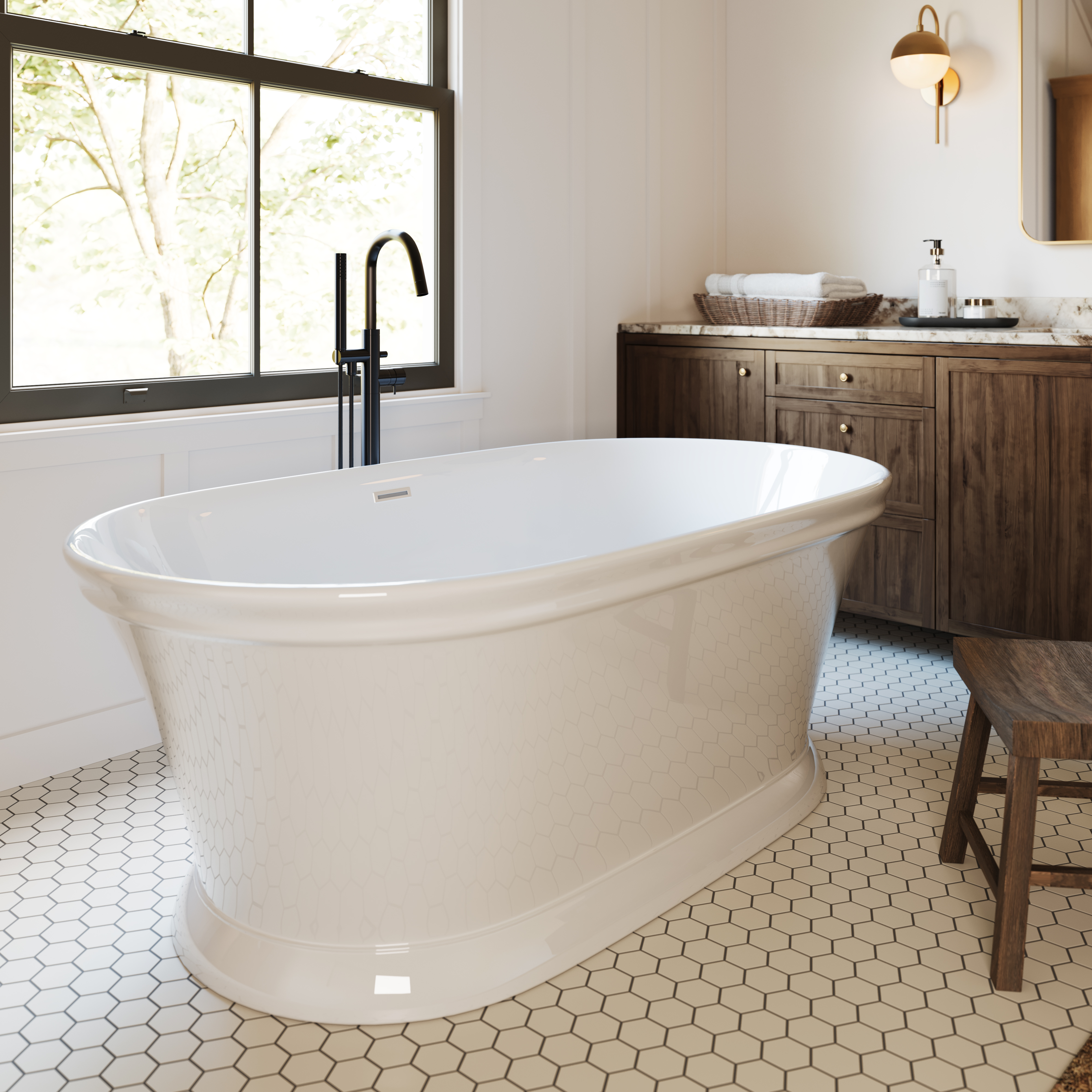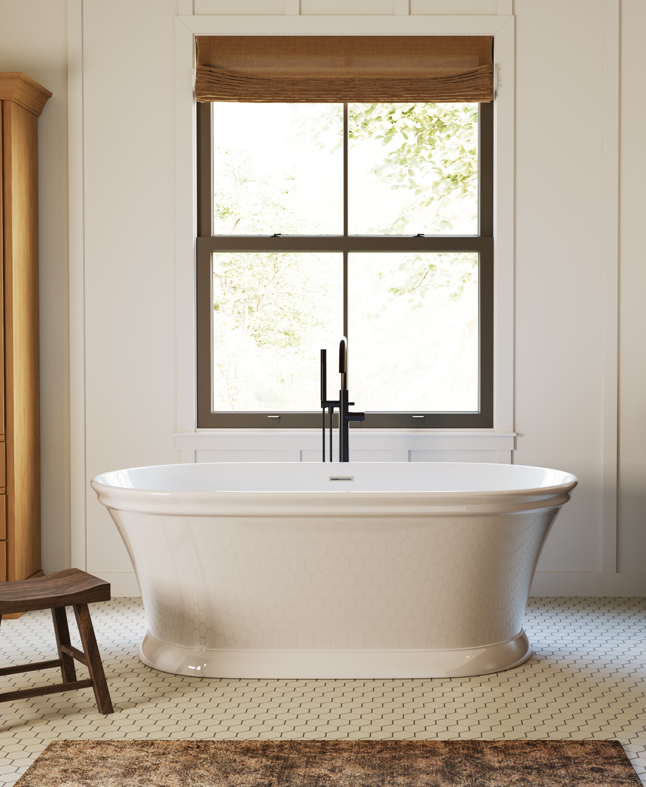 The Anson is a freestanding tub that reimagines classic American elegance through the lens of modern wellness. Inspired by the architectural grace of Charleston’s historic homes, its flared base and gently rolled rim bring a timeless silhouette to contemporary spaces. Featuring a contoured interior with integrated lumbar support, Anson delivers both visual refinement and ergonomic comfort. Measuring 66” x 35” x 24”, Anson is outfitted with a 32 degree back slope and integrated lumbar support for optimal comfort. Made from durable, luxurious HydroLuxe SS™ solid surface material and fully customizable, it supports advanced hydrotherapy with a focus on the newly introduced Cold Plunge, a revitalizing cold water therapy. Additional enhancements include Hydro Indulge which infuses water with millions of oxygen-rich microbubbles to cleanse and restore skin and Thermal Air a calming air massage system designed to promote deep relaxation.