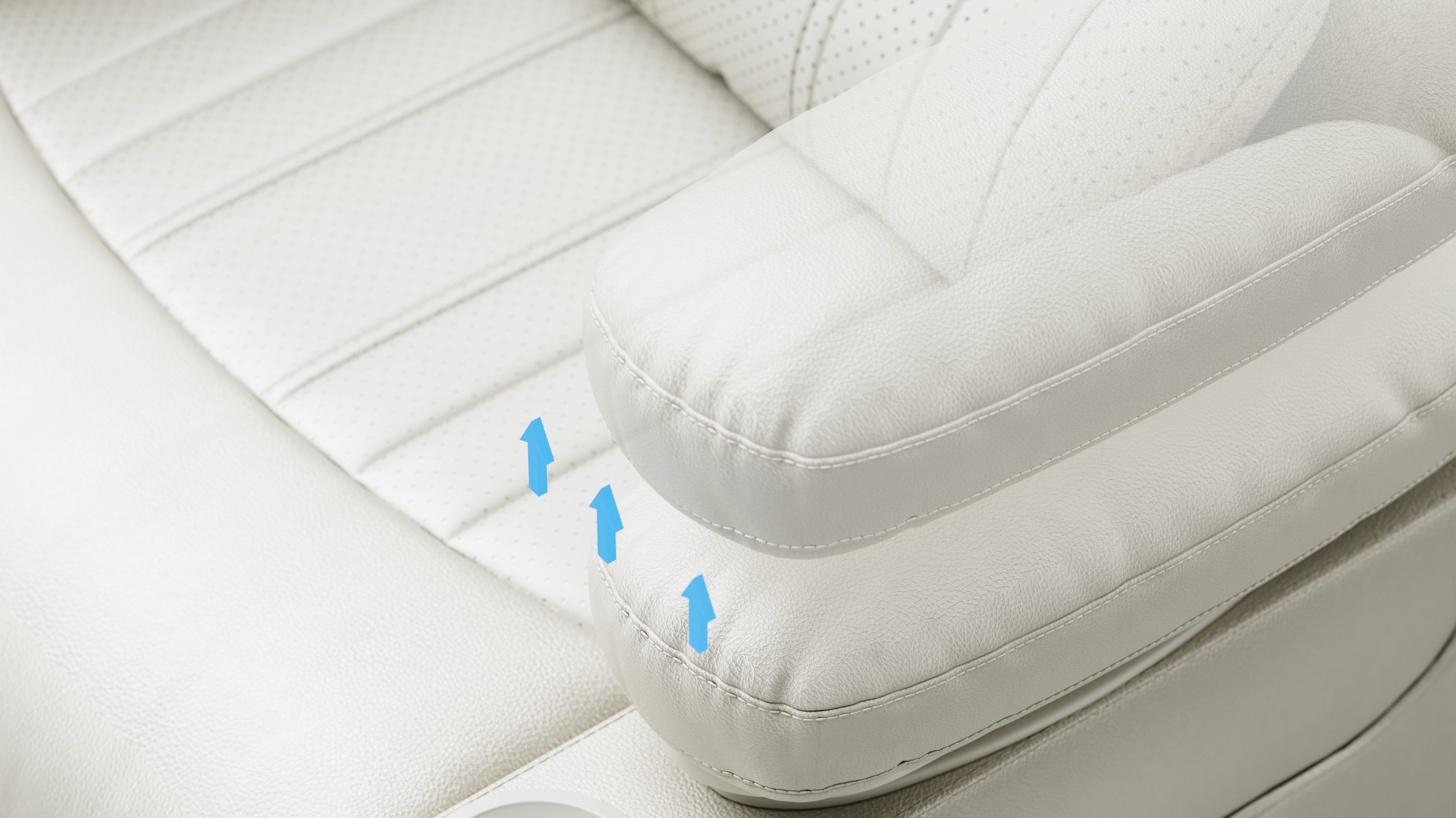 The exterior uses rounded, gentle forms paired with a warm white-grey palette that blends easily into diverse home styles. Seat fabric is skin-friendly, durable silicone leather with perforated ventilation in key contact zones; the whole chair is waterproof, stain-resistant and easy to clean—fully meeting the high-frequency demands of daily mother-and-baby use.