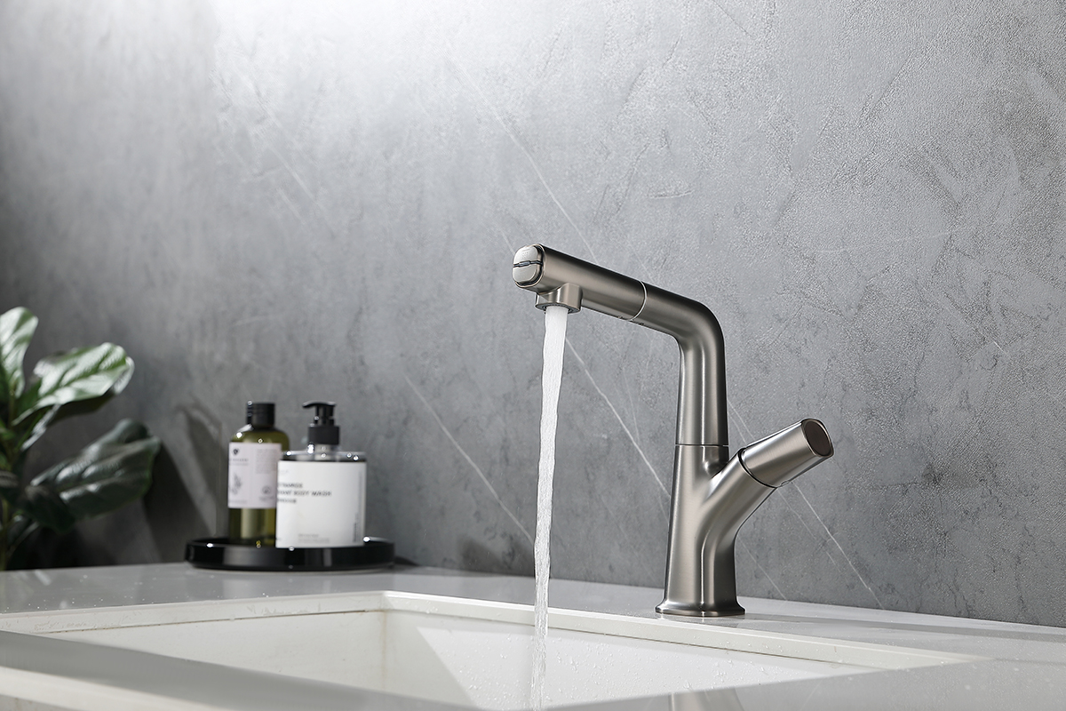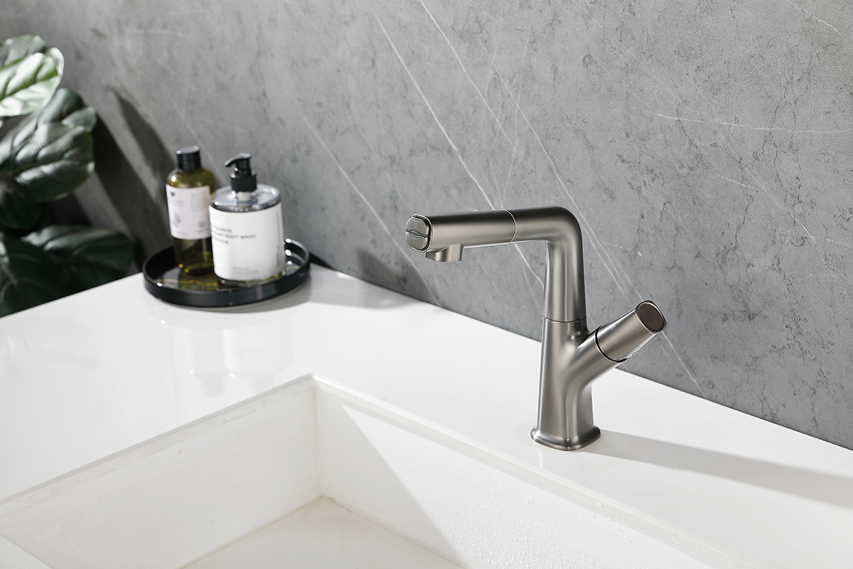 Embracing a modern minimalist philosophy, the faucet features a distinctive gunmetal grey finish. This not only provides a stylish, high-end appearance but also resists fingerprints effectively, maintaining a clean and lustrous look over time. Its flowing lines and balanced proportions allow it to blend seamlessly into diverse home and commercial environments. Constructed from high-quality, recyclable 304 stainless steel, the product underscores a firm commitment to sustainability.