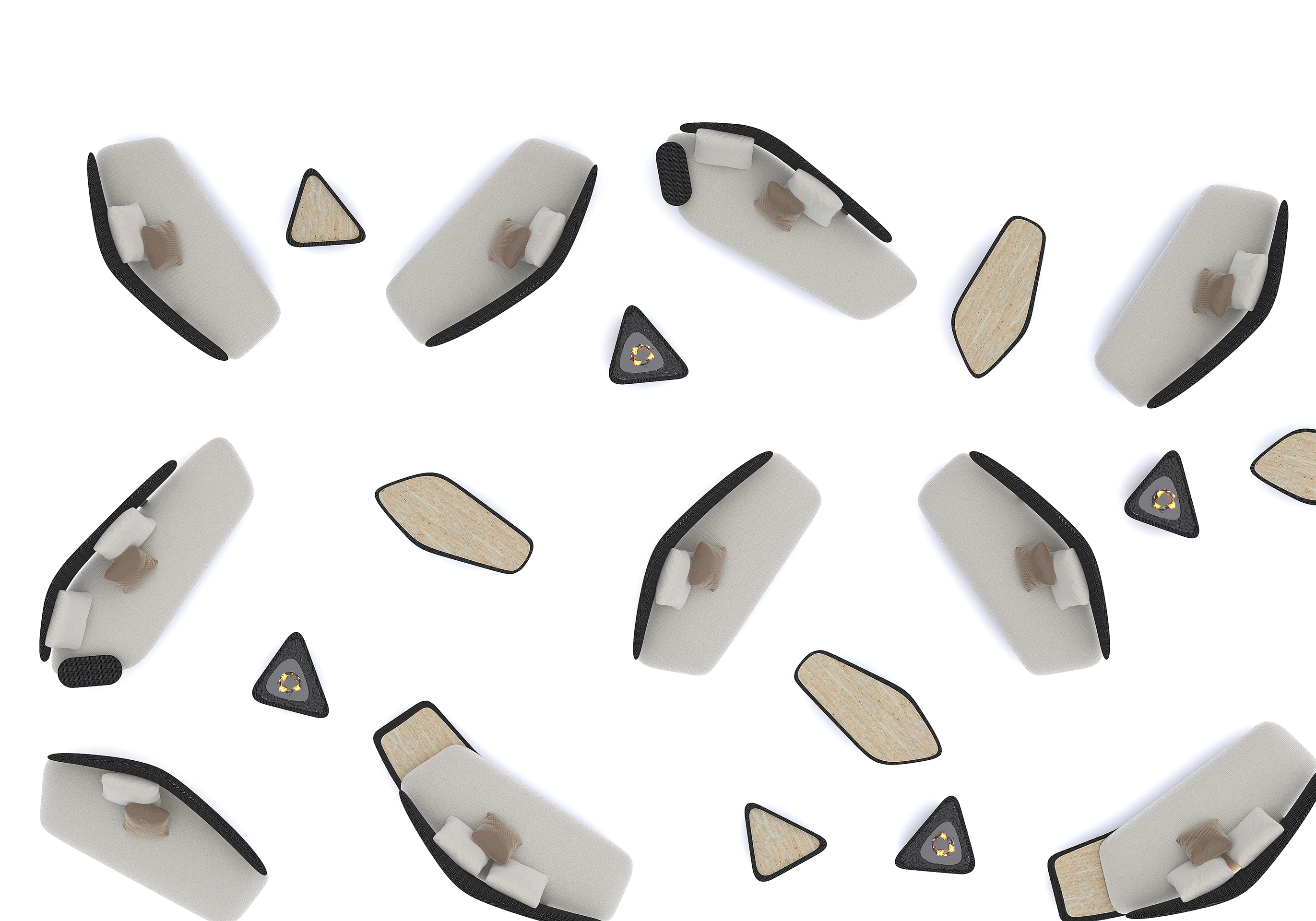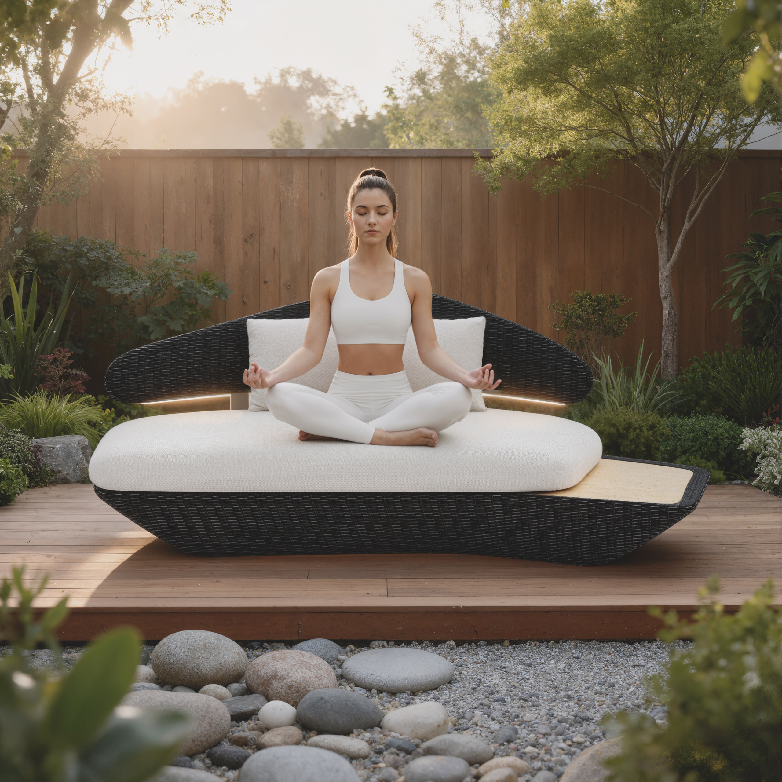 It draws inspiration from pebbles in a stream. With its organic, rounded irregular modules, it breaks free from the rigid straight lines of traditional outdoor furniture, bringing a sense of relaxation and calm to the senses. These irregular modules offer infinite spatial possibilities. They support free combinations into various layouts—including L-shaped, U-shaped, and circular—and easily adapt to diverse scenarios such as solitary meditation, communal lounge, and yoga practice. Rivora pioneers the innovative breathing-sensing light strip, further elevating the furniture into an interactive medium that guides physical and mental balance. The light changes gently in time with the music rhythm, guiding breathing through visualized rhythm and helping users enter a state of deep relaxation and meditation.