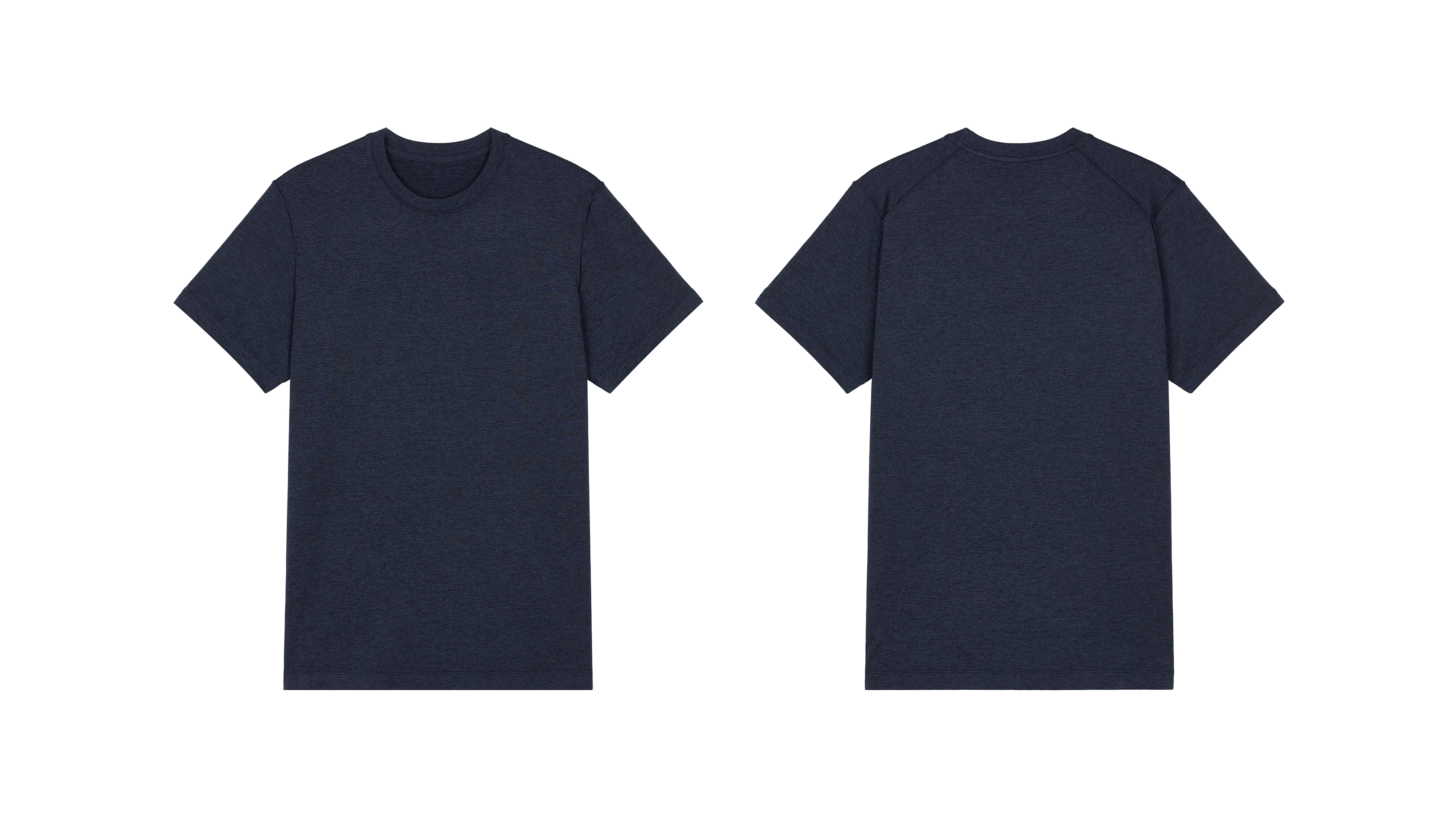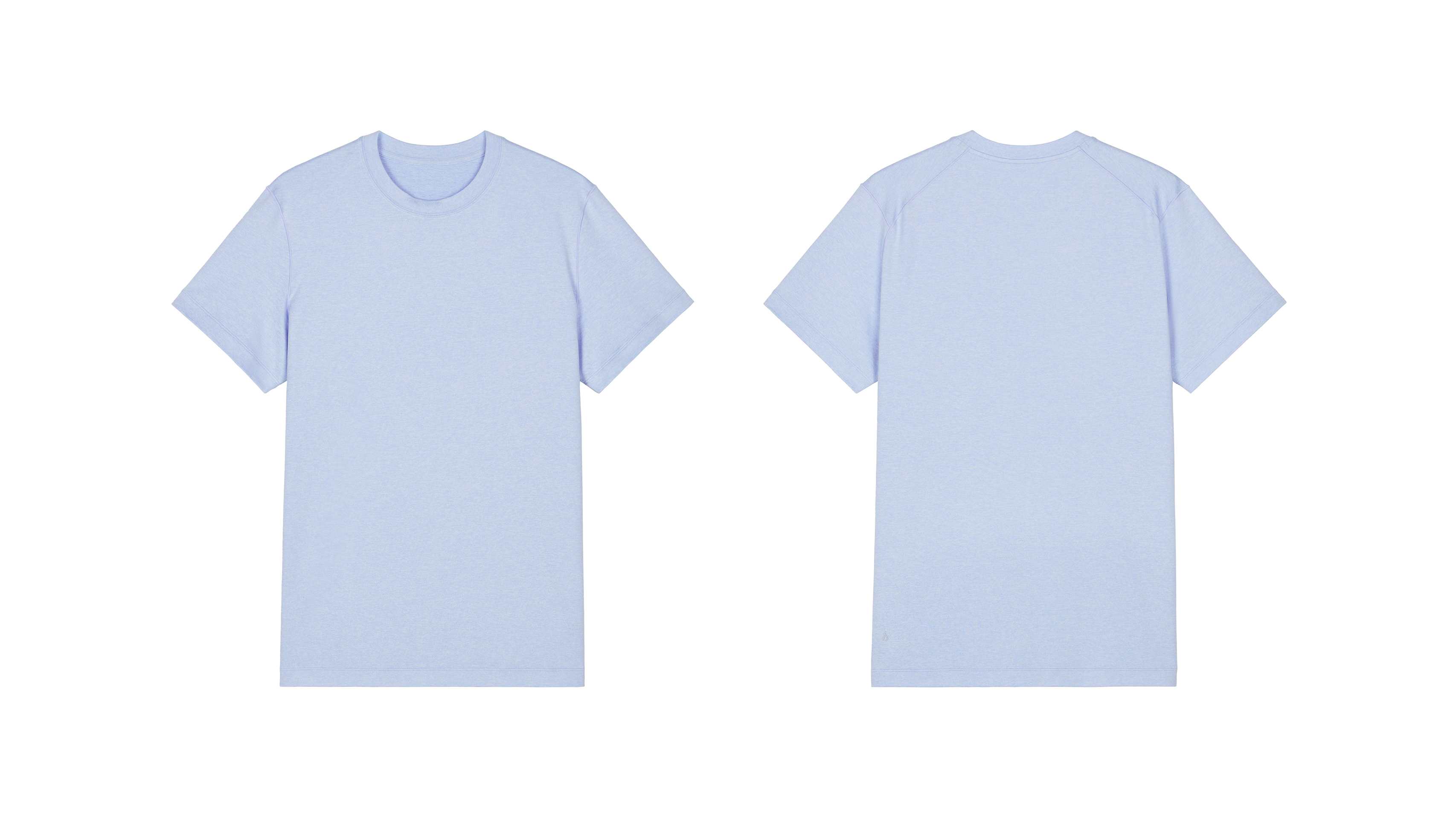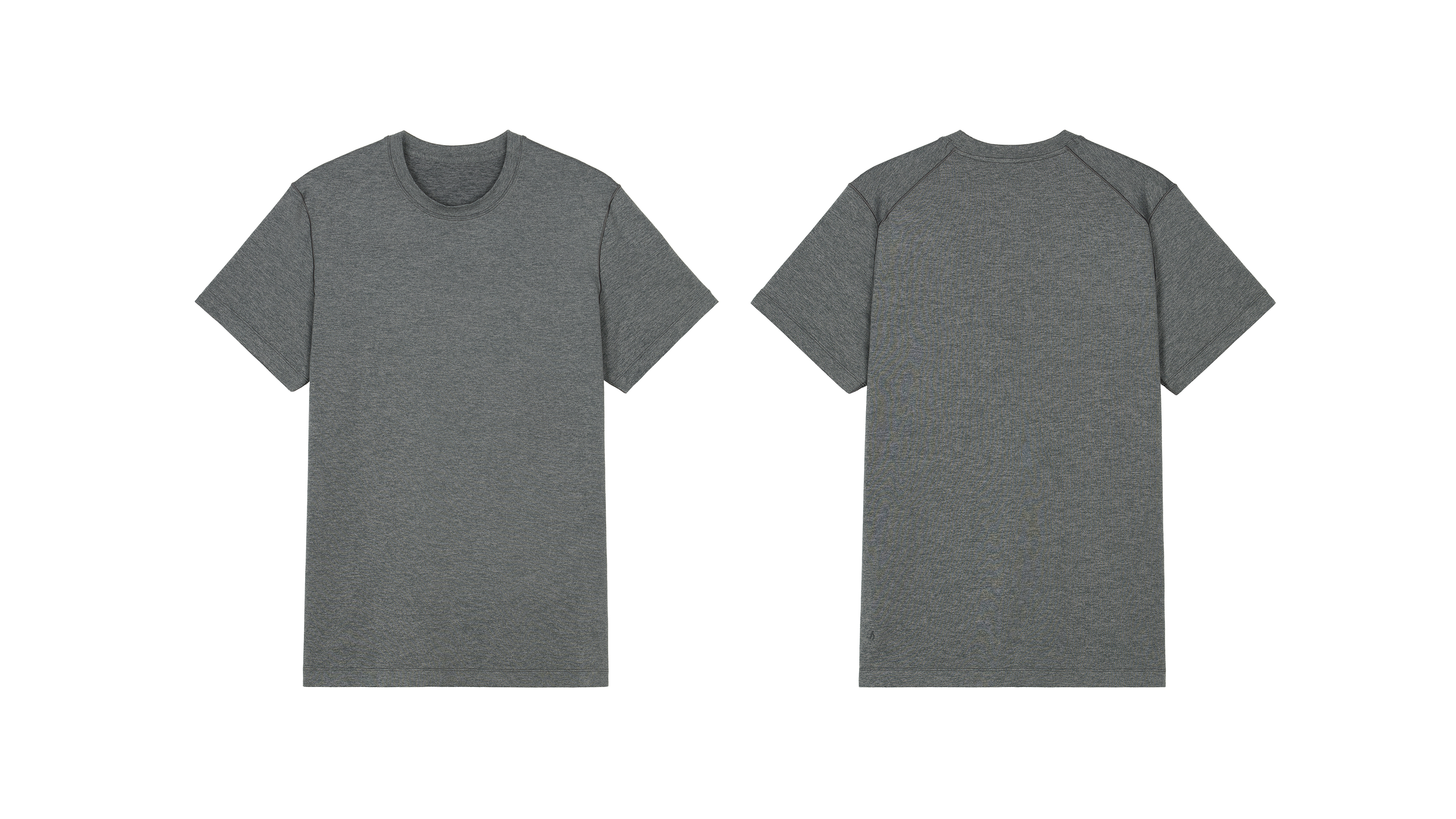 The fabric is made with tone-on-tone melange yarns, creating a soft gradient texture and matte finish. It introduces visual depth within a minimalist aesthetic. Though constructed with a single-knit structure, the fabric appears fuller and more dimensional thanks to the yarn-dyed process and subtle surface treatment. This delivers the comforting density of a double-knit, while maintaining the lightweight flexibility unique to single jerseys.
